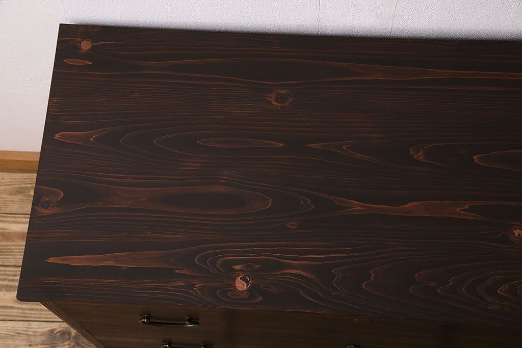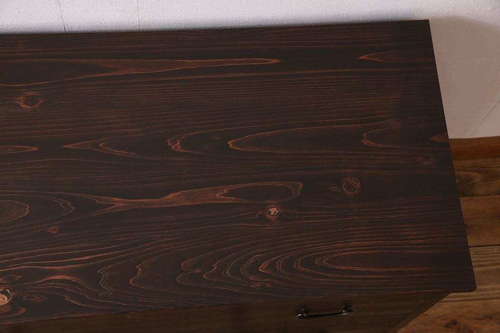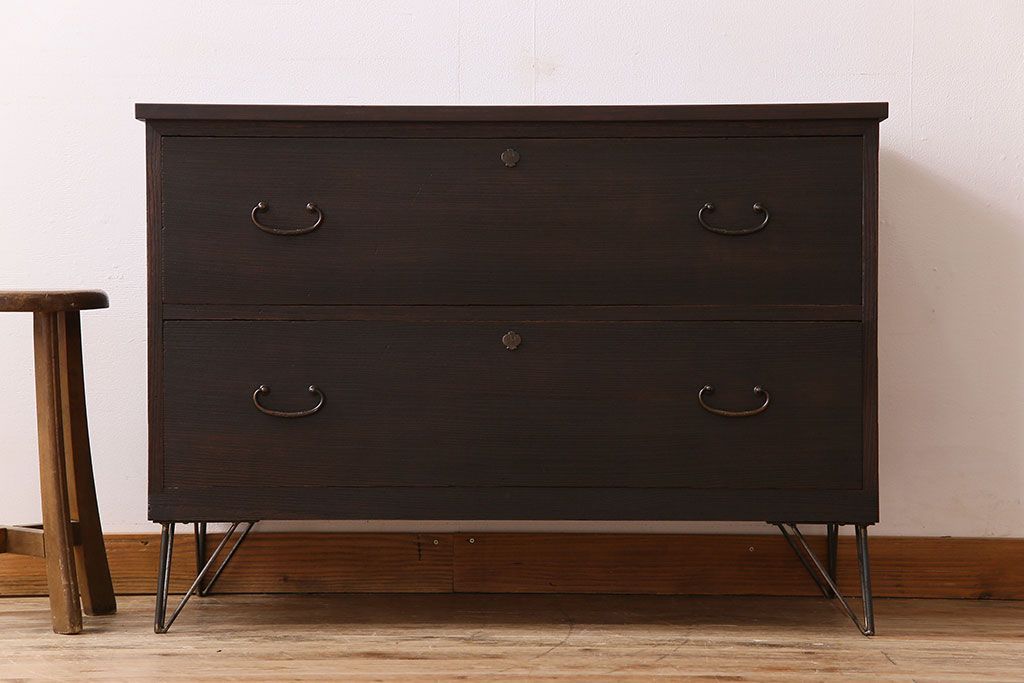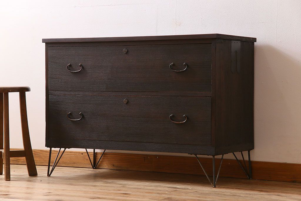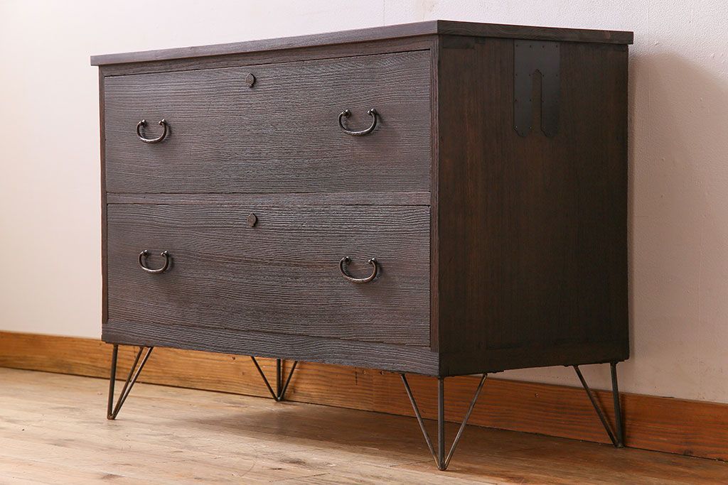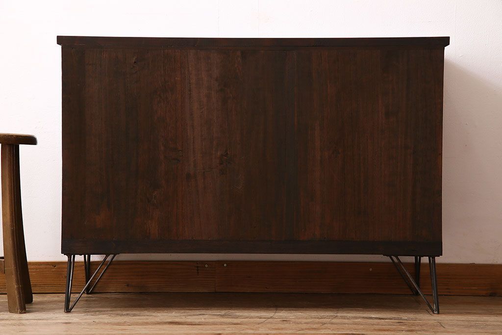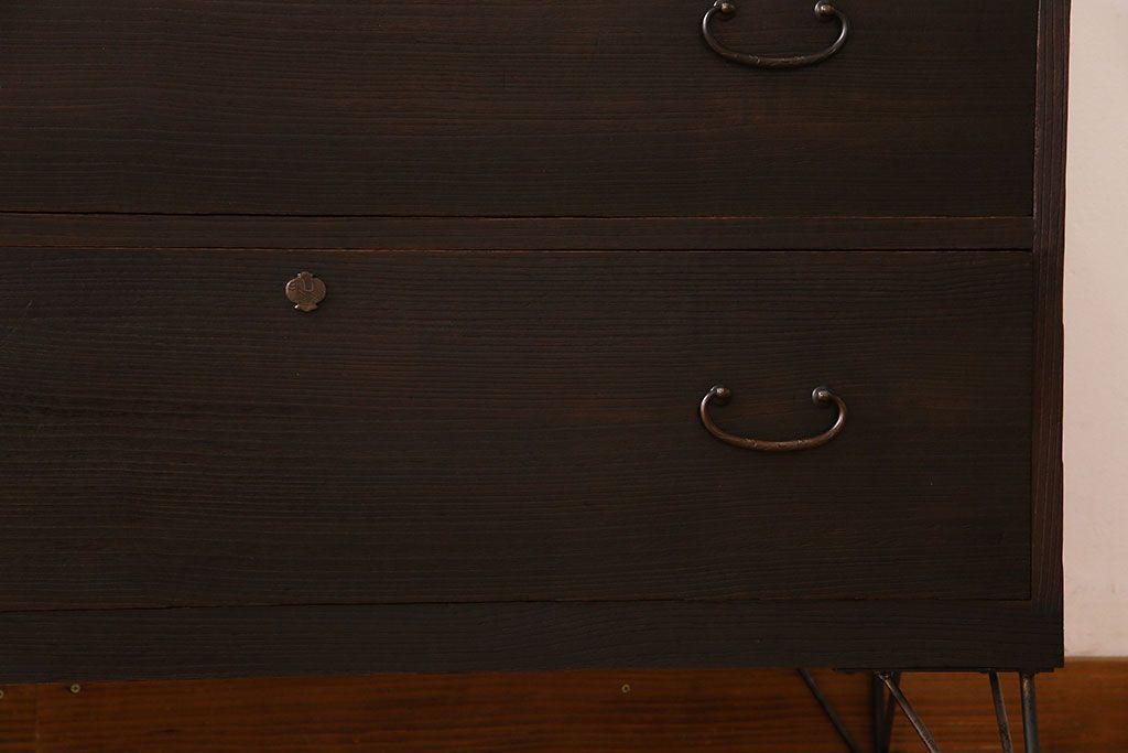 アンティーク家具 檜天板!鉄脚付 シックな味わいのアンティーク箪笥ローボード