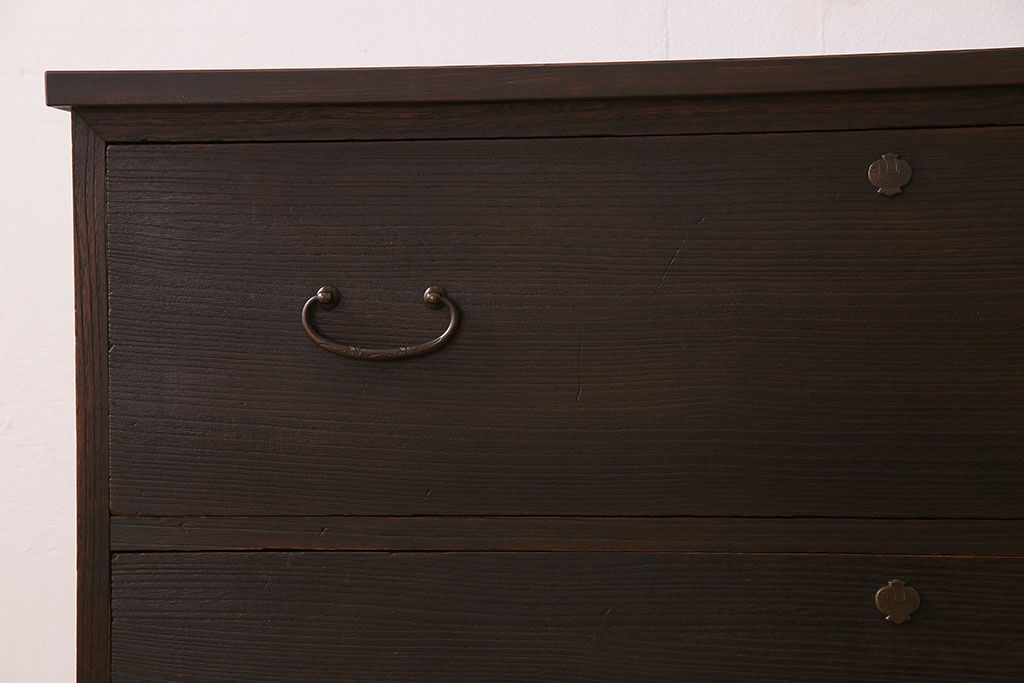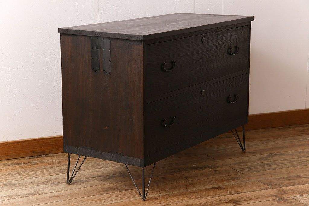 ラフジュ工房> 和箪笥 > アンティーク家具 檜天板!鉄脚付 シックな味わいのアンティーク箪笥ローボード
