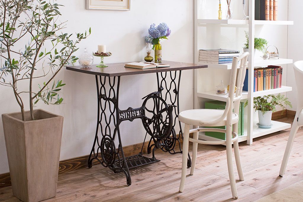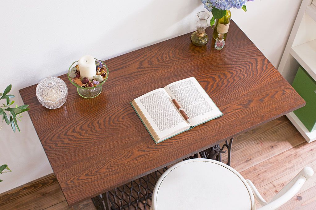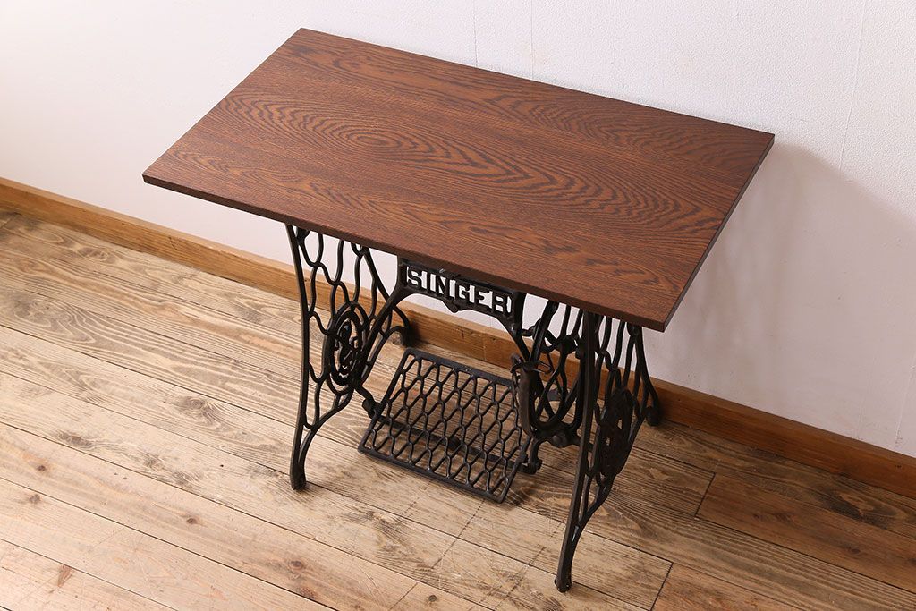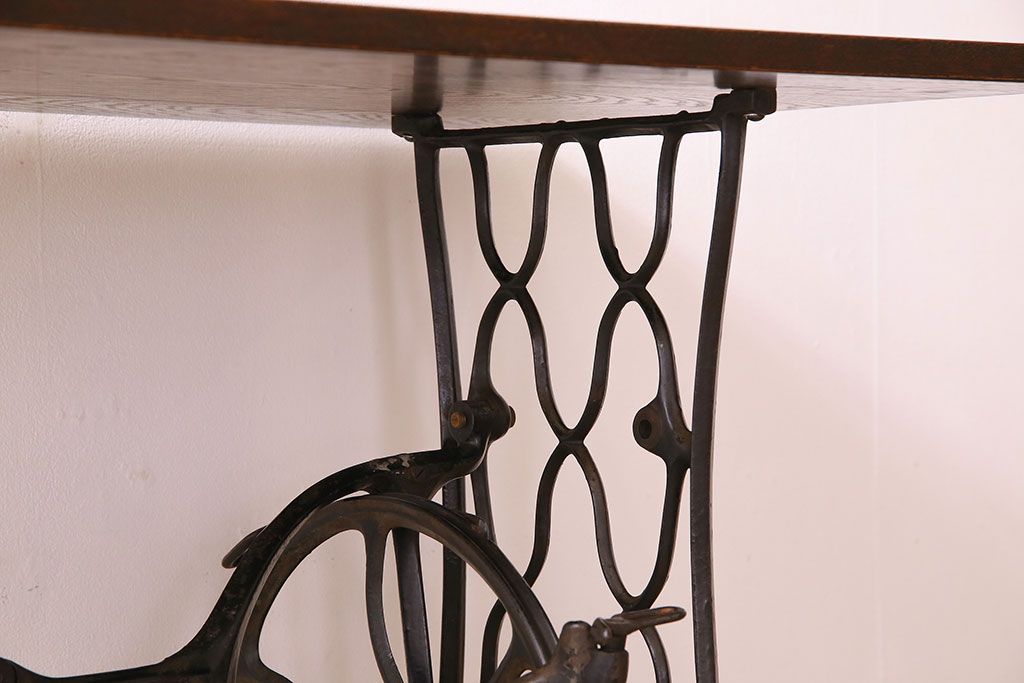 ラフジュ工房> デスク> ワークデスク > アンティーク家具 シンガー社製鉄脚のアンティークミシンテーブル(シンガーミシン、ミシン台)