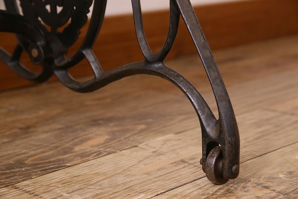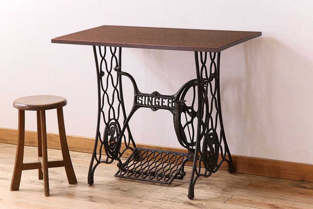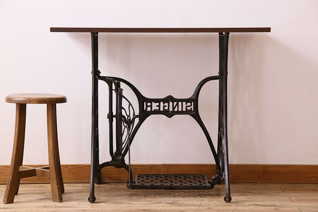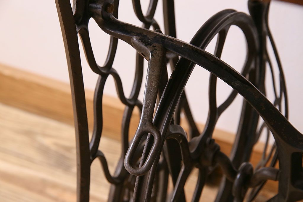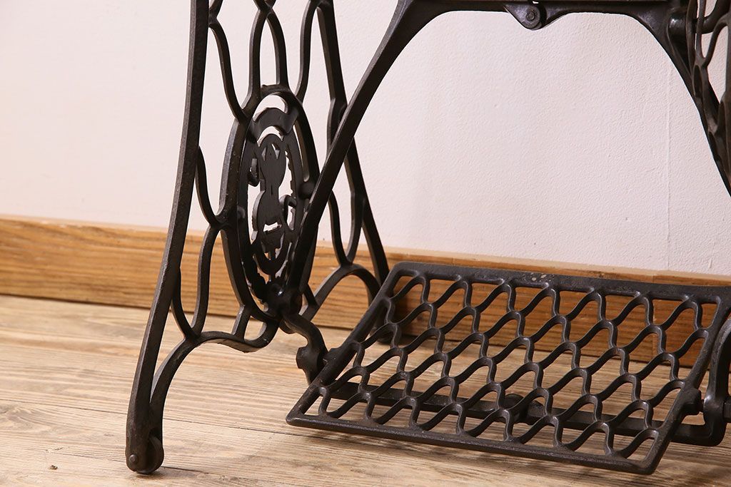 ラフジュ工房> テーブル> ミシンテーブル > アンティーク家具 シンガー社製鉄脚のアンティークミシンテーブル(シンガーミシン、ミシン台)