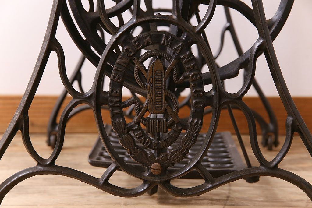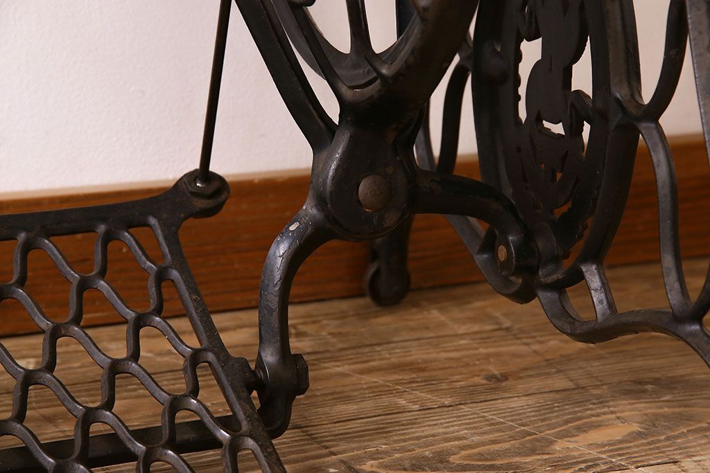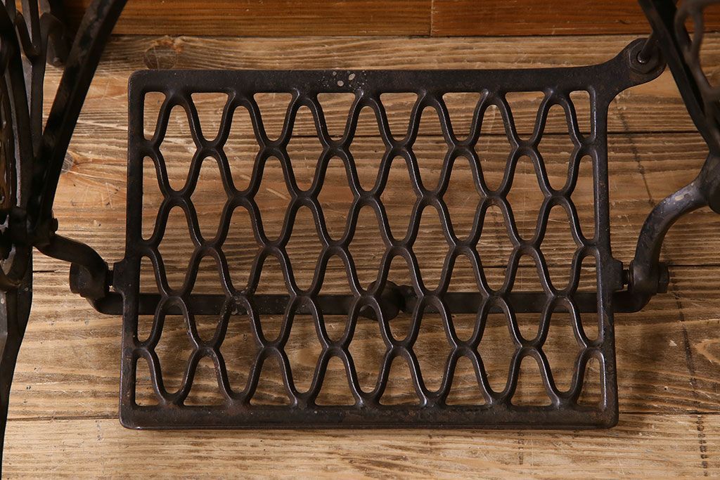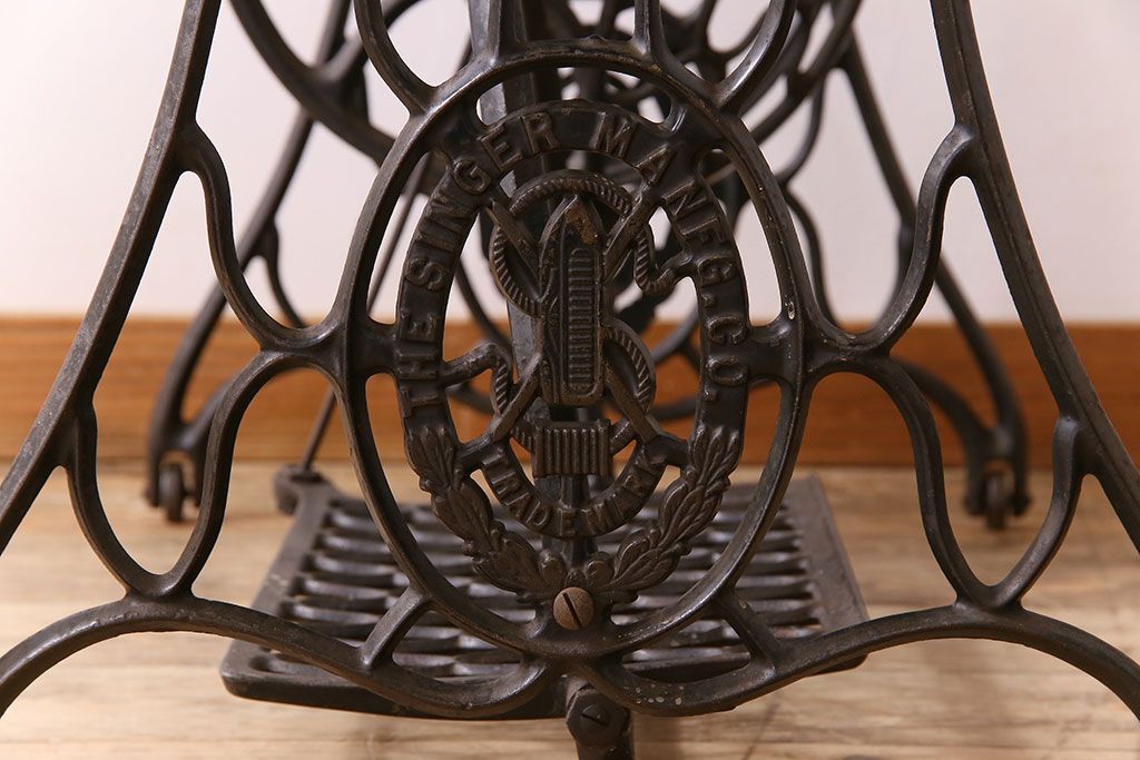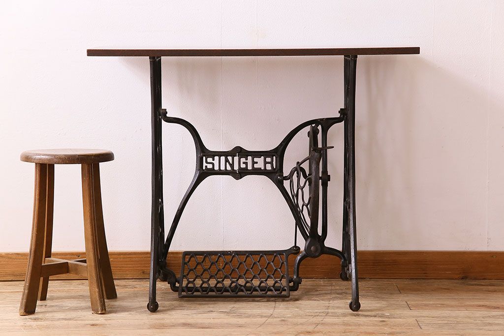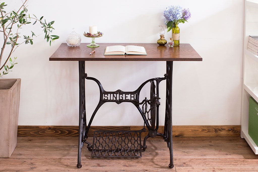 ラフジュ工房> テーブル> ミシンテーブル > アンティーク家具 シンガー社製鉄脚のアンティークミシンテーブル(シンガーミシン、ミシン台)