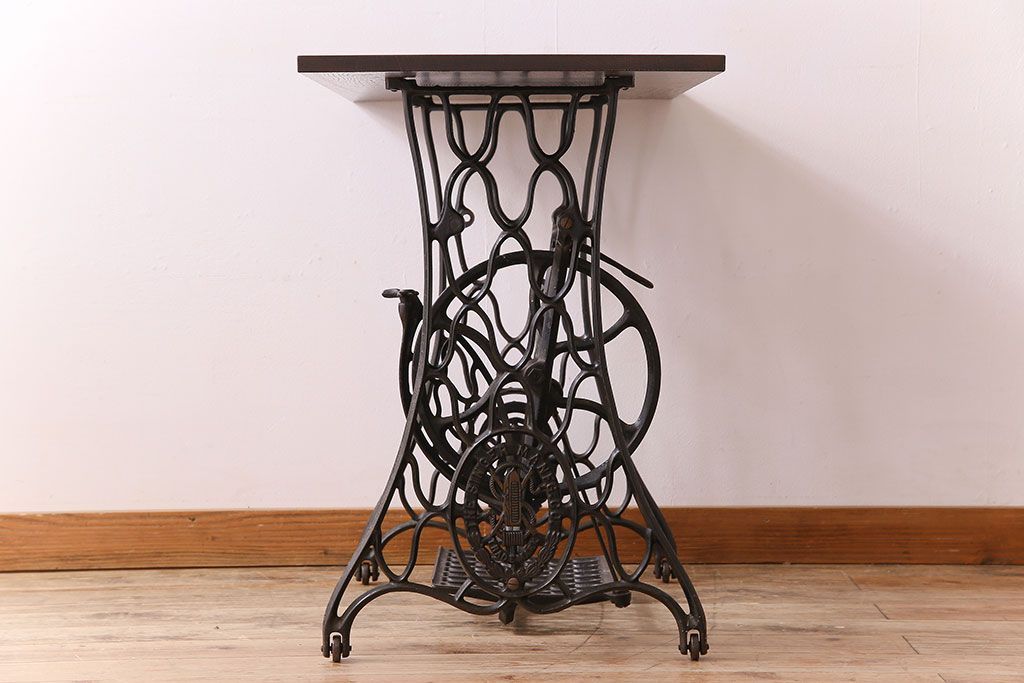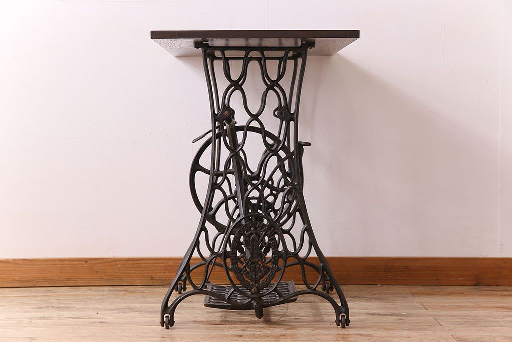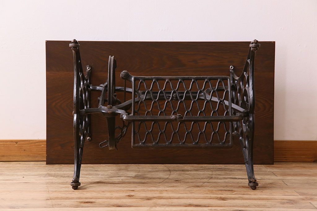 ラフジュ工房> テーブル> カフェテーブル・コーヒーテーブル > アンティーク家具 シンガー社製鉄脚のアンティークミシンテーブル(シンガーミシン、ミシン台)