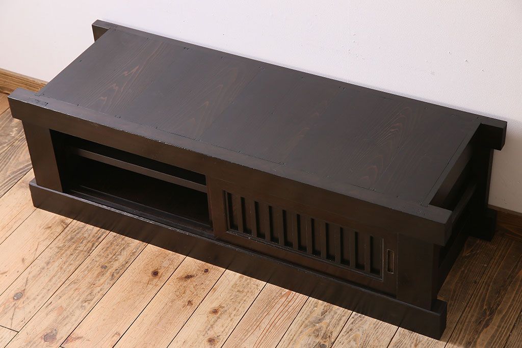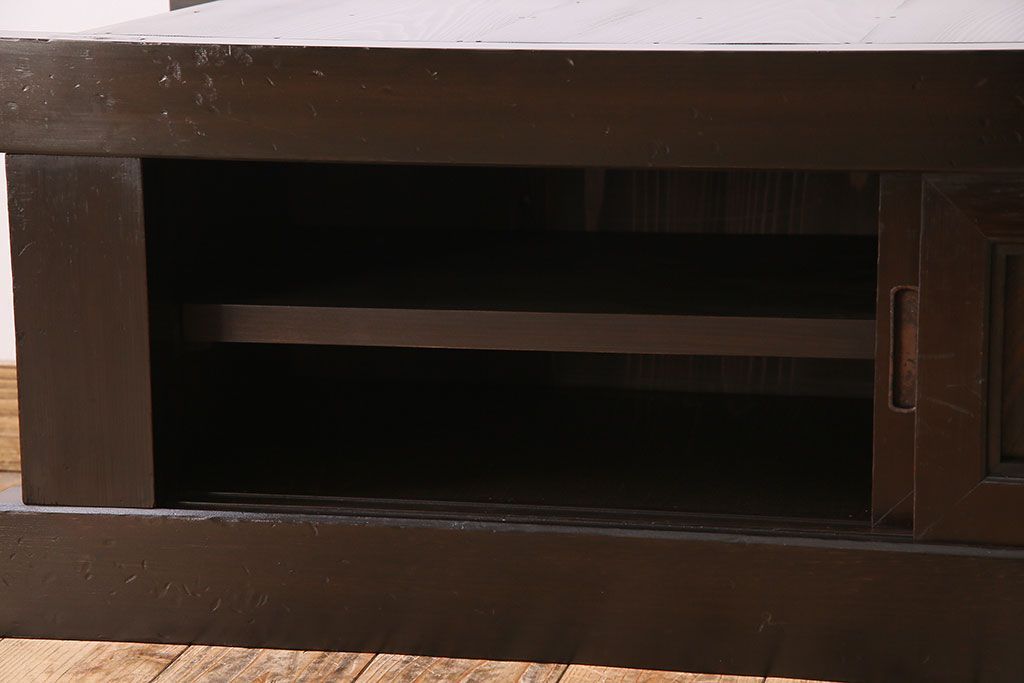 ラフジュ工房> キャビネット・戸棚> テレビ台・ローボード > アンティーク家具 明治大正期 四尺 古民具・骨董 水屋箪笥ローボード(テレビ台、キャビネット、収納棚)