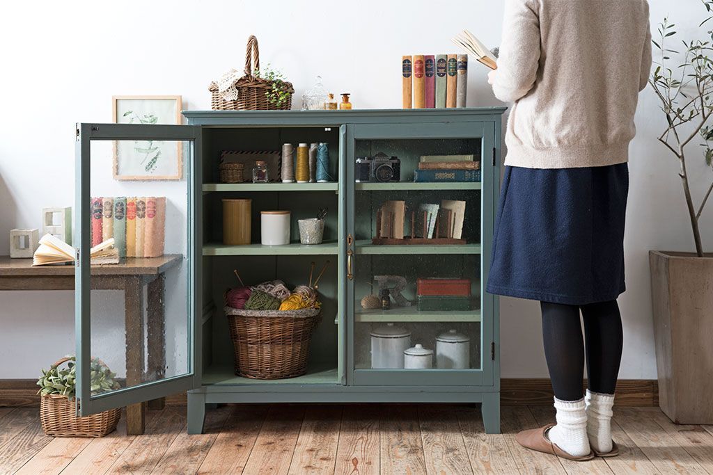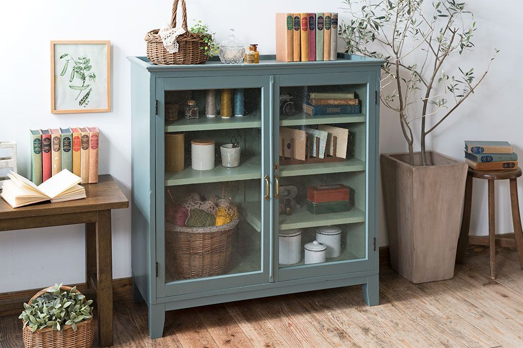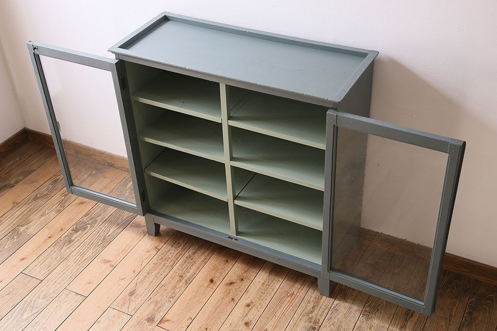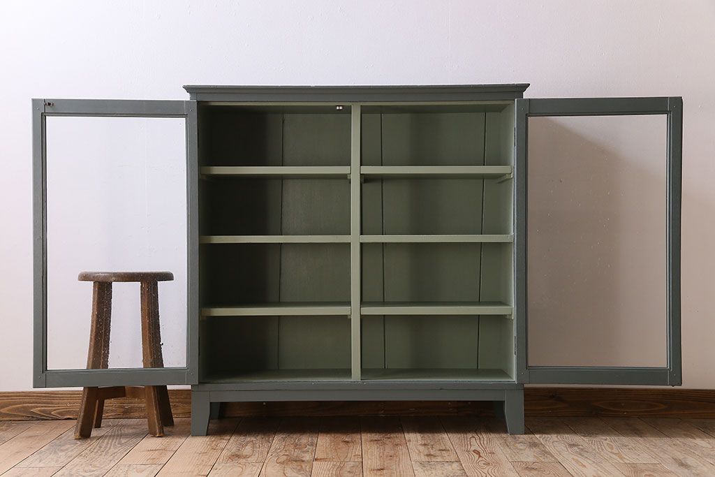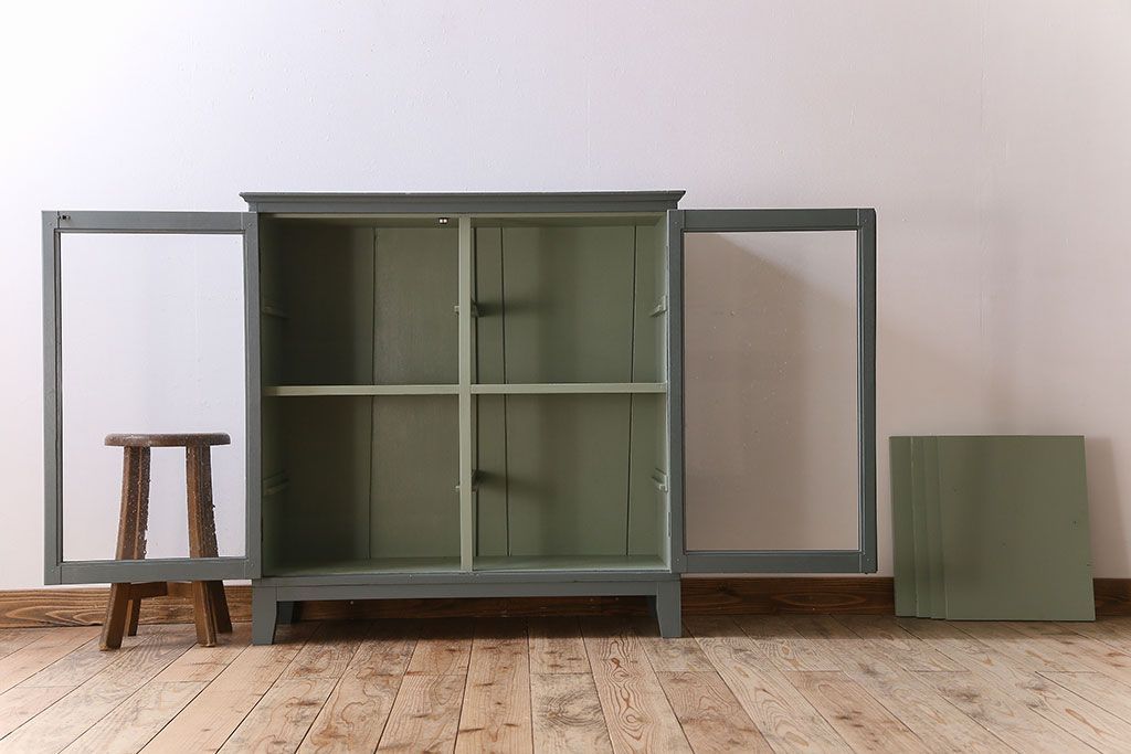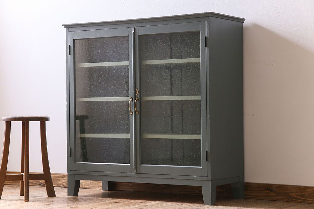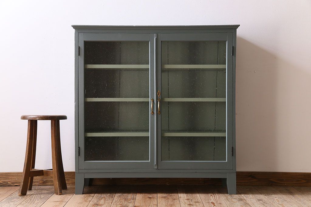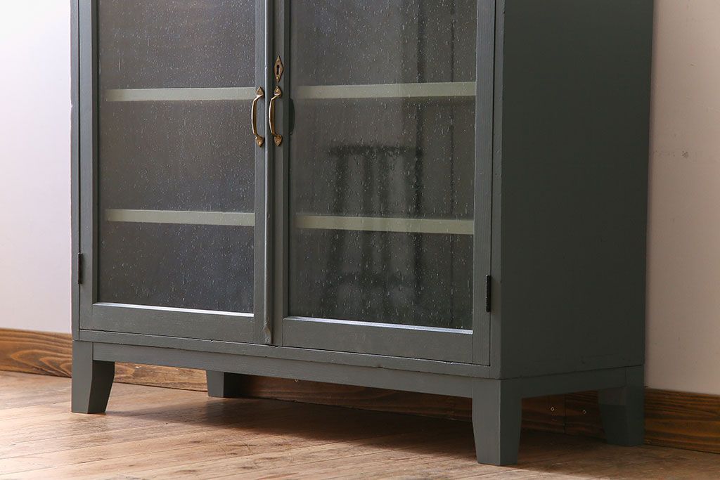 アンティーク家具 ペイント アンティーク 脚付き!古い収納棚(キャビネット)