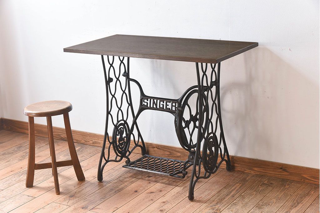 レトロ家具 アンティーク レトロなシンガー社製ミシンテーブル(シンガーミシン、ミシン台)(2)