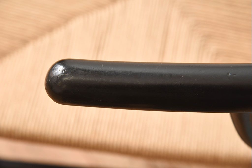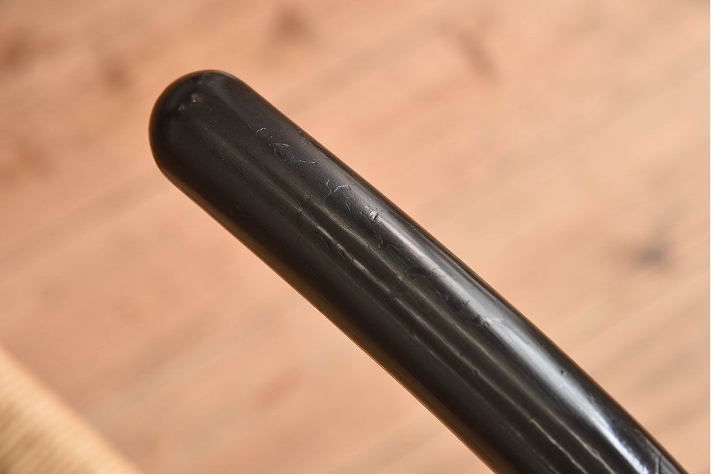 7、8枚目の画像にありますように背もたれの先端部分に補修跡が見られますが使用上、強度上に問題はありません。座面は新しく張替えています。