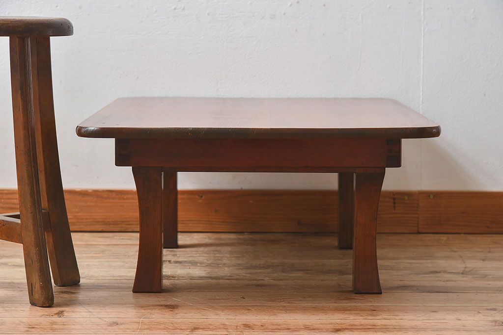 ラフジュ工房> テーブル> センターテーブル・ローテーブル > レトロ家具 和製アンティーク 檜材!レトロな雰囲気漂う角ちゃぶ台