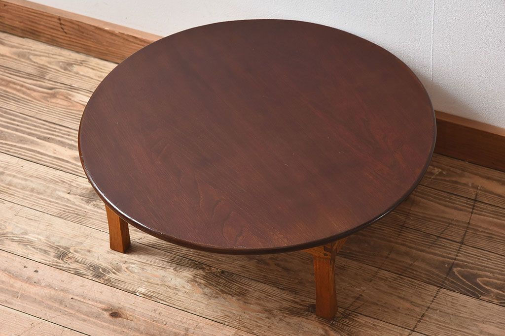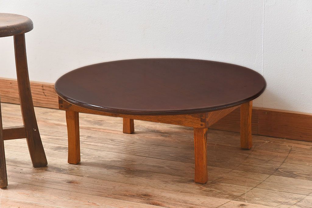 レトロ家具 和製アンティーク レトロなデザインの栓材製丸ちゃぶ台