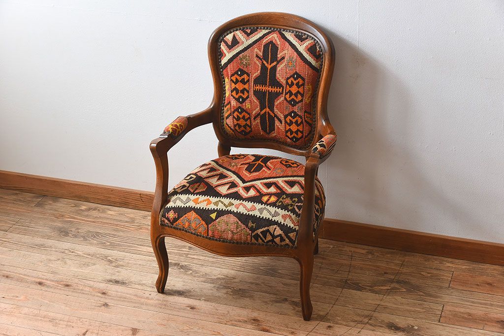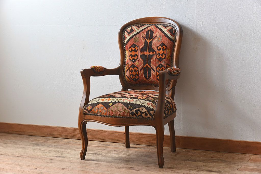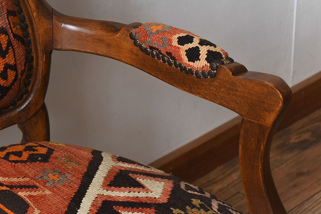 中古 キリム座面のサロンチェア(アームチェア)(定価約13万円)