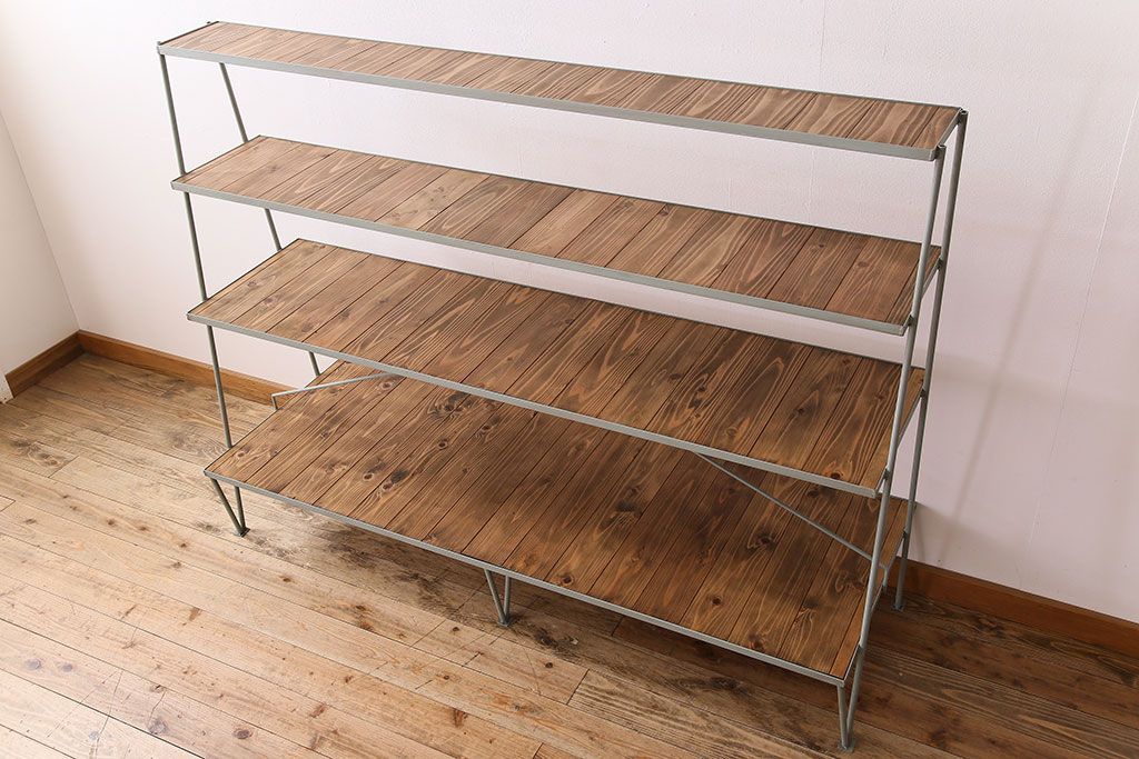 ラフジュ工房オリジナル おしゃれなアイアンフレームのディスプレイラック(陳列棚・飾り棚)です。