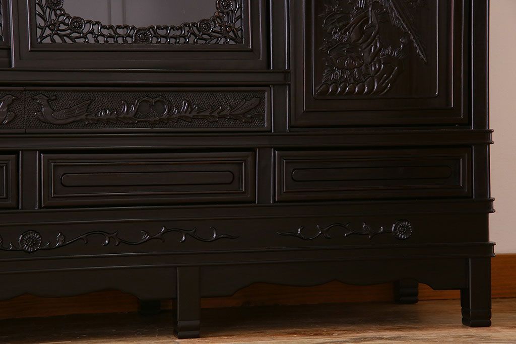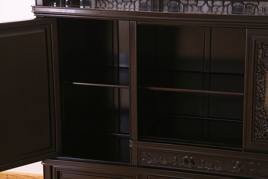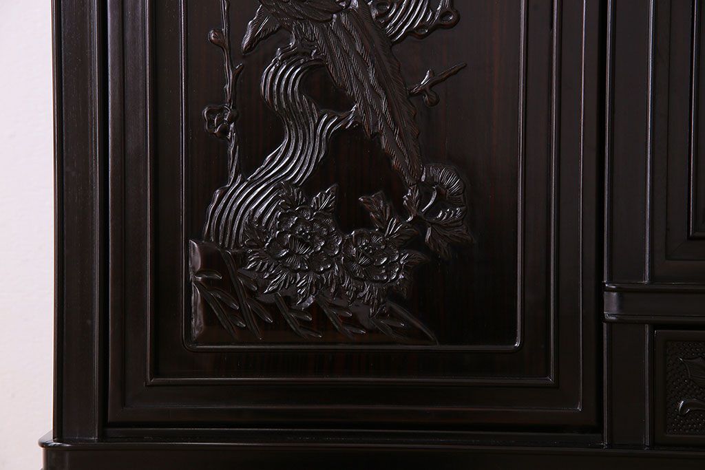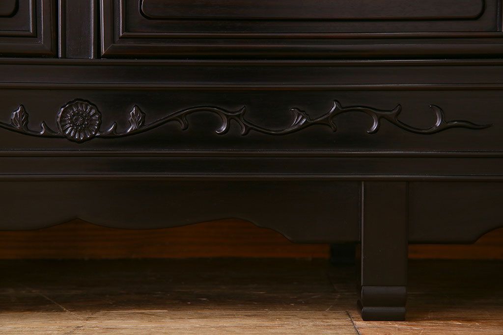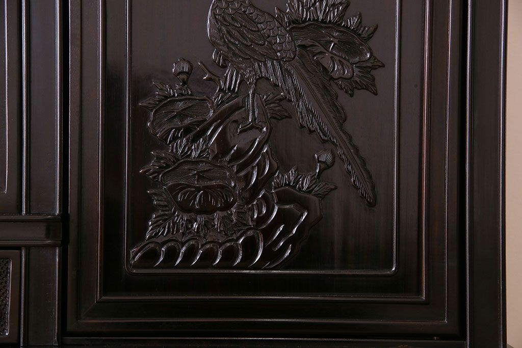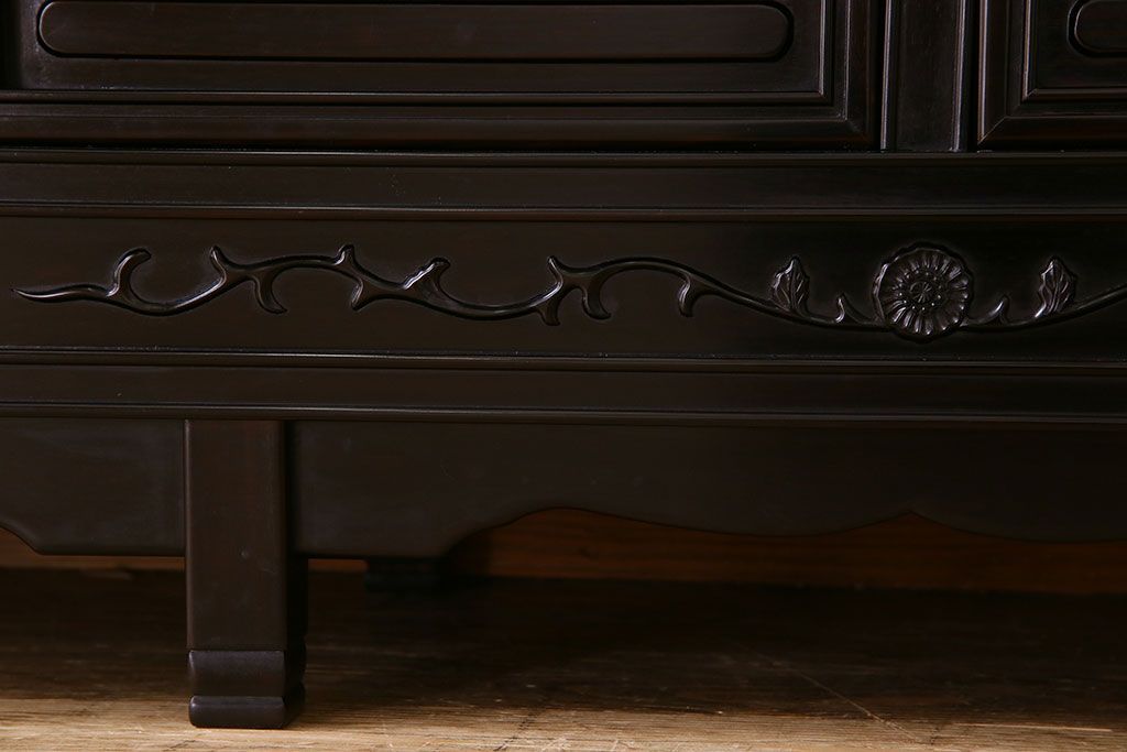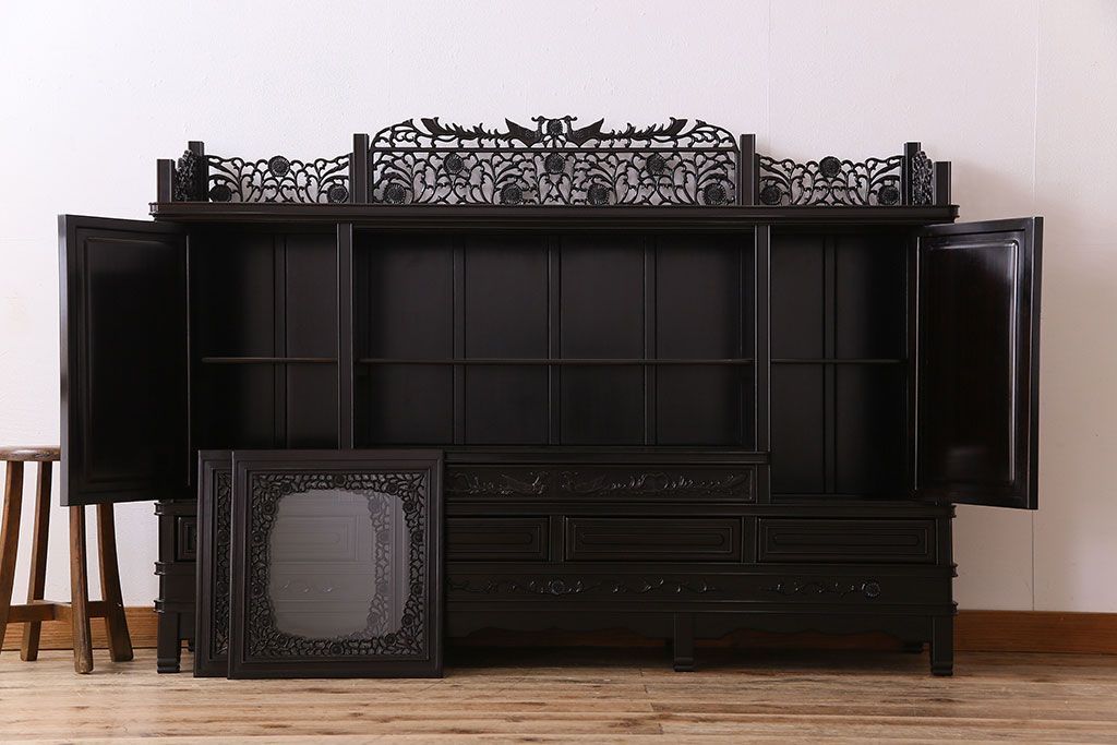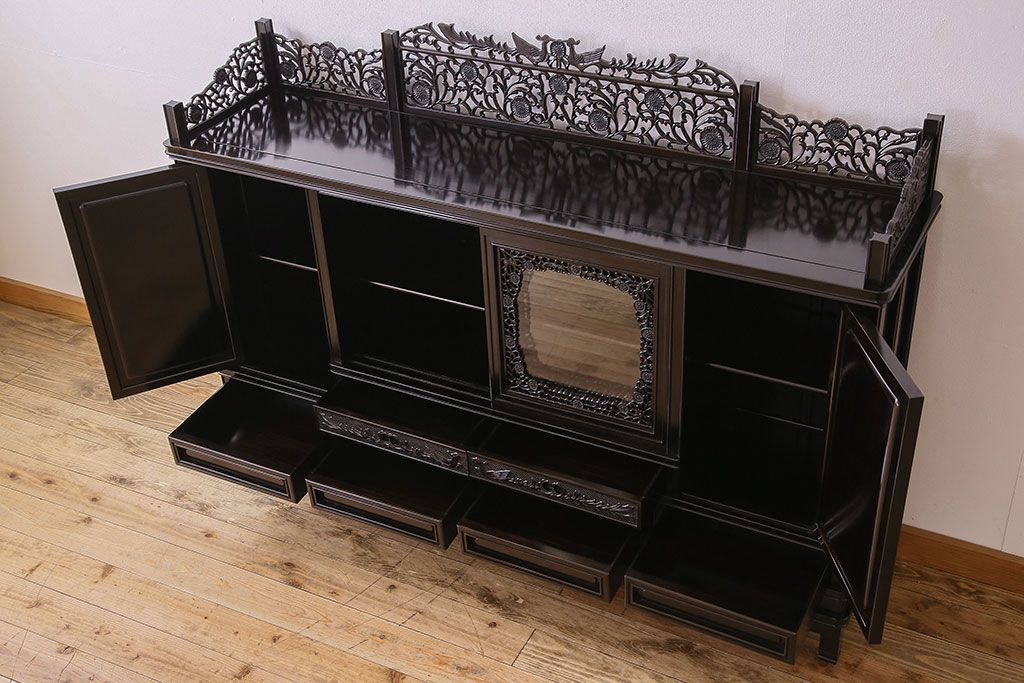 店舗什器 > 中古 民芸家具 黒檀材(唐木)製 高級品!彫刻が素晴らしいサイドボード(キャビネット、飾り棚)(定価約220万円)