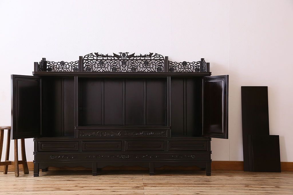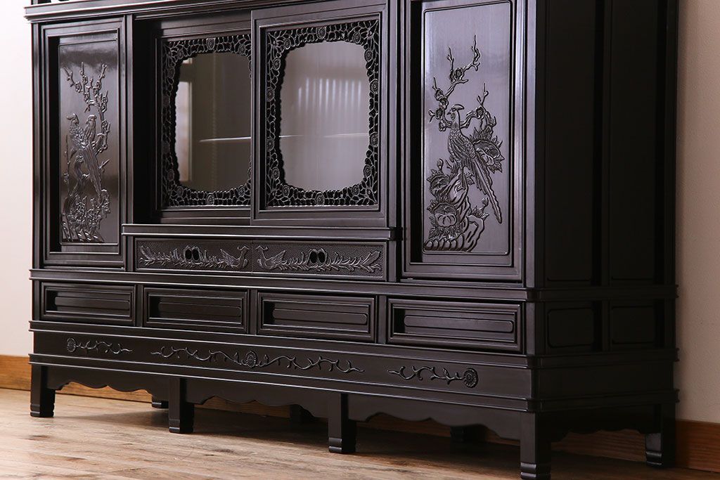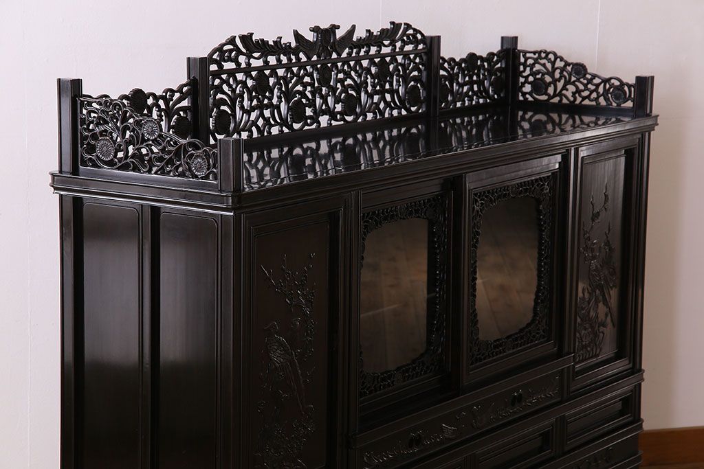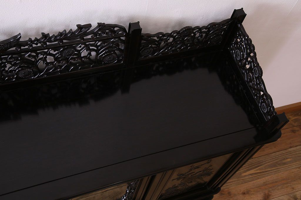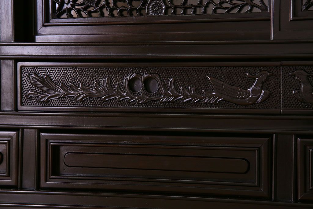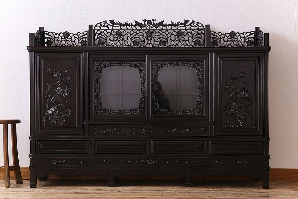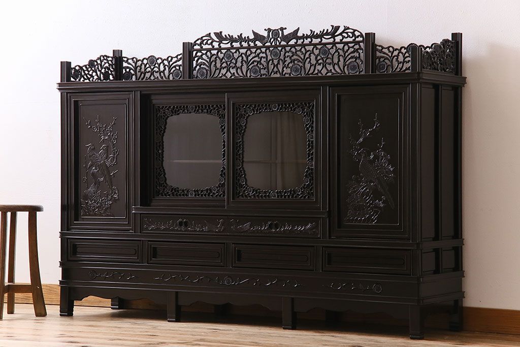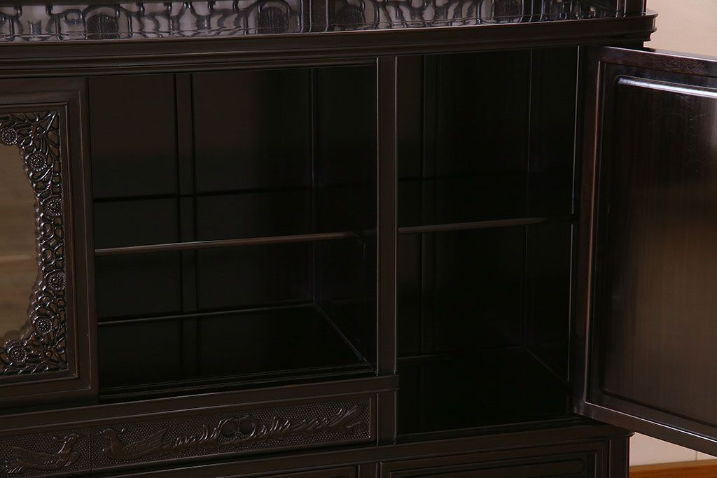 店舗什器 > 中古 民芸家具 黒檀材(唐木)製 高級品!彫刻が素晴らしいサイドボード(キャビネット、飾り棚)(定価約220万円)