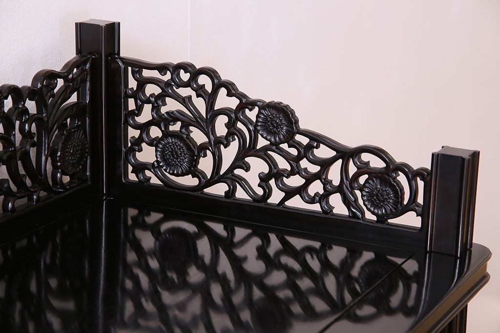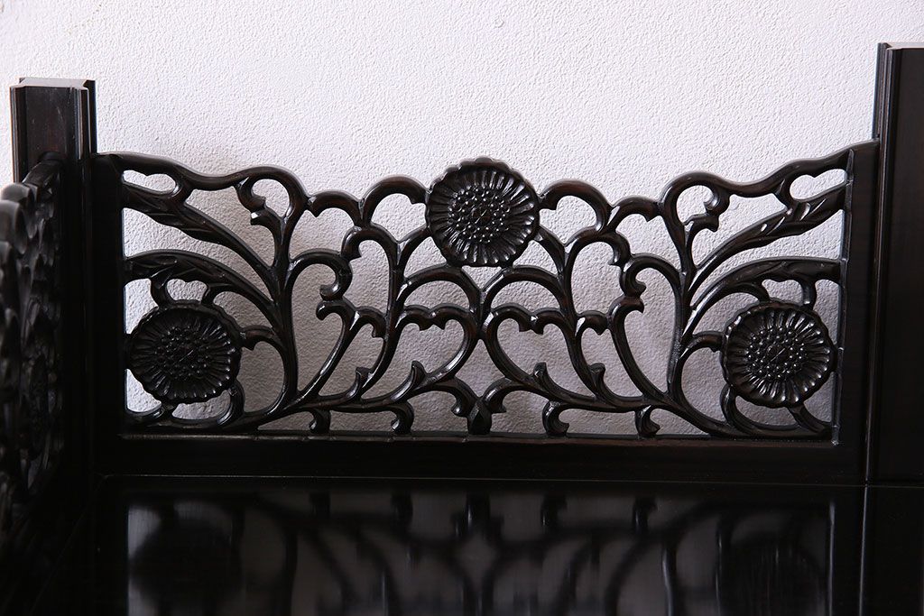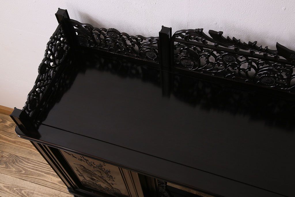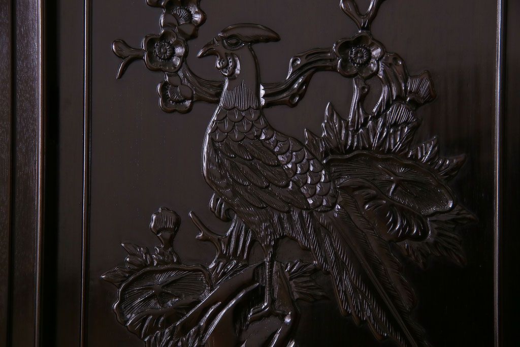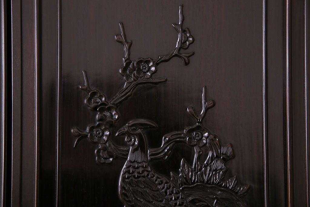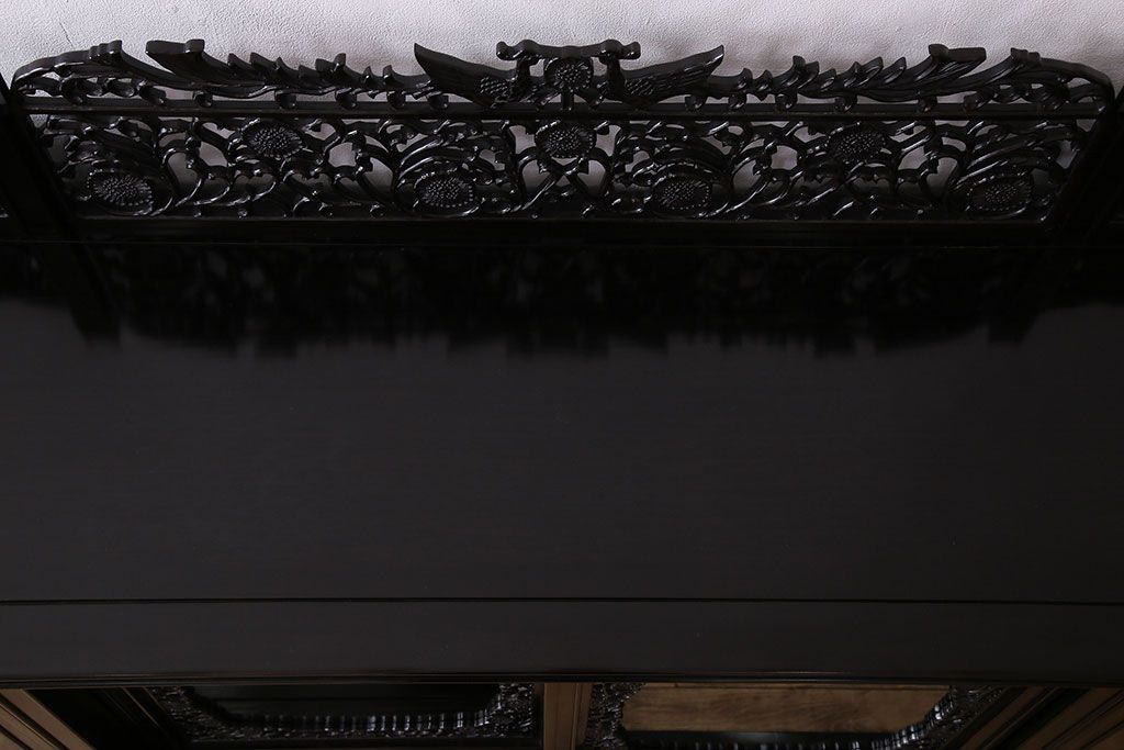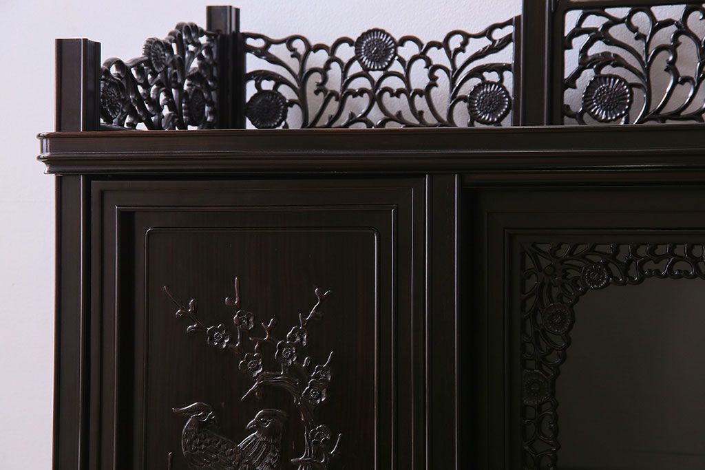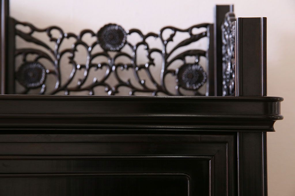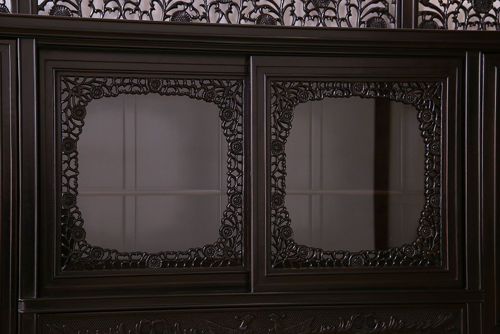 店舗什器 > 中古 民芸家具 黒檀材(唐木)製 高級品!彫刻が素晴らしいサイドボード(キャビネット、飾り棚)(定価約220万円)