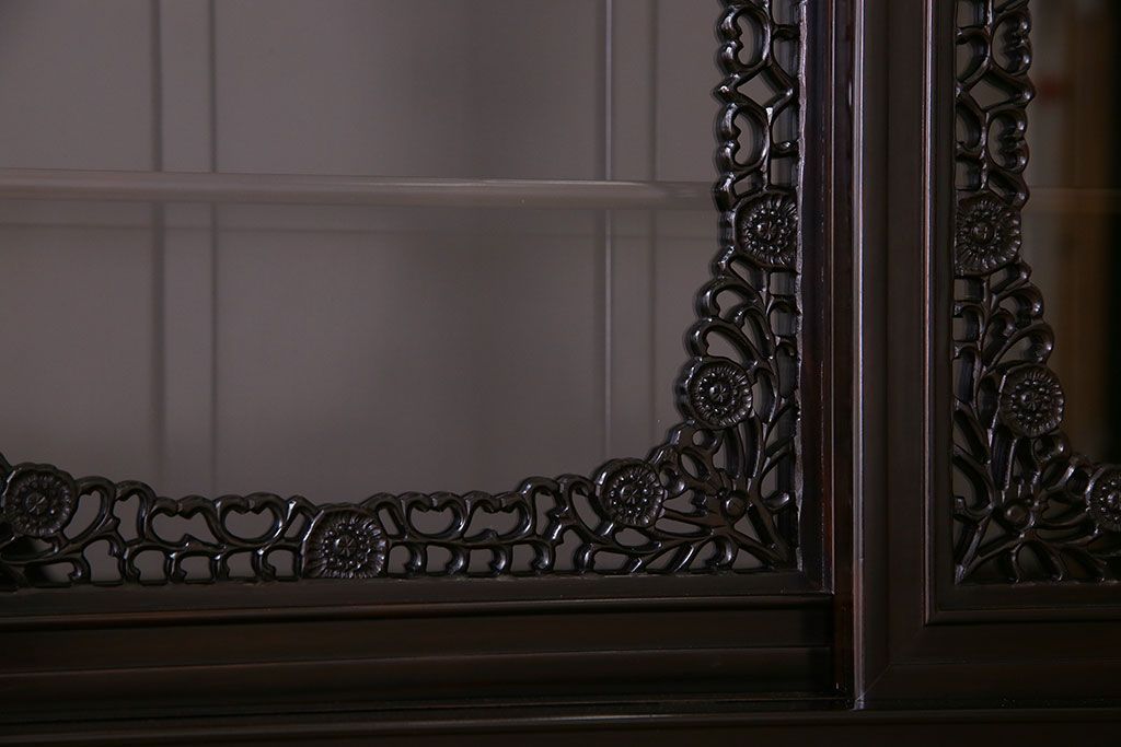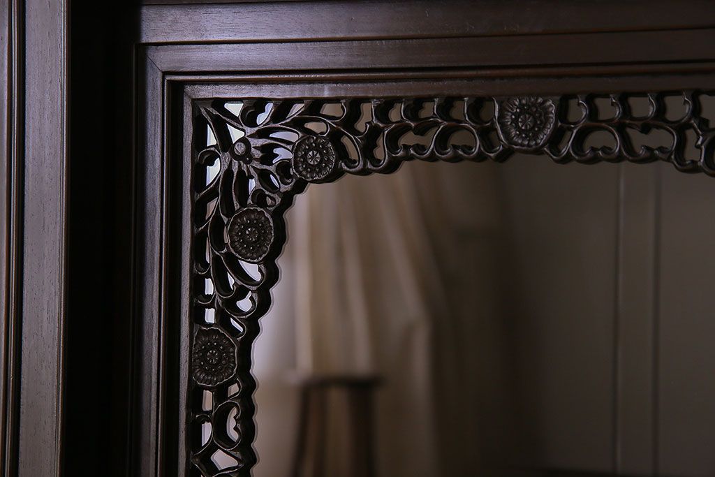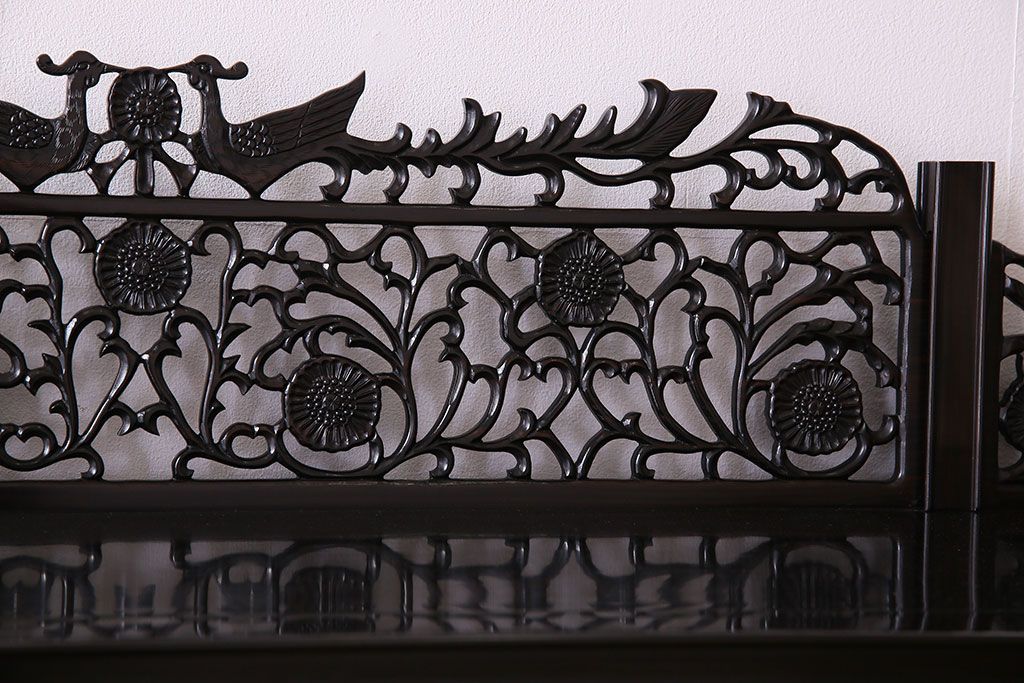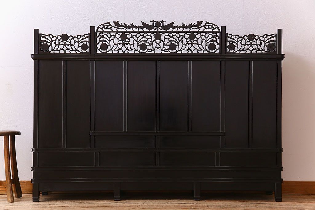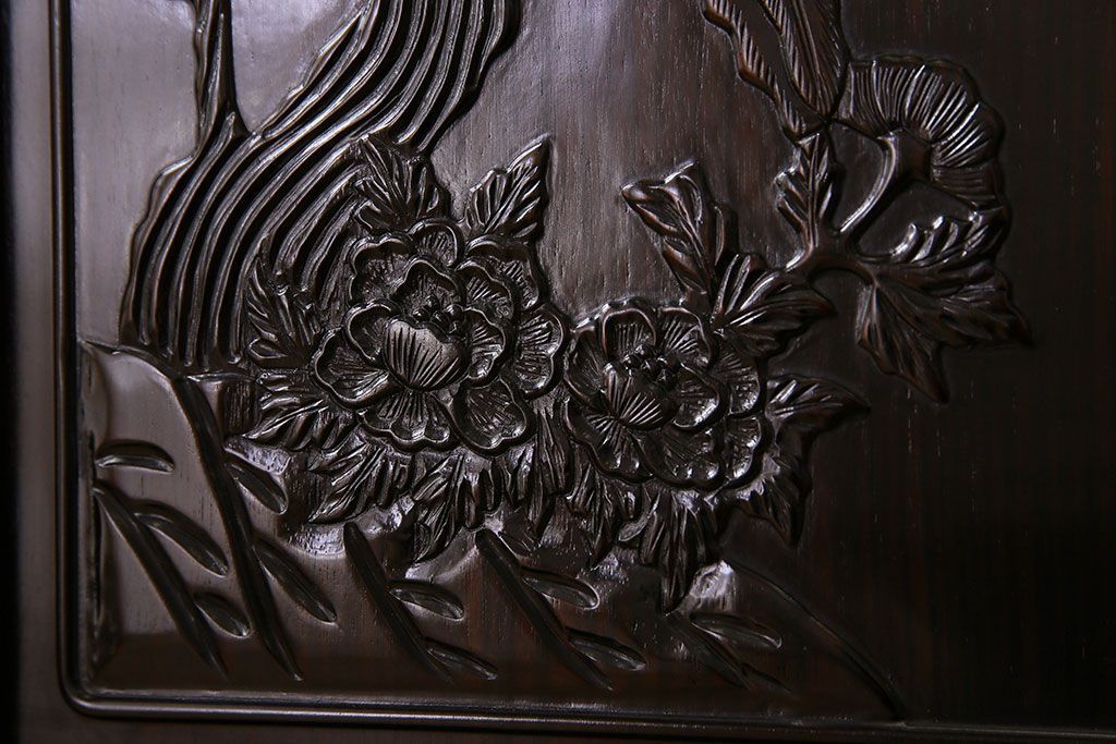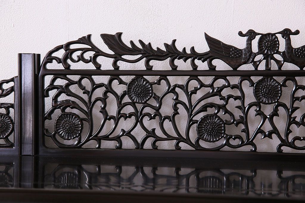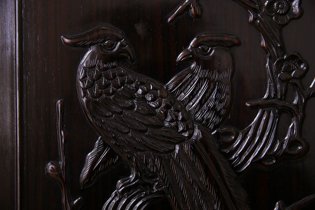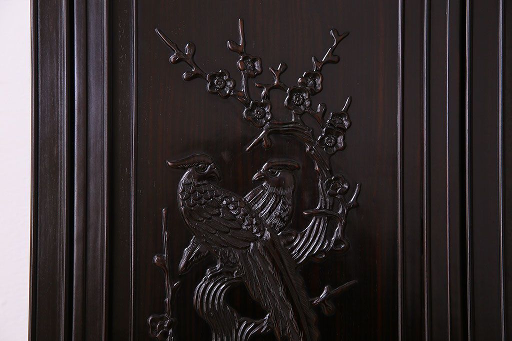 店舗什器 > 中古 民芸家具 黒檀材(唐木)製 高級品!彫刻が素晴らしいサイドボード(キャビネット、飾り棚)(定価約220万円)