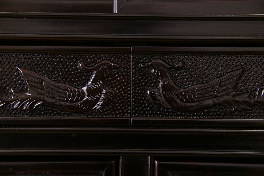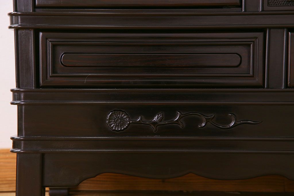 民芸家具 > 中古 民芸家具 黒檀材(唐木)製 高級品!彫刻が素晴らしいサイドボード(キャビネット、飾り棚)(定価約220万円)