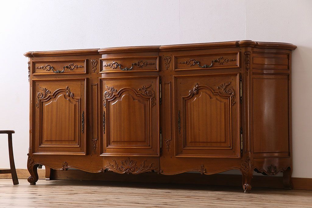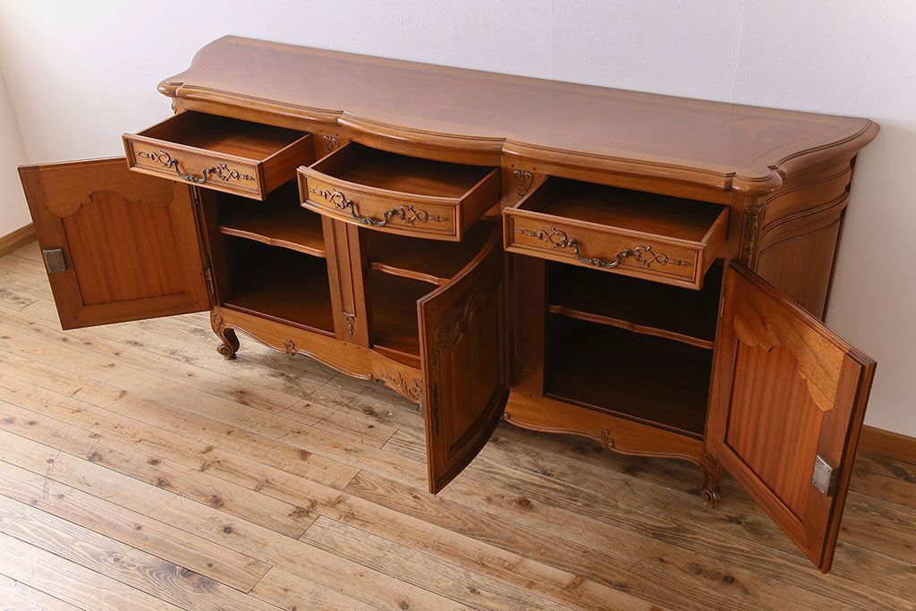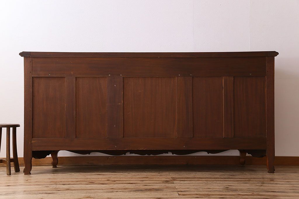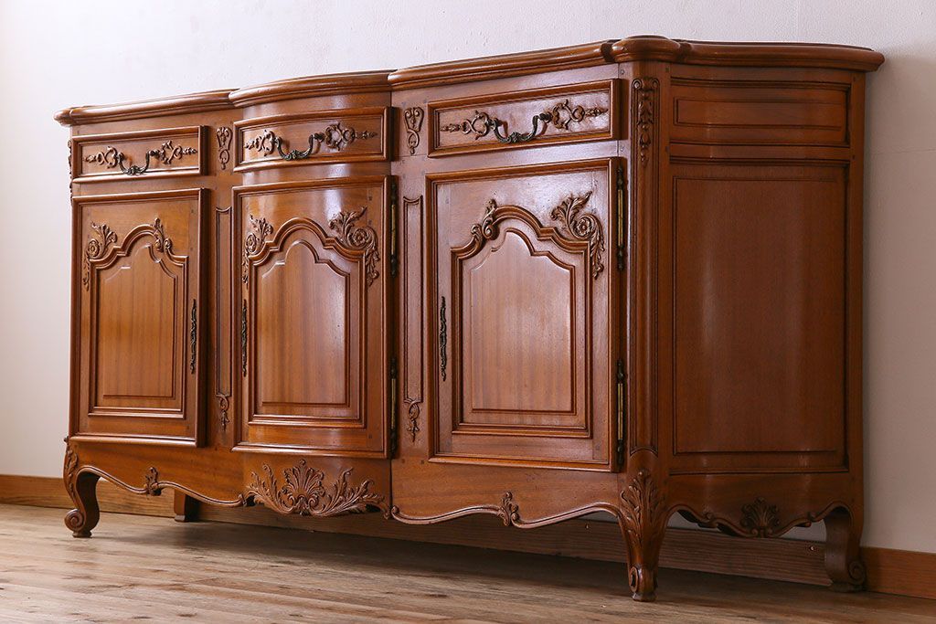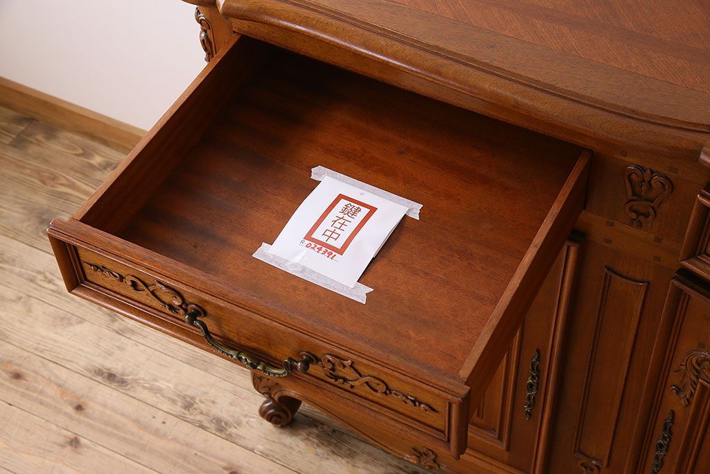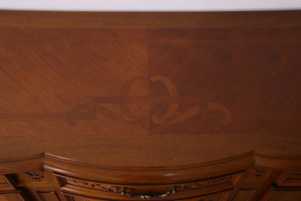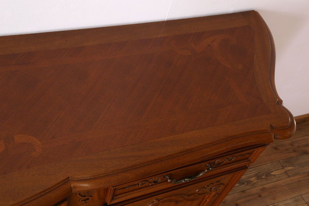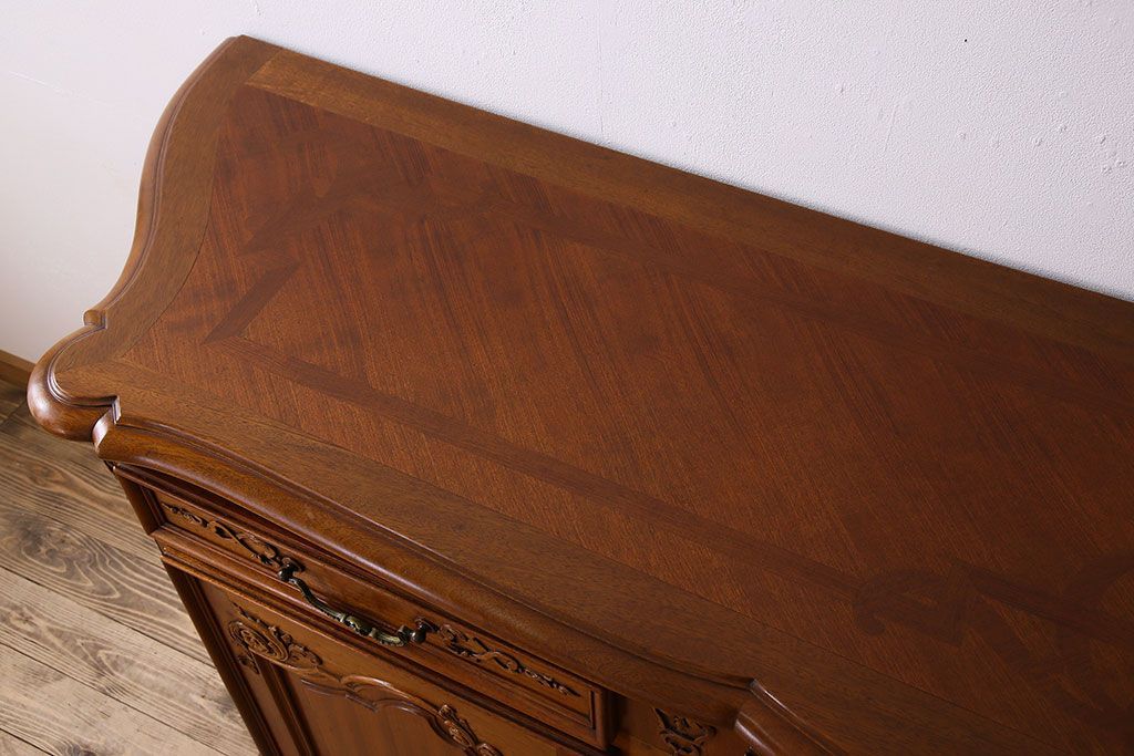 ヴィンテージ家具 フランスビンテージ パーケット天板 マホガニー材製 彫刻が美しい特大サイドボード