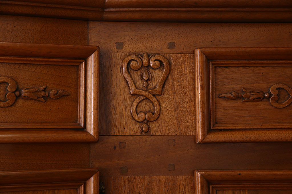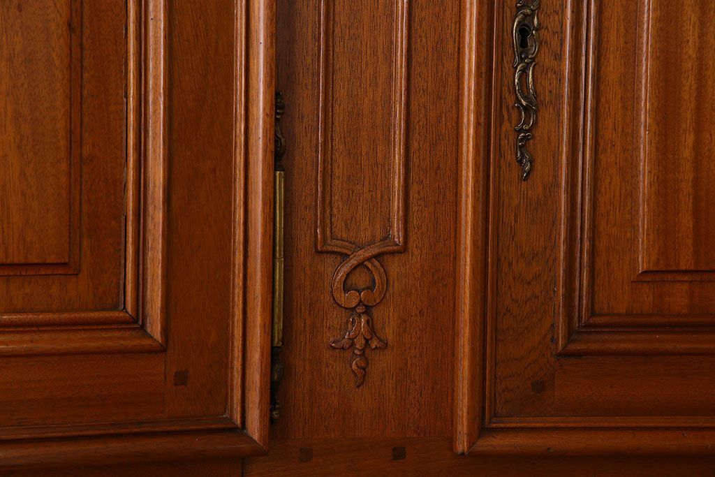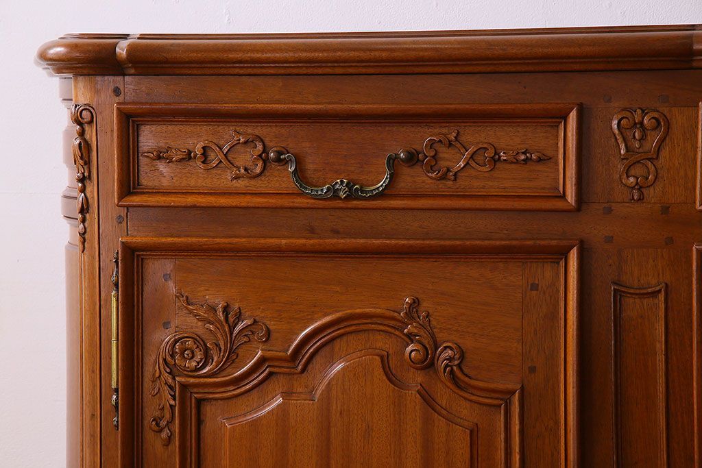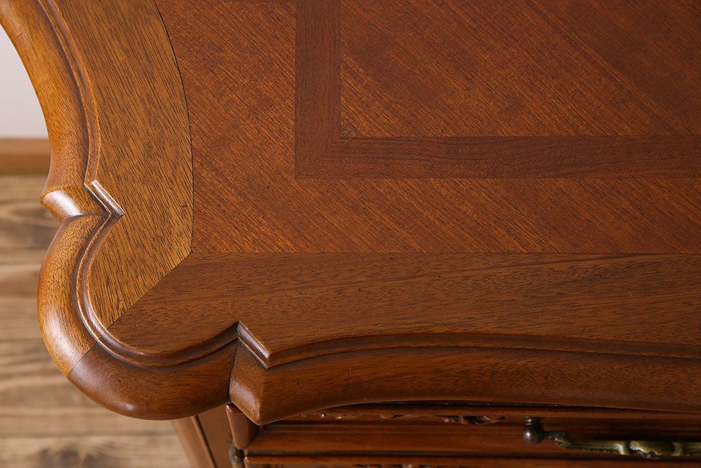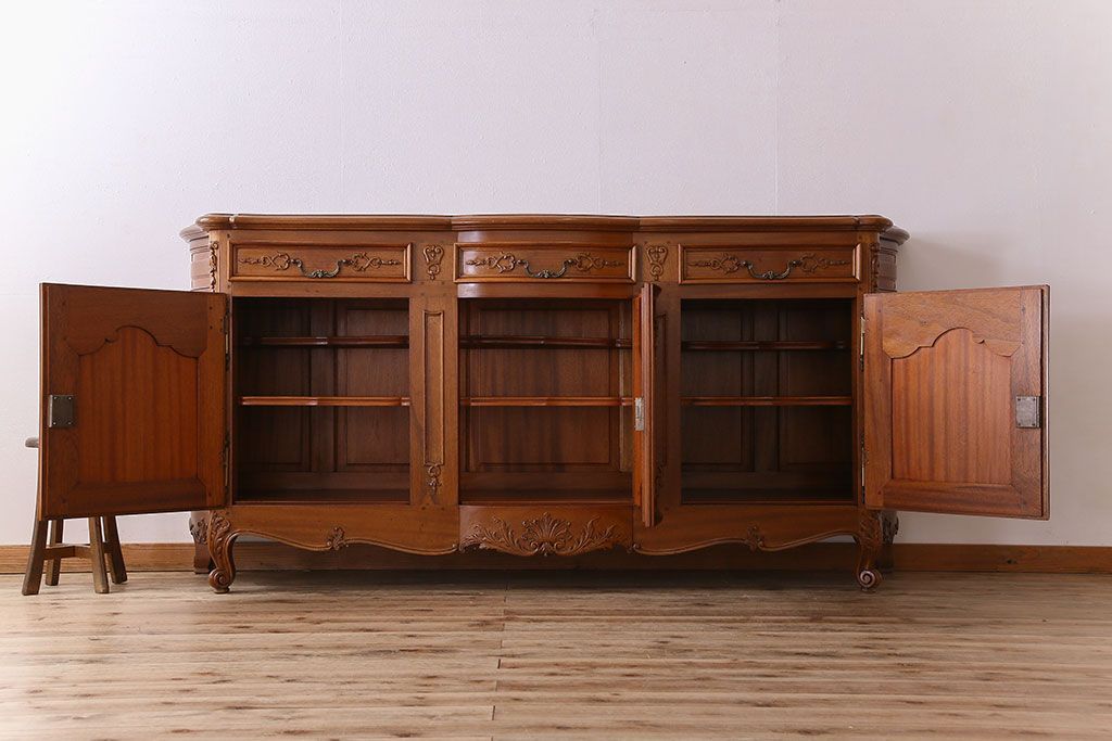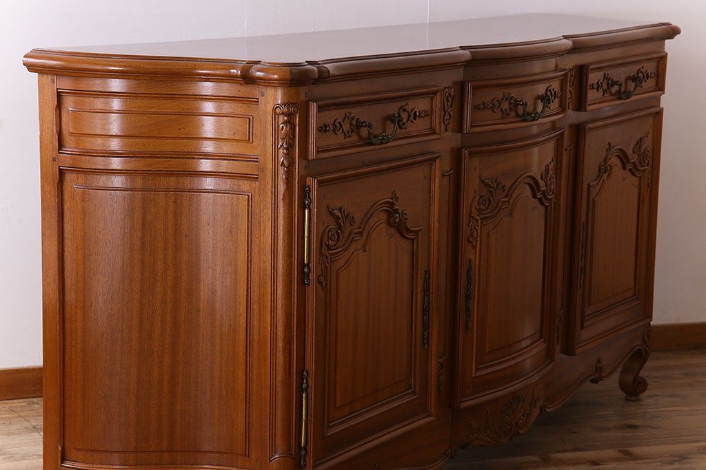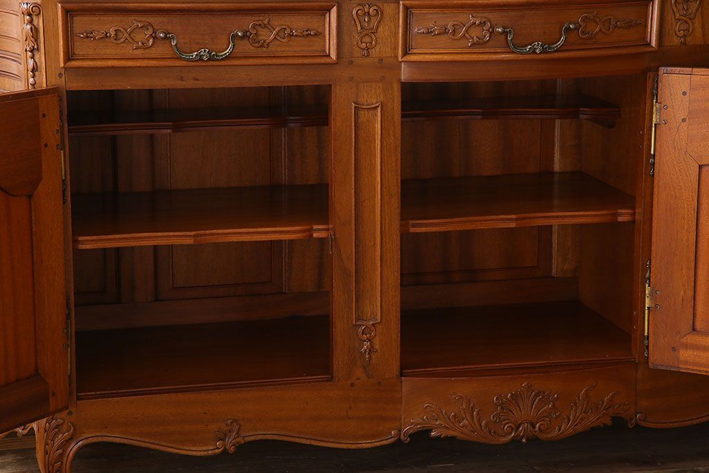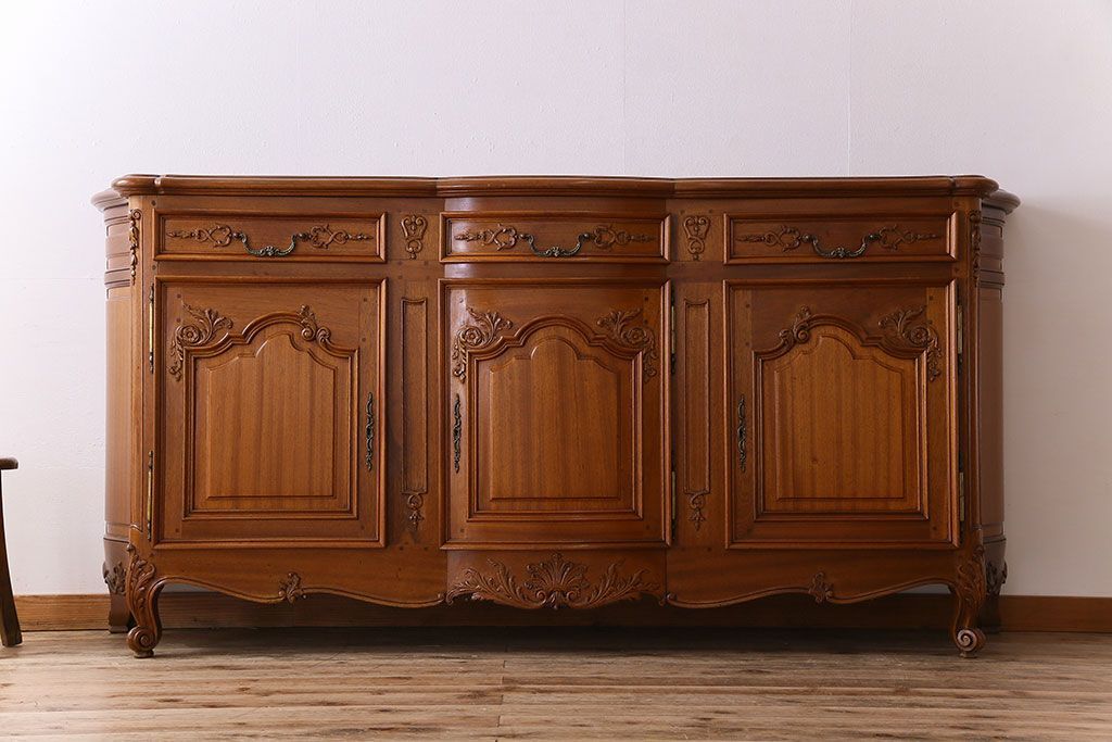 ヴィンテージ家具 フランスビンテージ パーケット天板 マホガニー材製 彫刻が美しい特大サイドボード