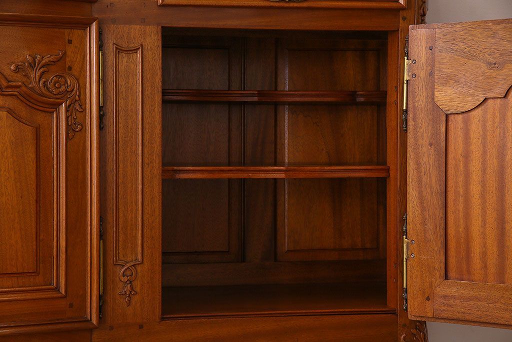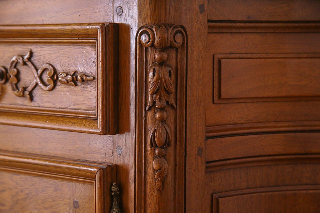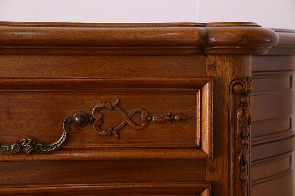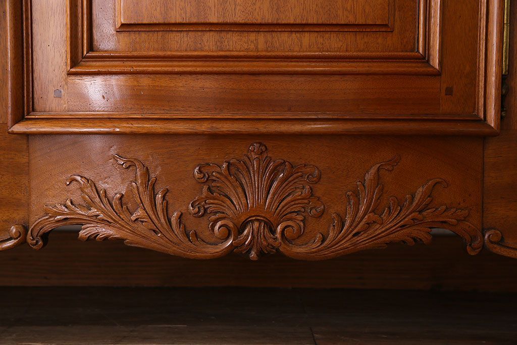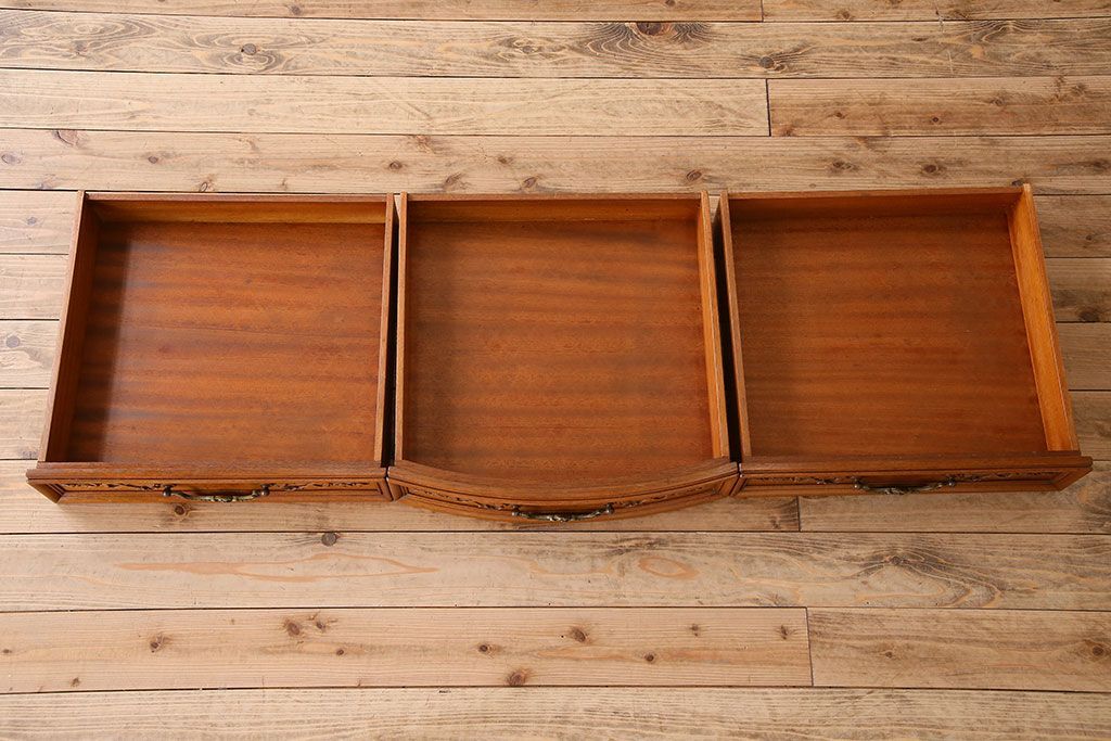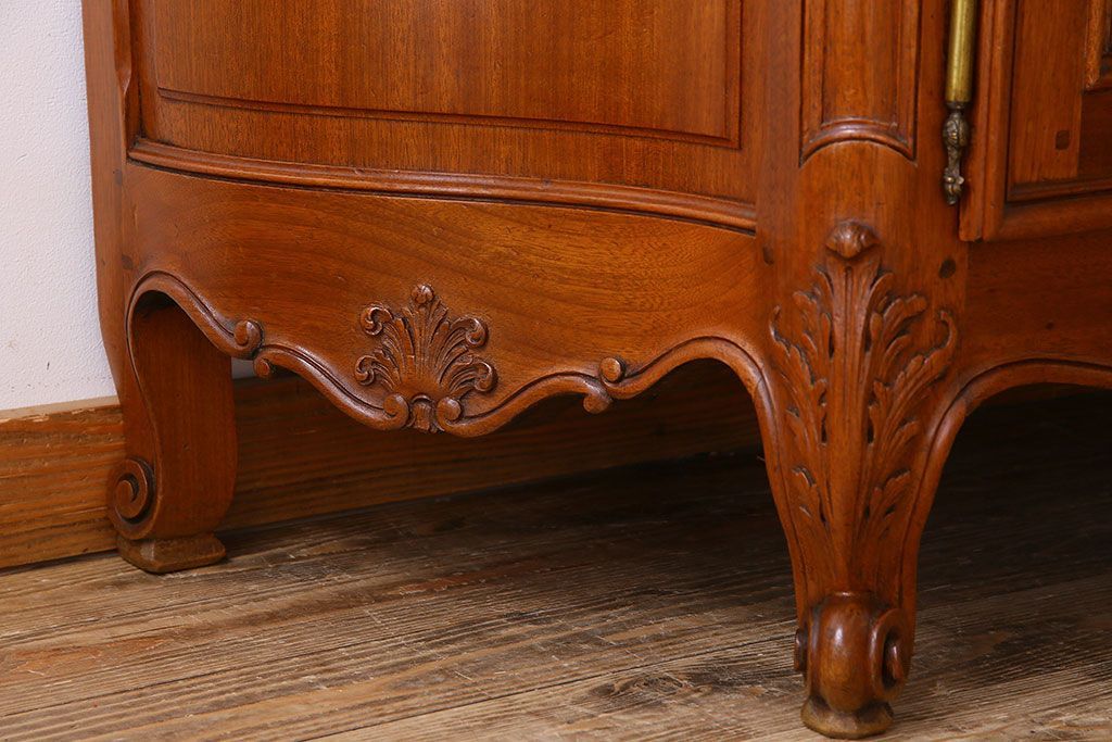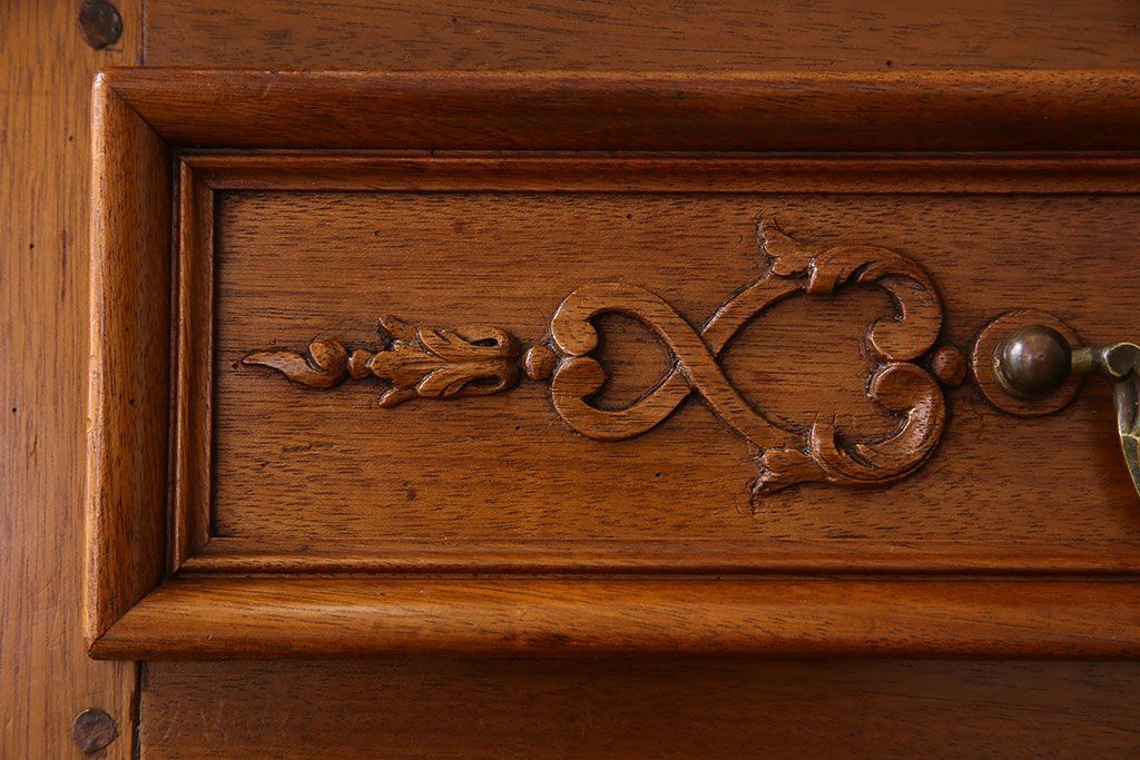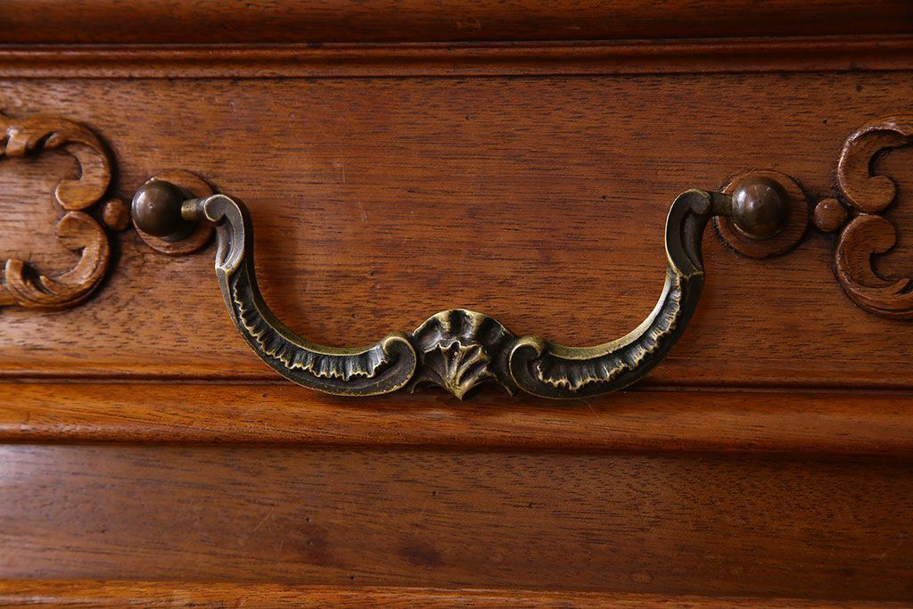 ヴィンテージ家具 フランスビンテージ パーケット天板 マホガニー材製 彫刻が美しい特大サイドボード