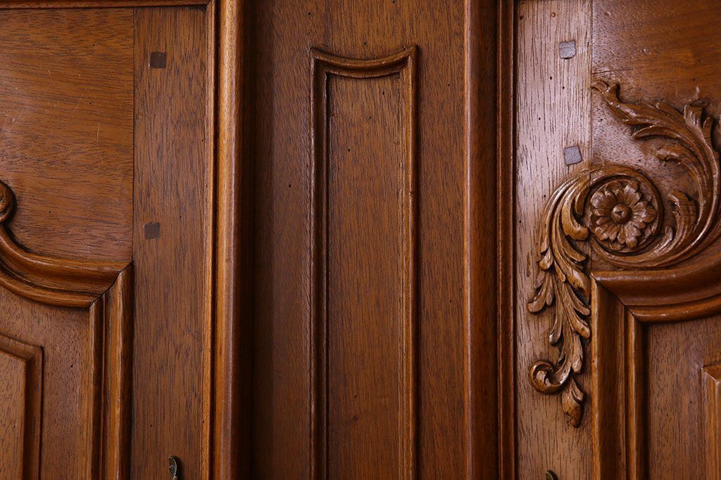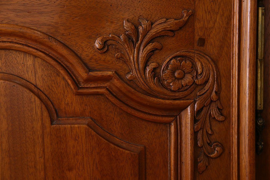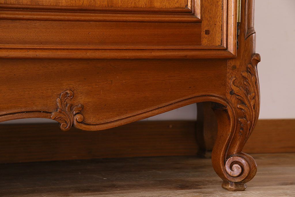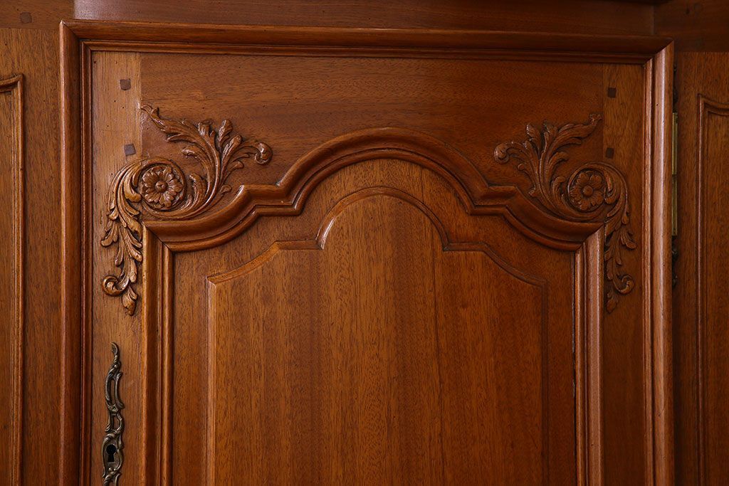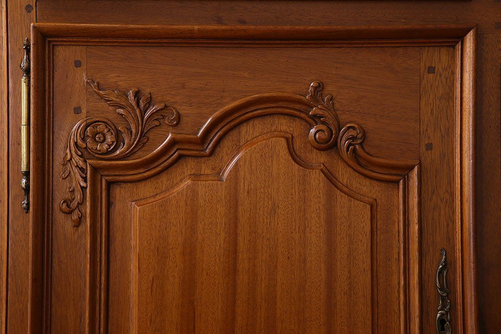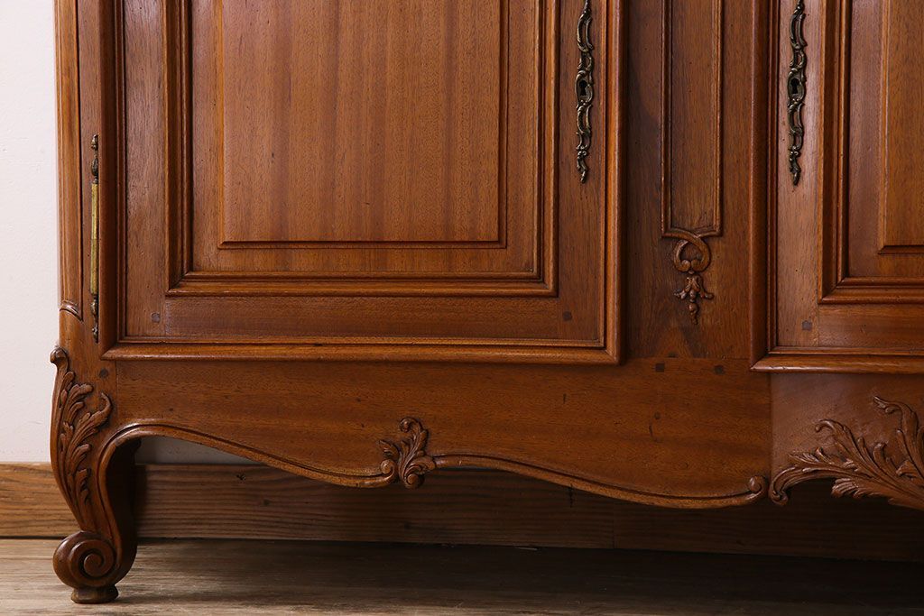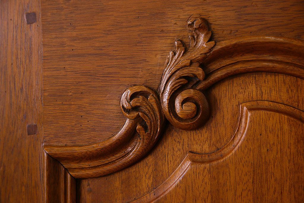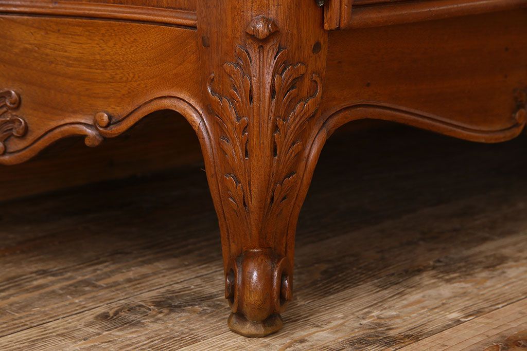 ヴィンテージ家具 フランスビンテージ パーケット天板 マホガニー材製 彫刻が美しい特大サイドボード