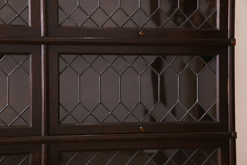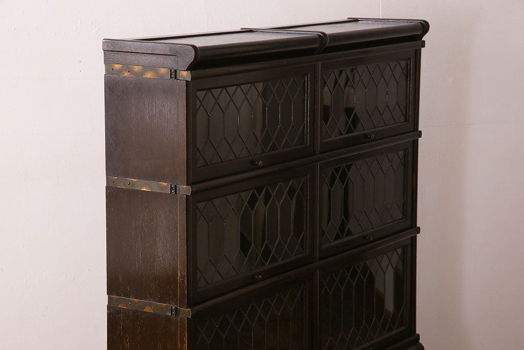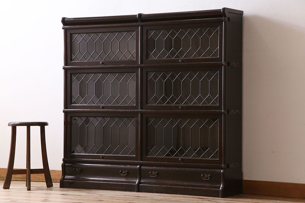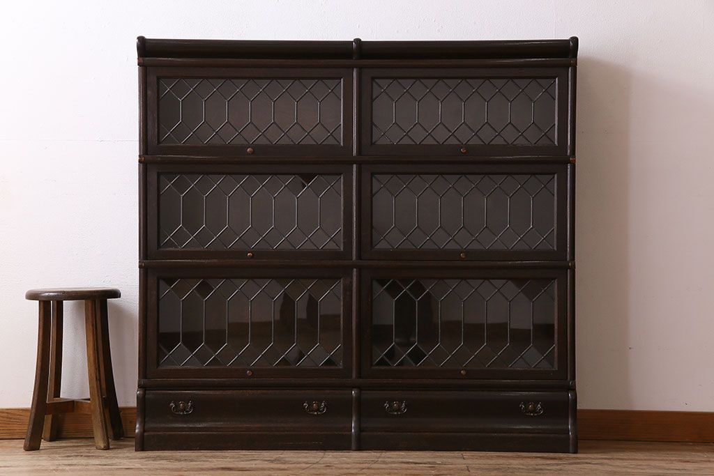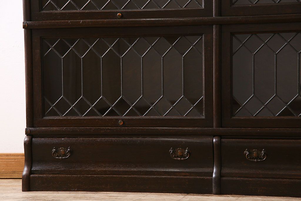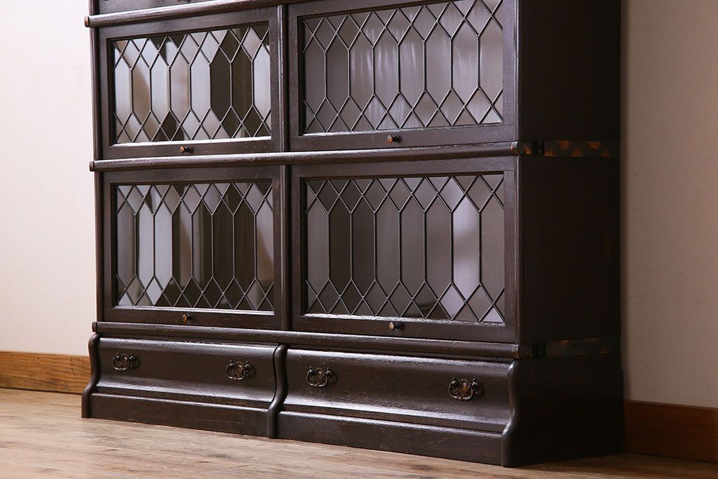 アンティーク家具 珍しいデザイン!ステンドグラス扉の引き出し付きスタッキングブックケース(書棚、本棚、本箱)