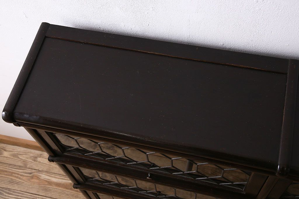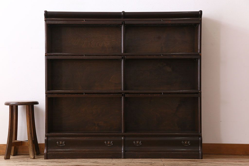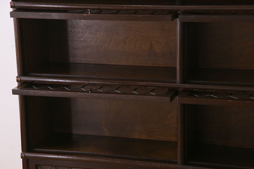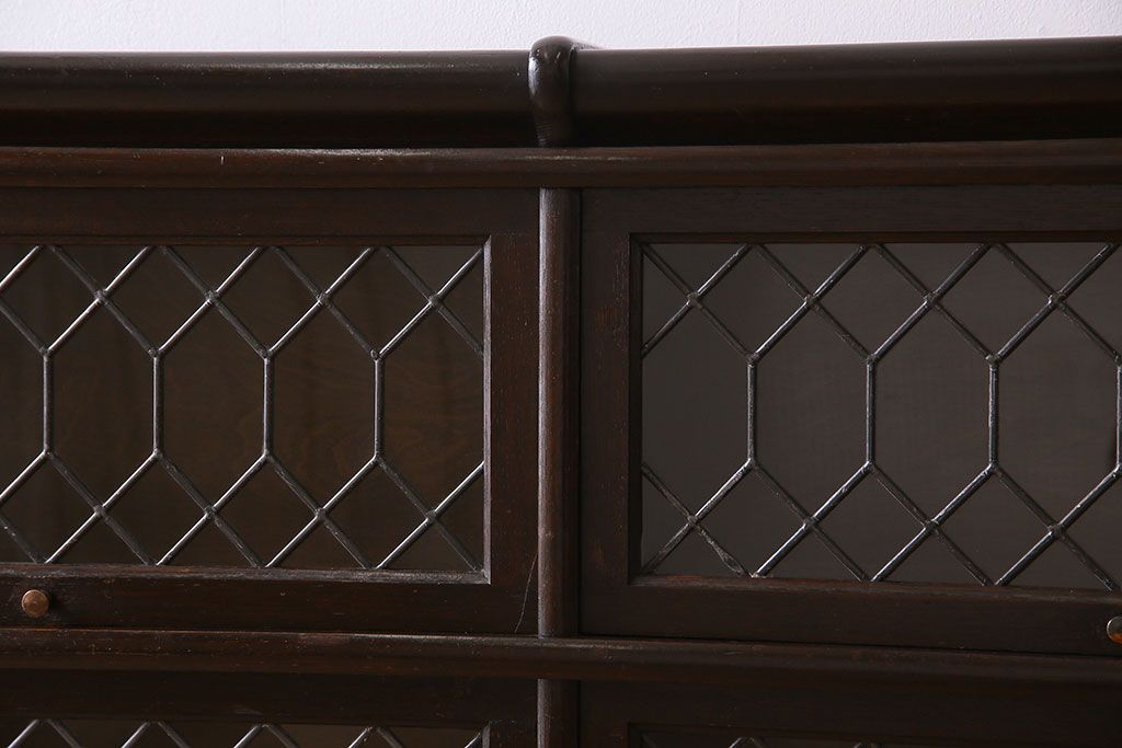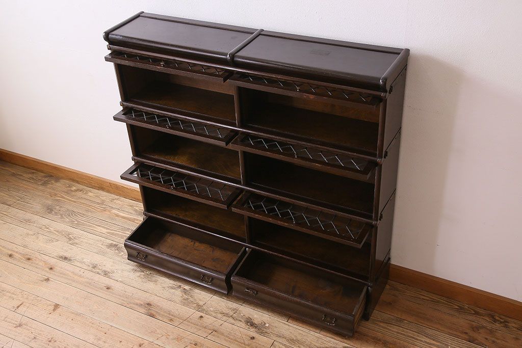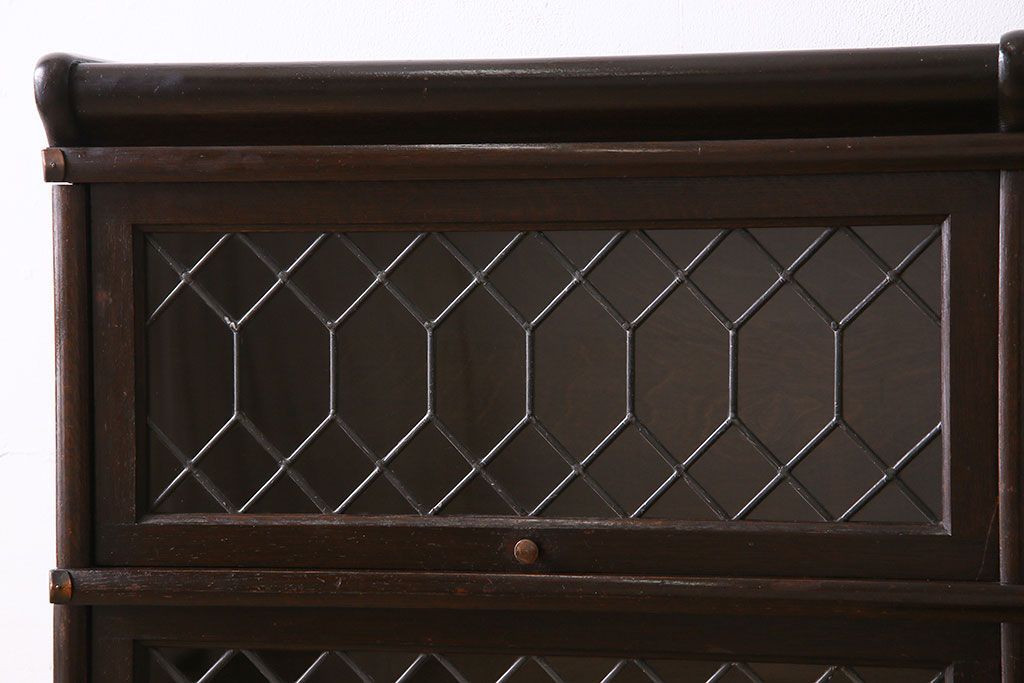 アンティーク家具 珍しいデザイン!ステンドグラス扉の引き出し付きスタッキングブックケース(書棚、本棚、本箱)