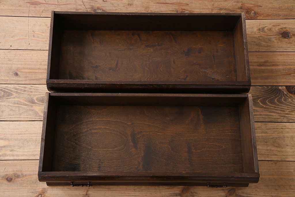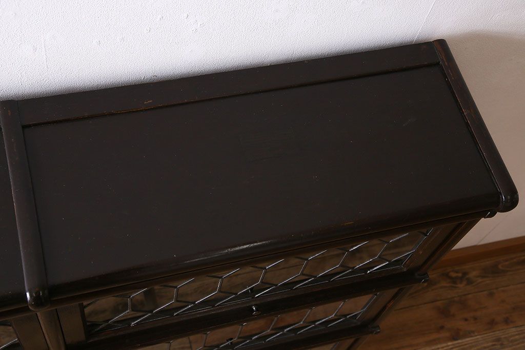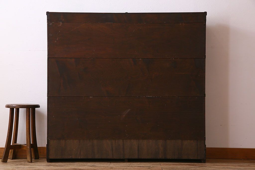 ラフジュ工房> キャビネット・戸棚> 本箱 > アンティーク家具 珍しいデザイン!ステンドグラス扉の引き出し付きスタッキングブックケース(書棚、本棚、本箱)