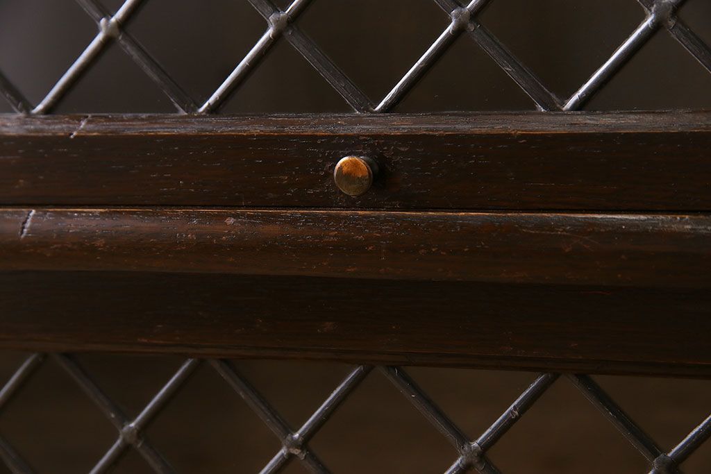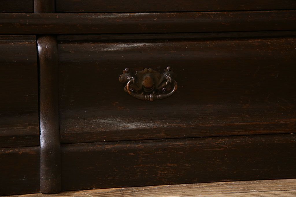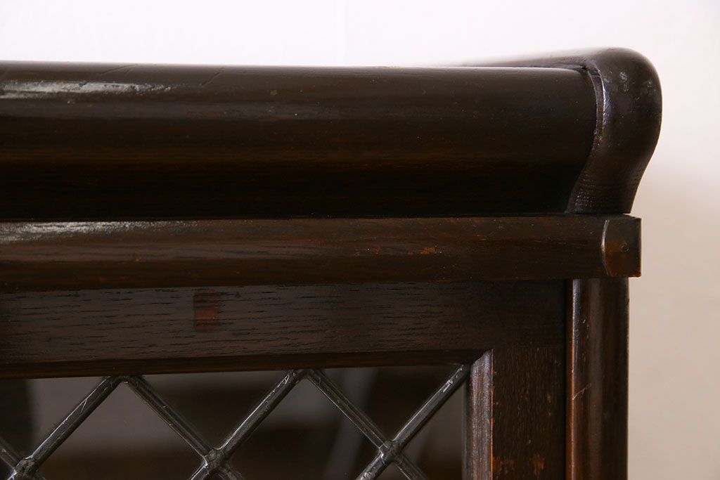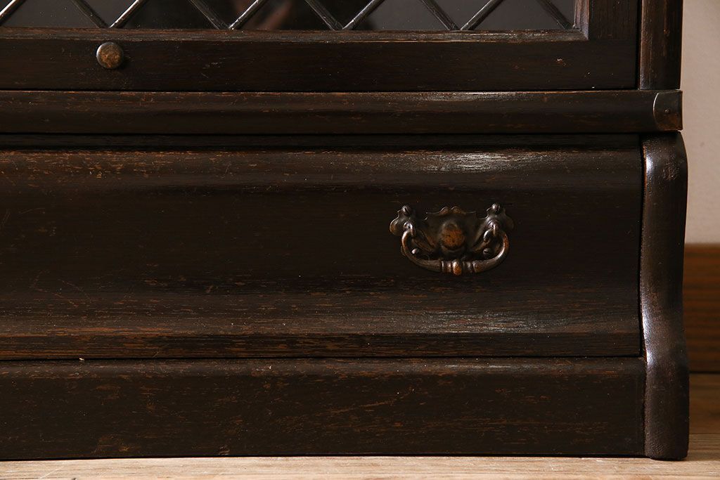 ラフジュ工房> キャビネット・戸棚> 食器棚・カップボード > アンティーク家具 珍しいデザイン!ステンドグラス扉の引き出し付きスタッキングブックケース(書棚、本棚、本箱)
