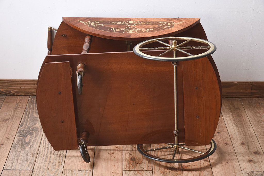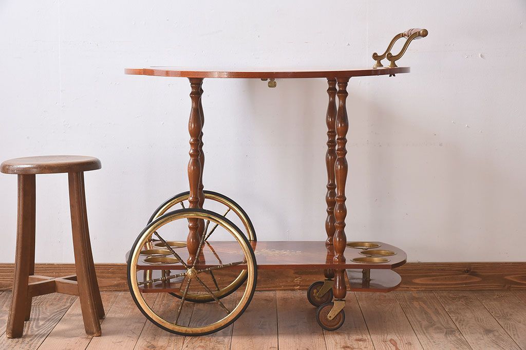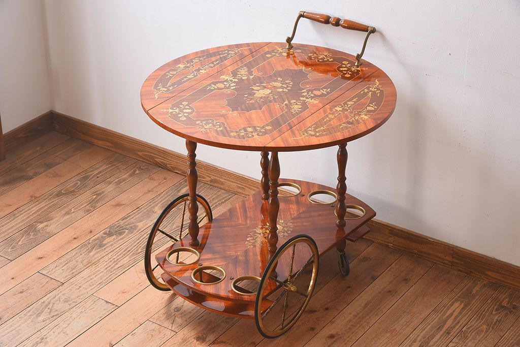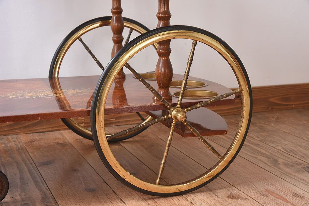 アンティーク雑貨 イタリアビンテージ 優雅な象嵌の細工が美しいトロリー(ワゴン)
