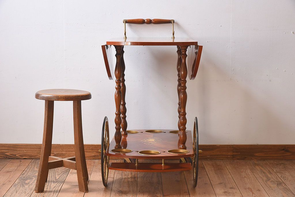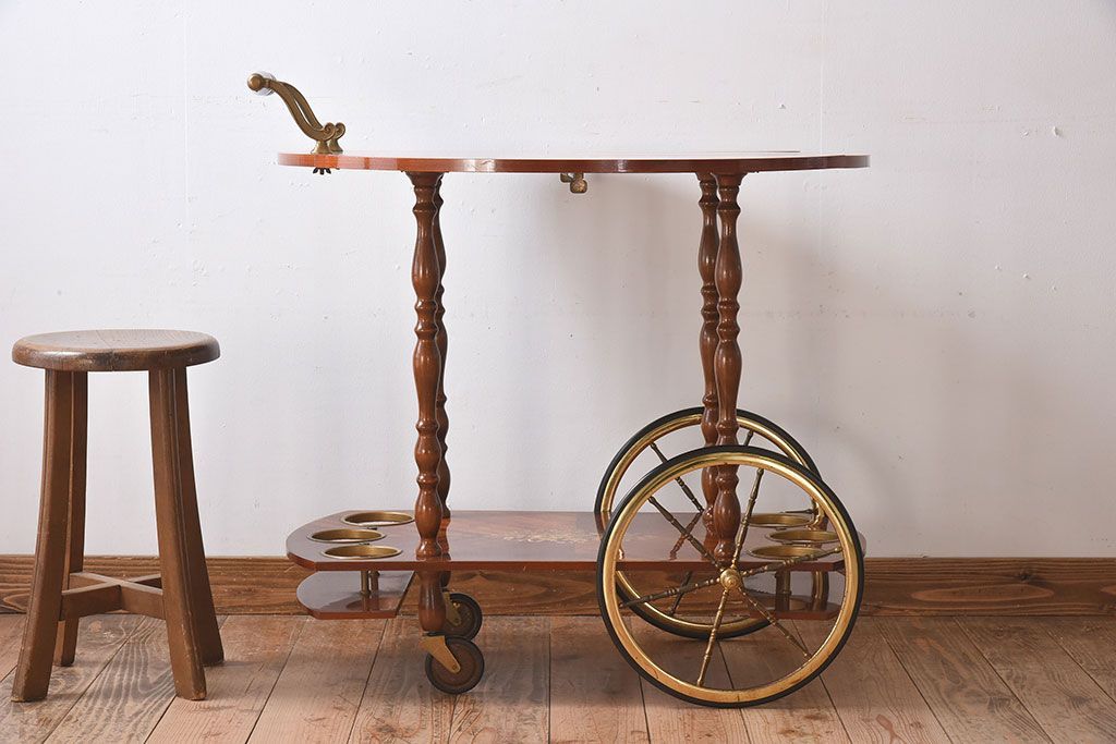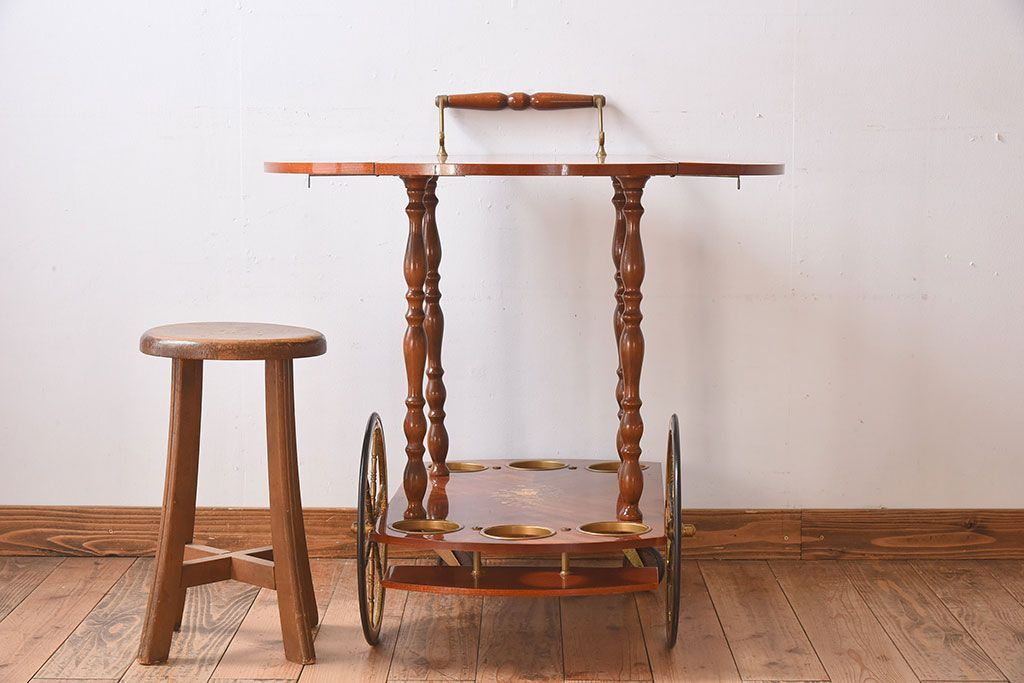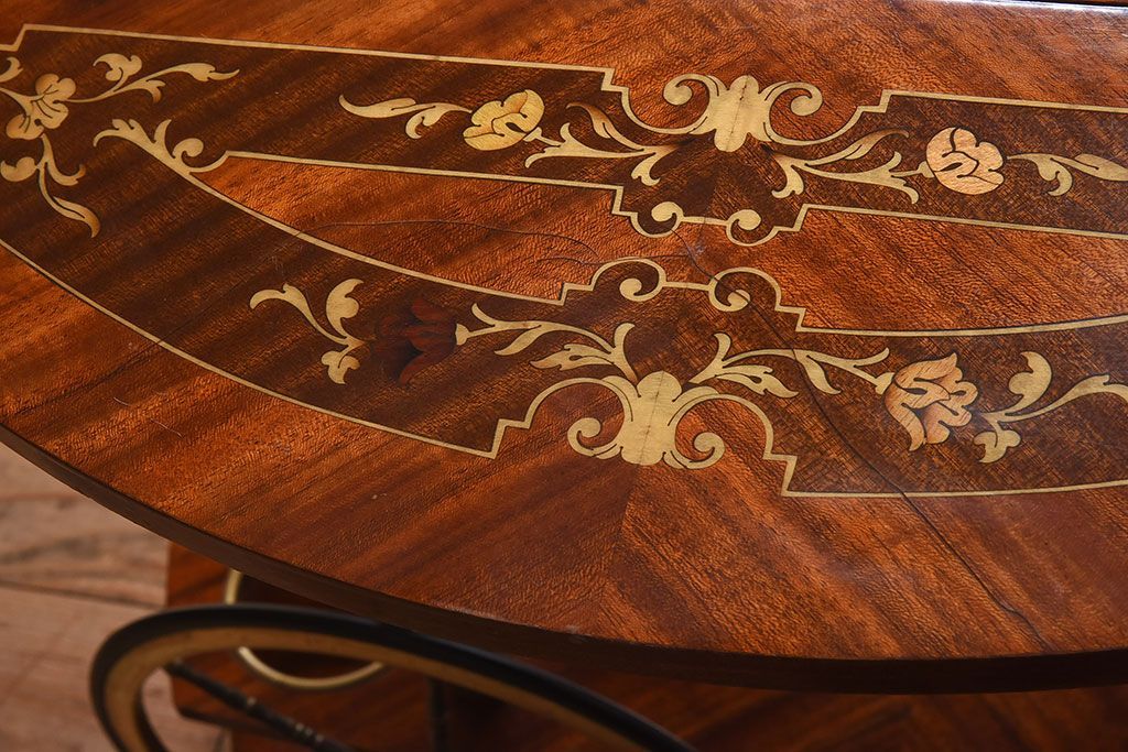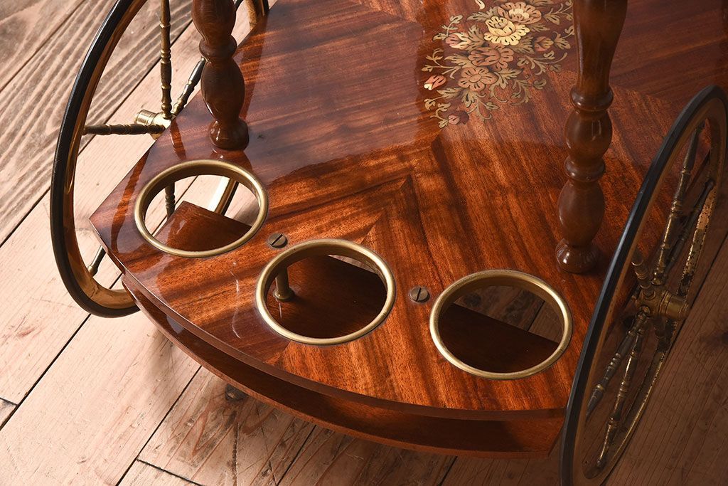 アンティーク雑貨 イタリアビンテージ 優雅な象嵌の細工が美しいトロリー(ワゴン)