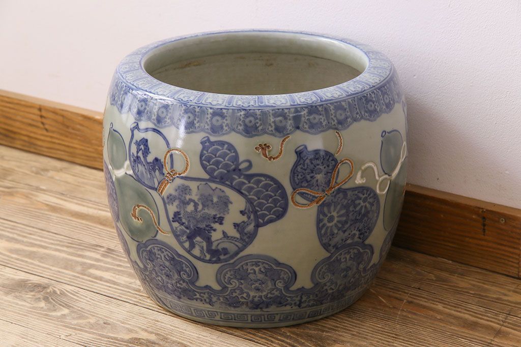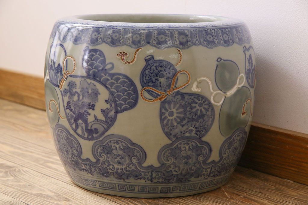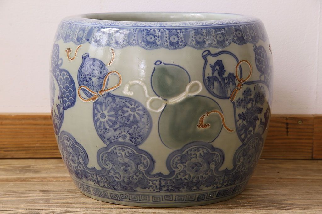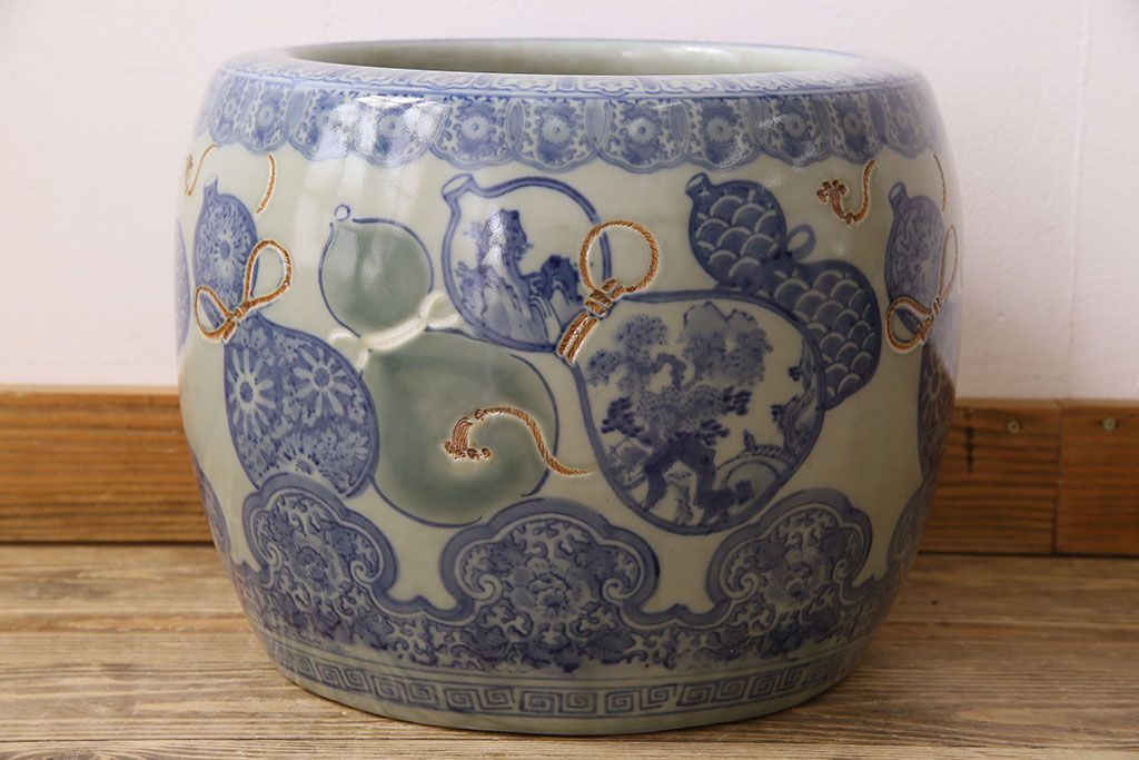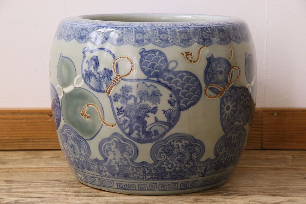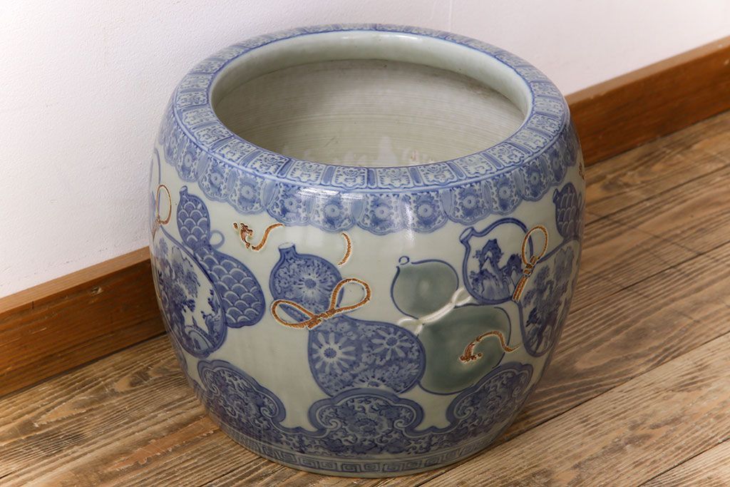 アンティーク雑貨 古民具・骨董 瓢箪の図 大正昭和期の味わい深い瀬戸火鉢