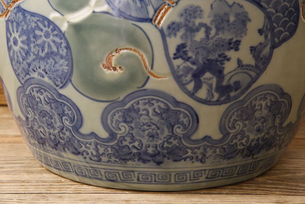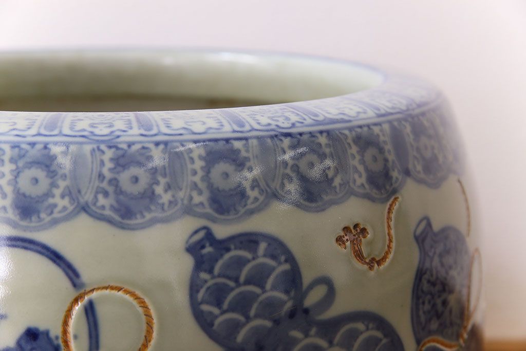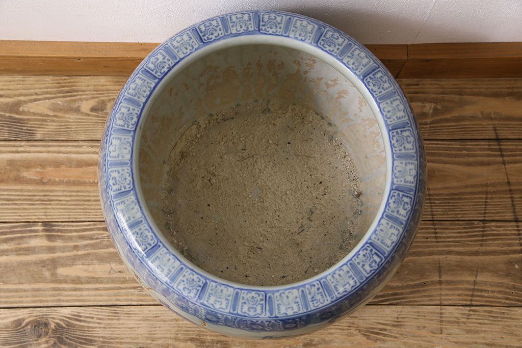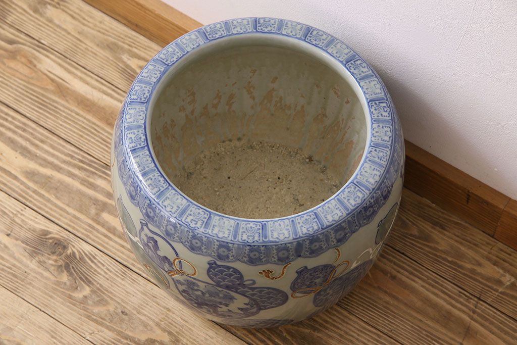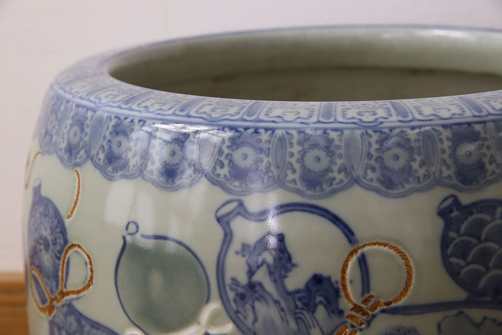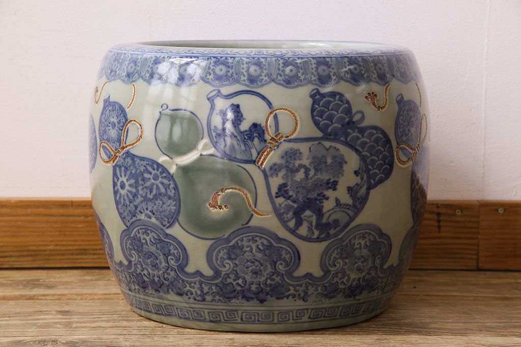アンティーク雑貨 古民具・骨董 瓢箪の図 大正昭和期の味わい深い瀬戸火鉢