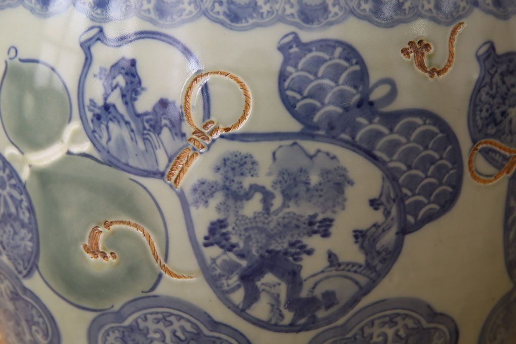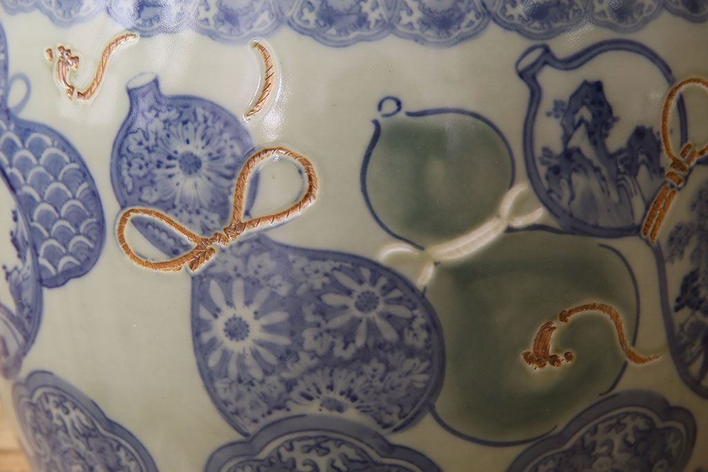 陶器の質感と、瓢箪の図柄が雅な佇まいの