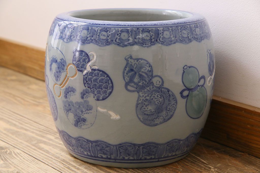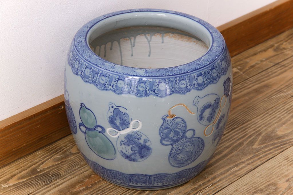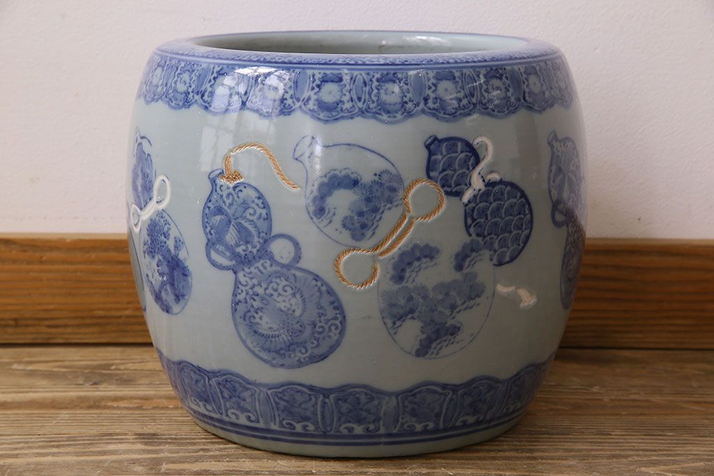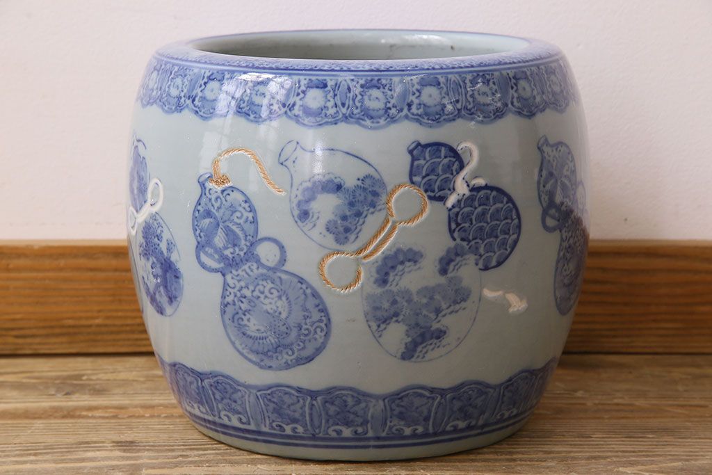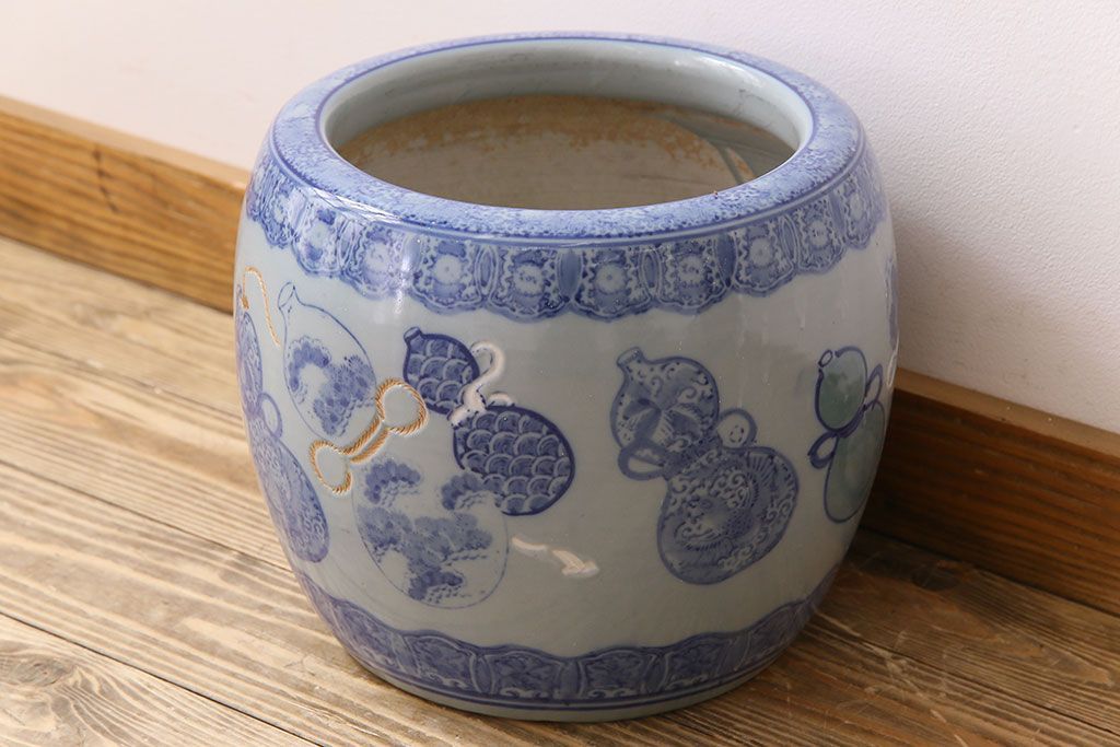アンティーク雑貨 古民具・骨董 瓢箪の図 趣ある瀬戸火鉢