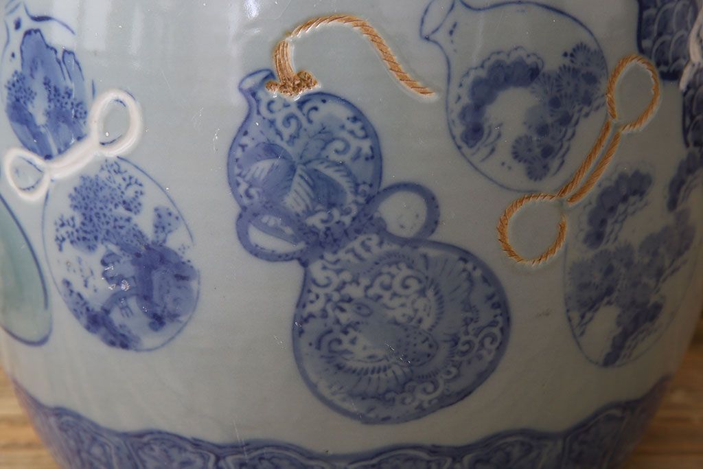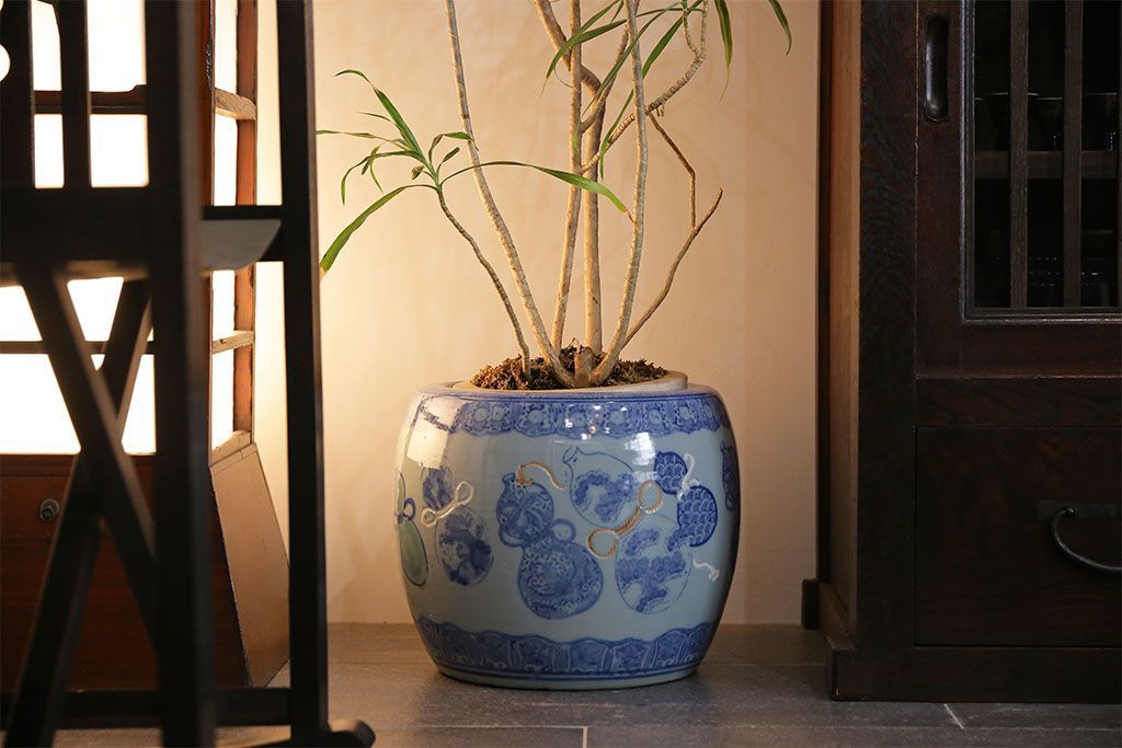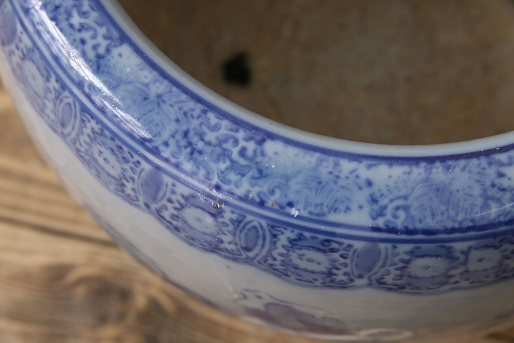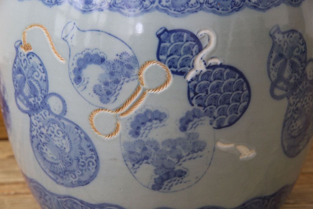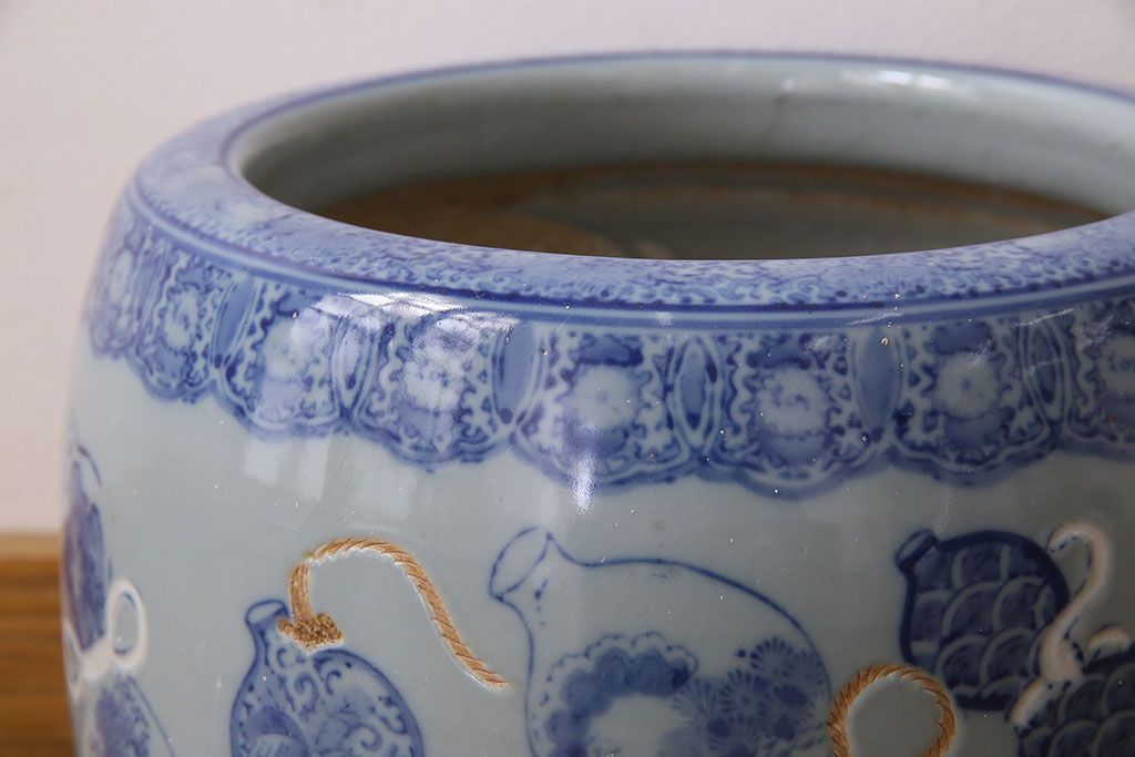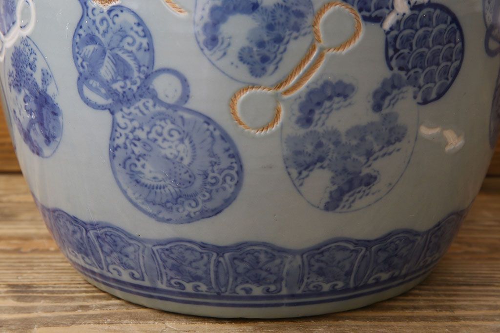 アンティーク雑貨 古民具・骨董 瓢箪の図 趣ある瀬戸火鉢