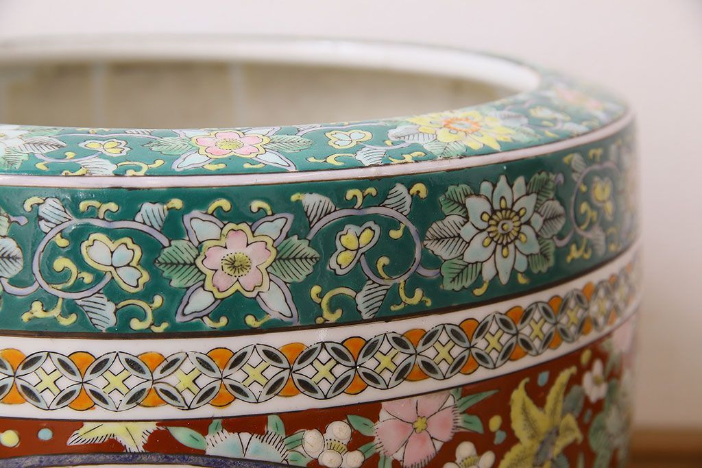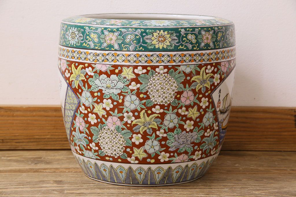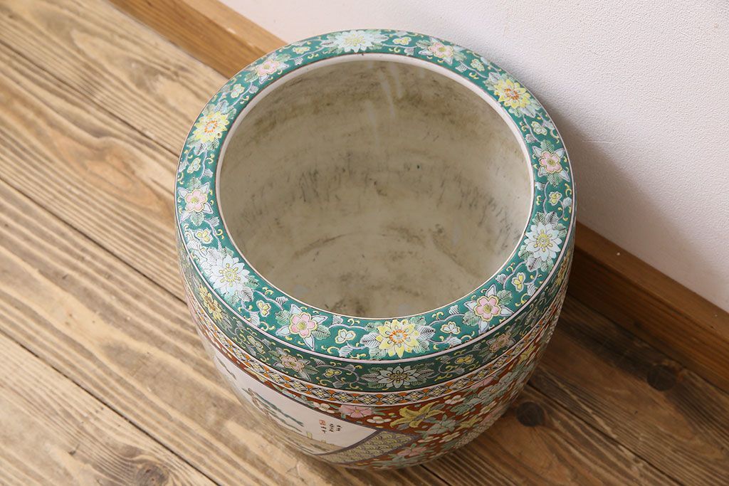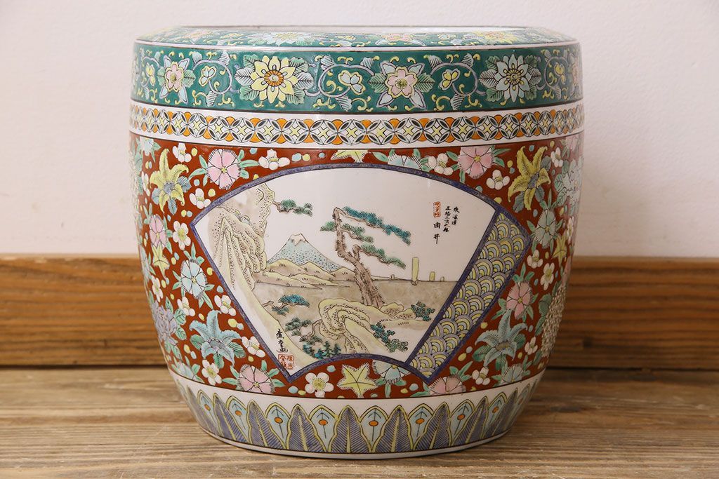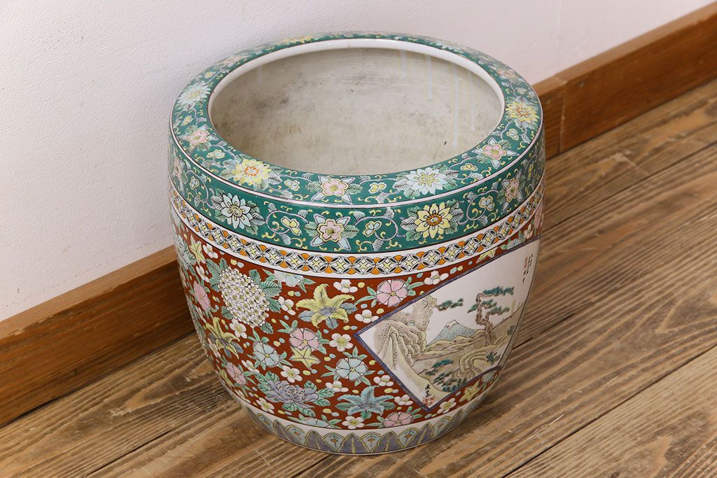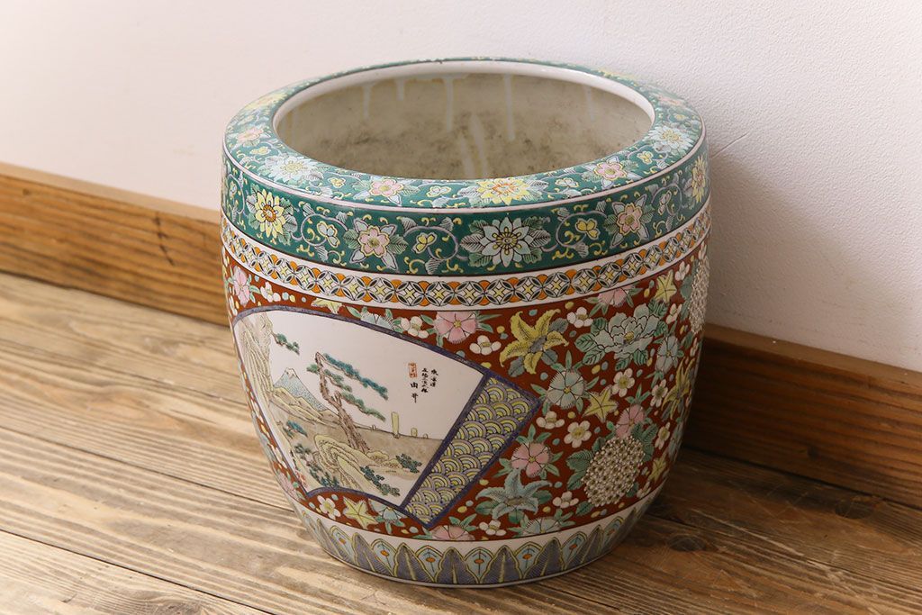 アンティーク雑貨 古民具・骨董 十錦手草花紋と窓絵が華やかな瀬戸火鉢