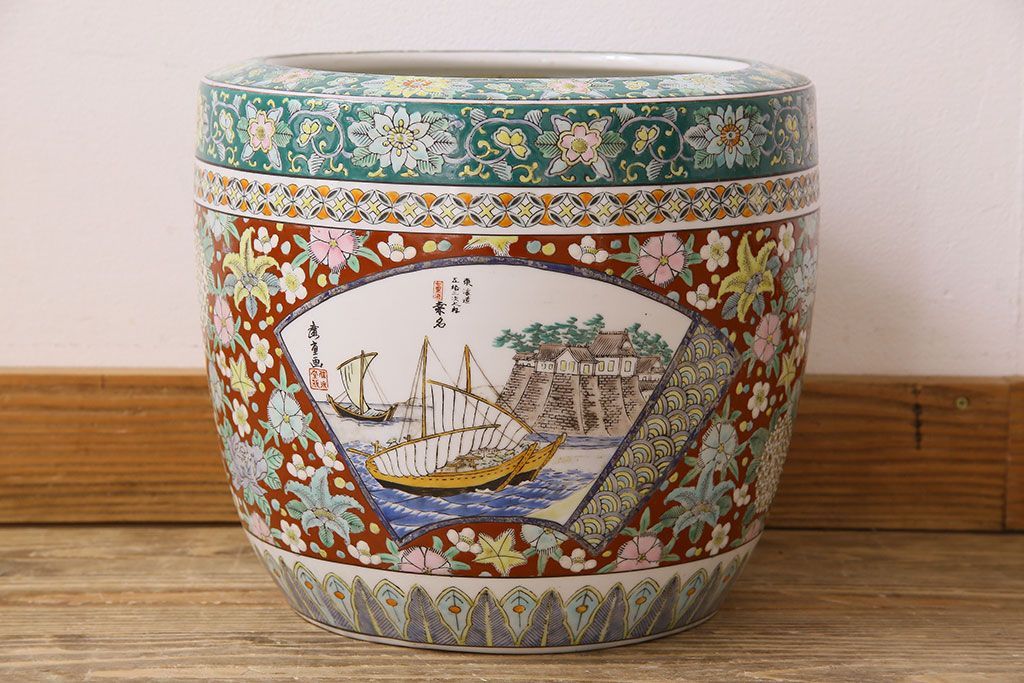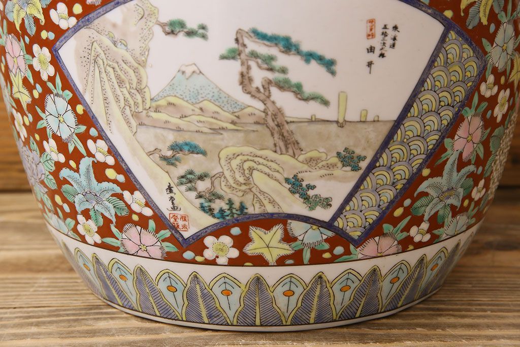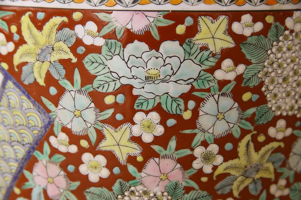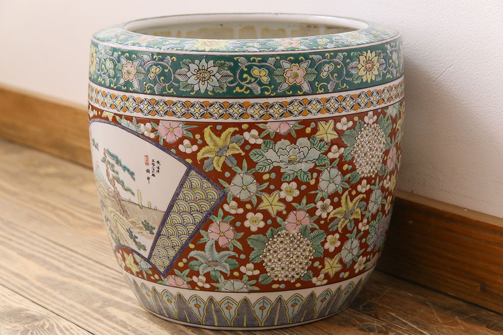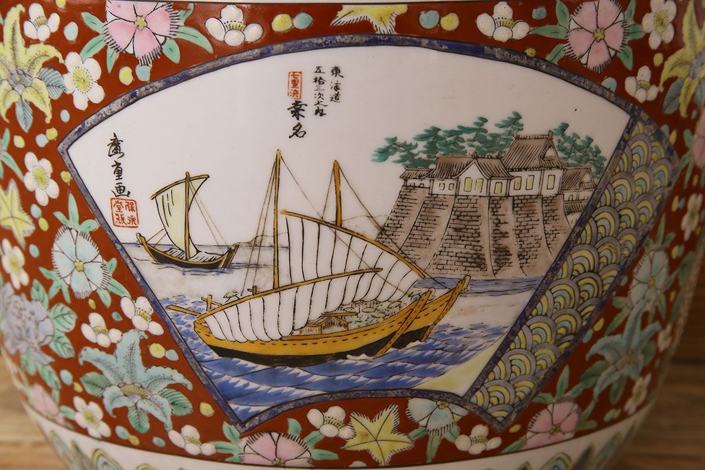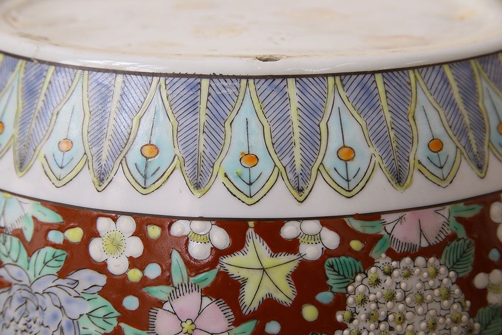 アンティーク雑貨 古民具・骨董 十錦手草花紋と窓絵が華やかな瀬戸火鉢