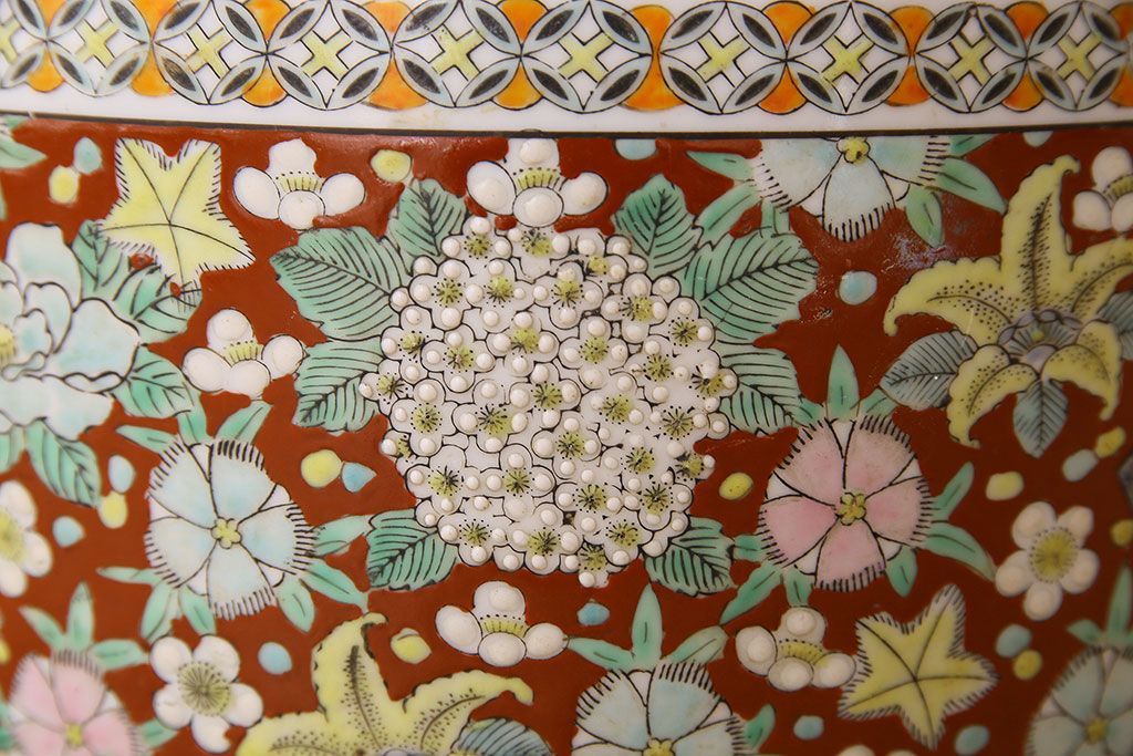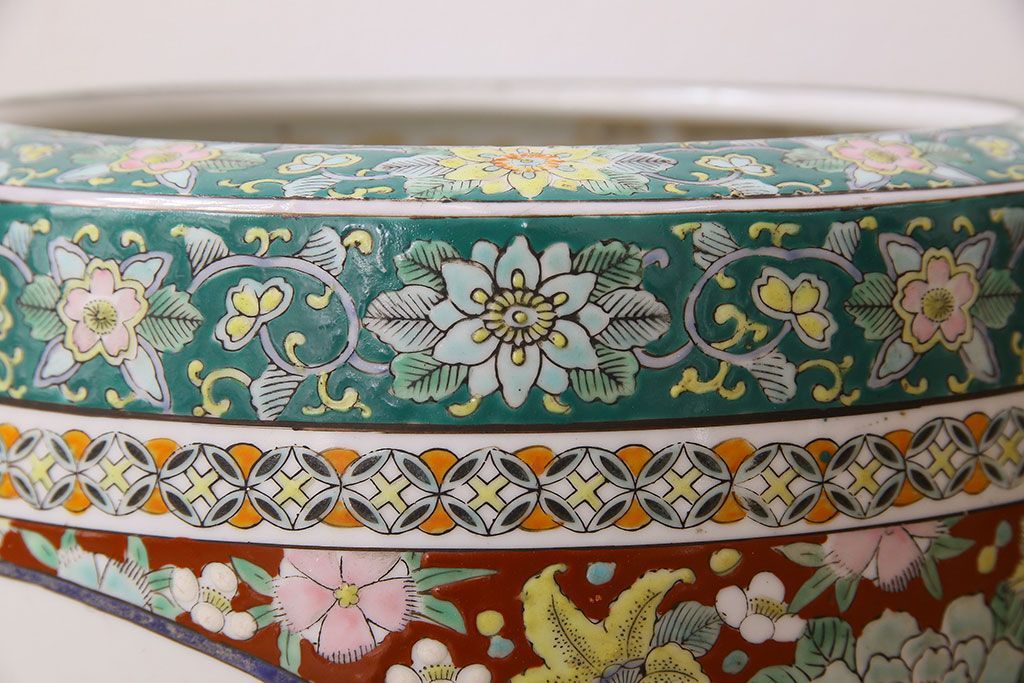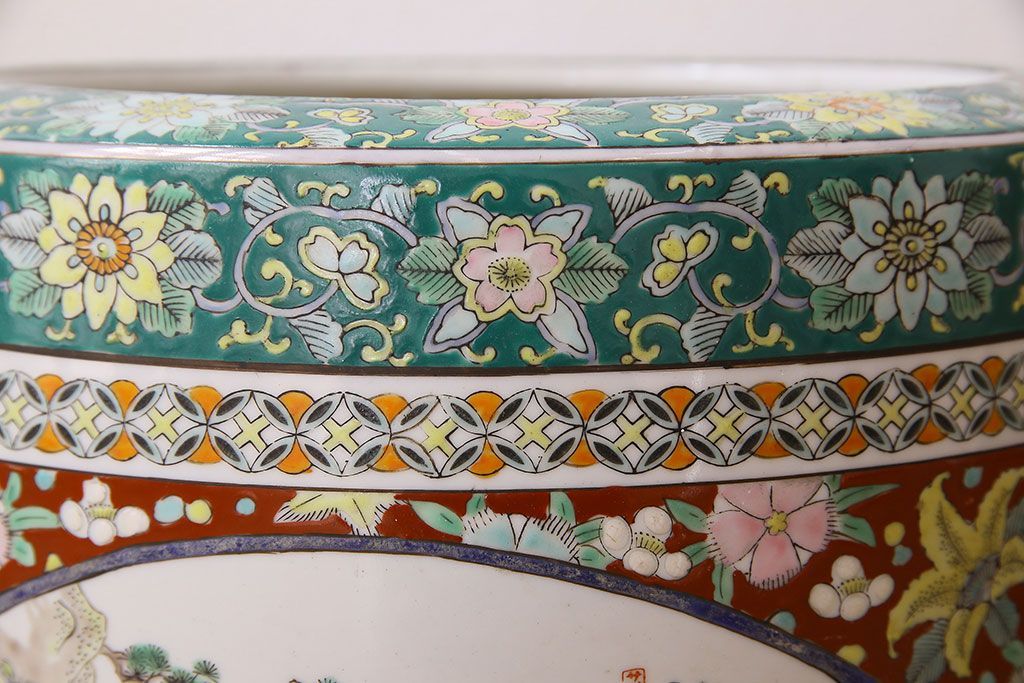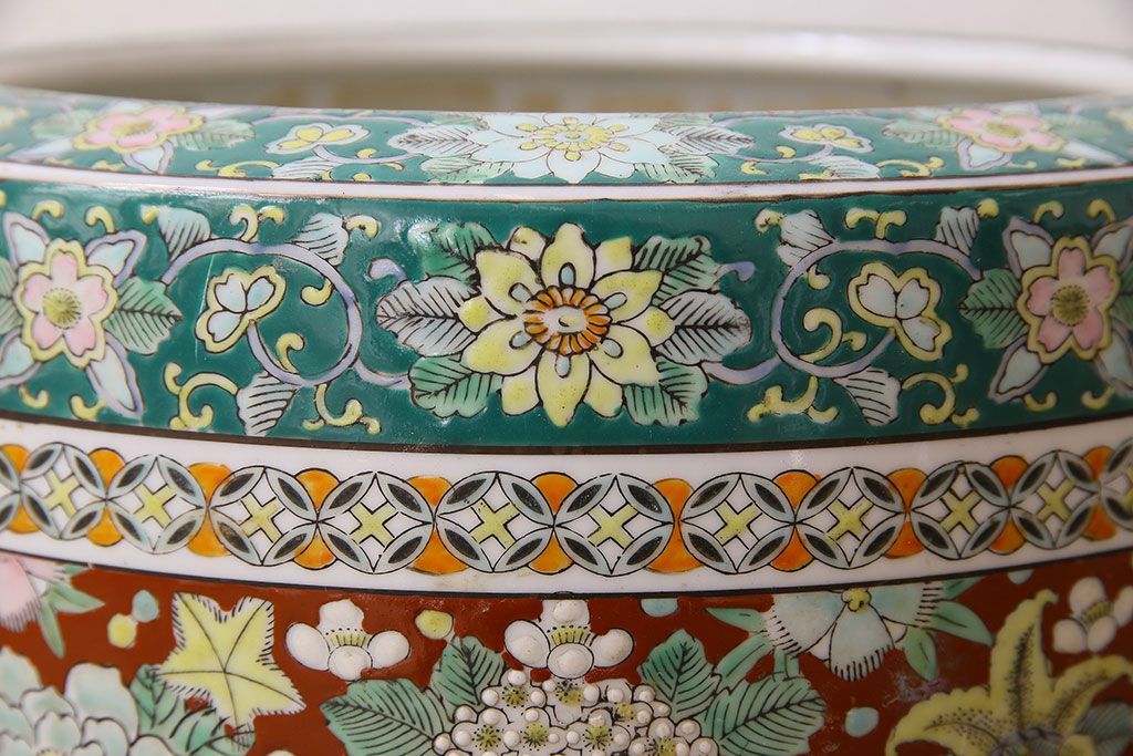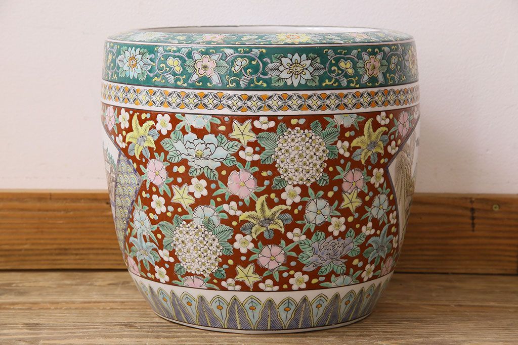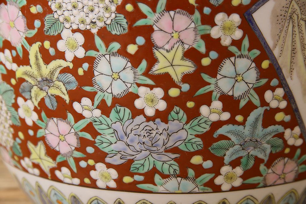 アンティーク雑貨 古民具・骨董 十錦手草花紋と窓絵が華やかな瀬戸火鉢
