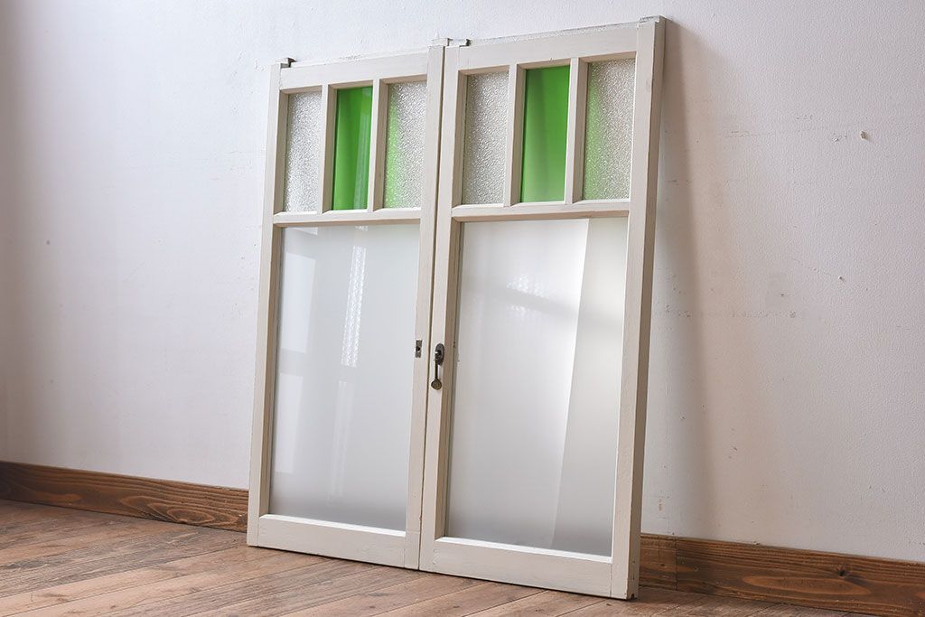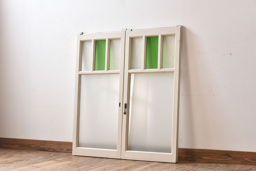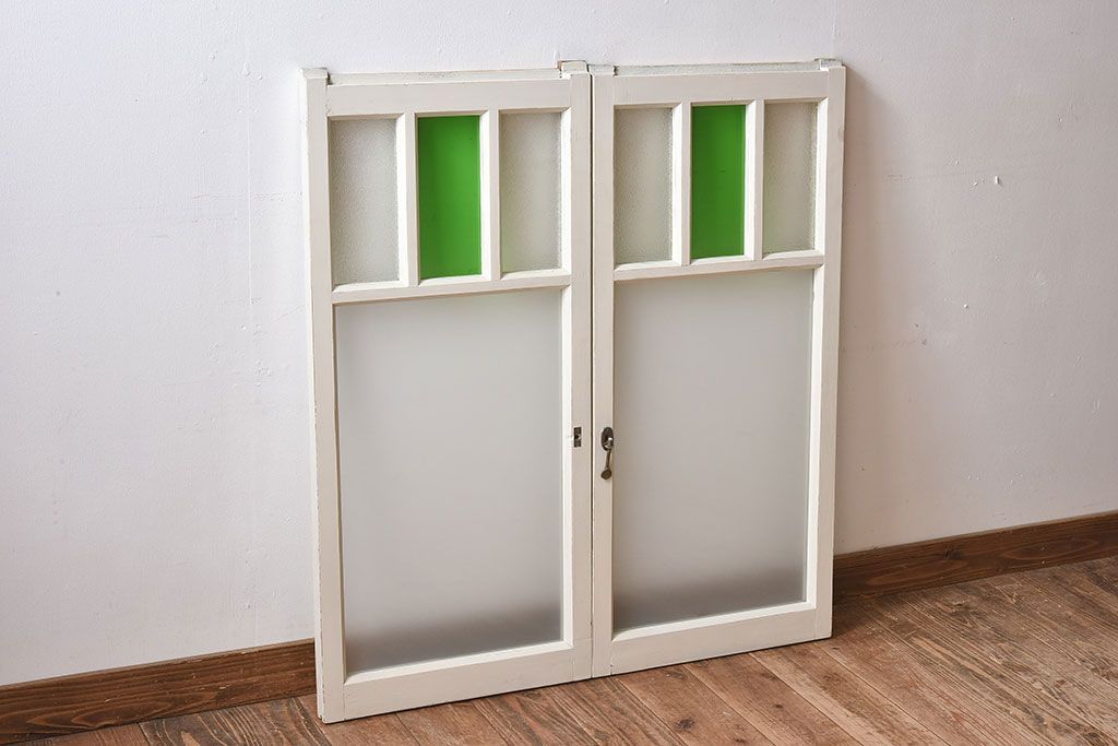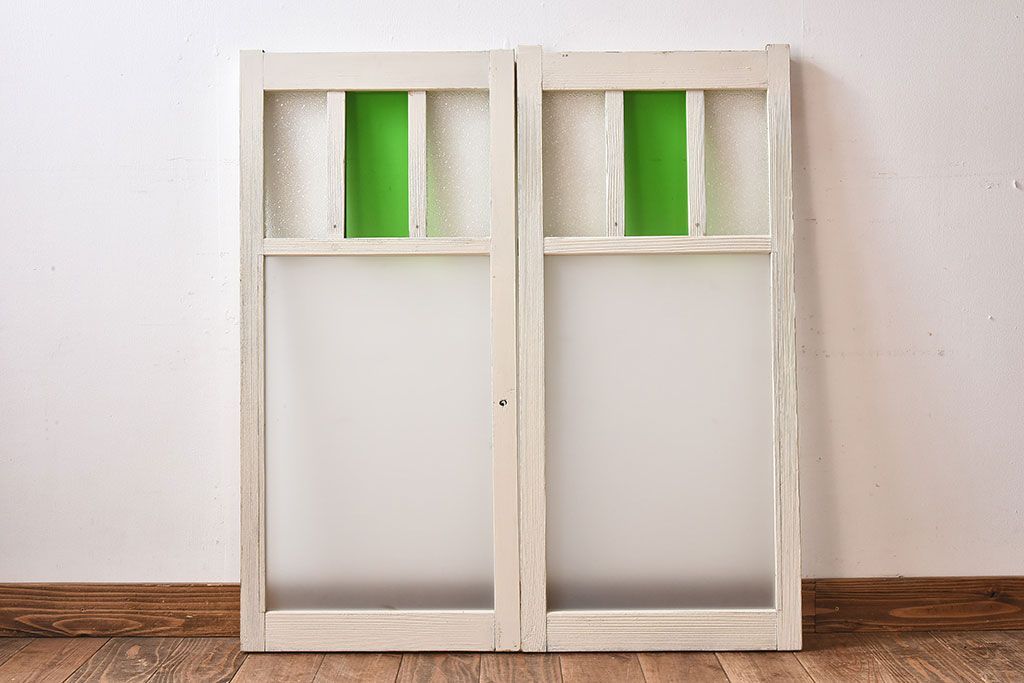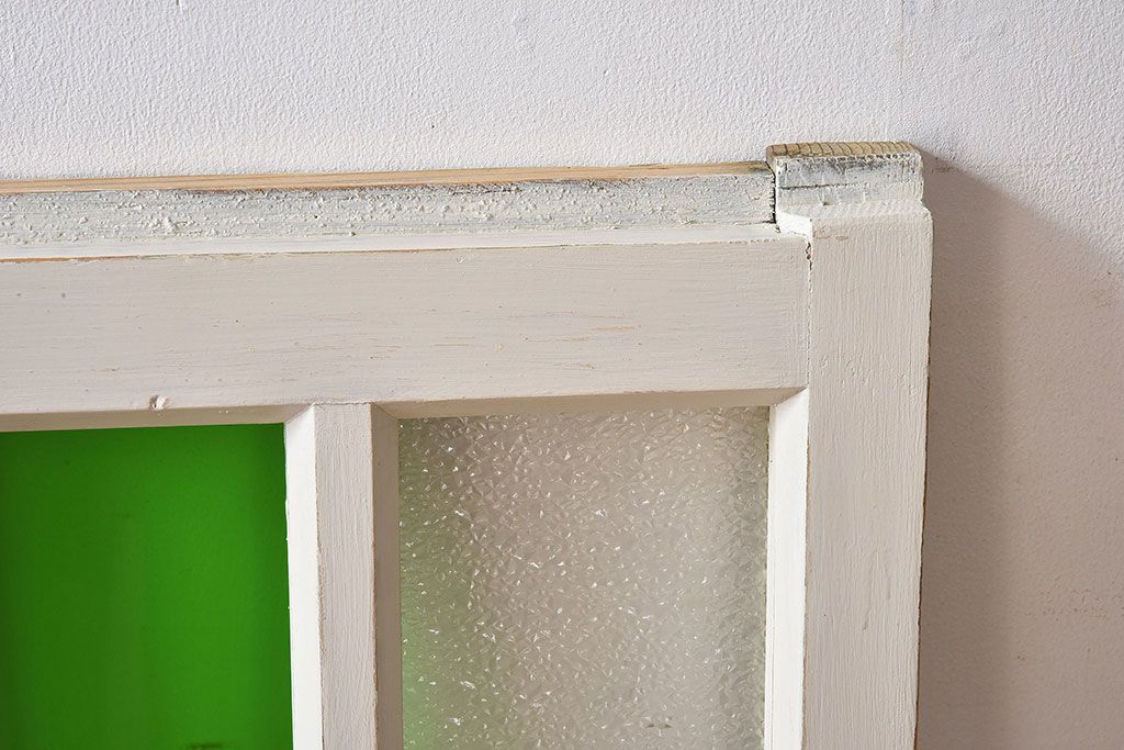 ラフジュ工房> ドア・建具> 窓 > 昭和レトロ ダイヤガラス入り!色ガラスがお洒落なペイントガラス戸2枚セット(窓)