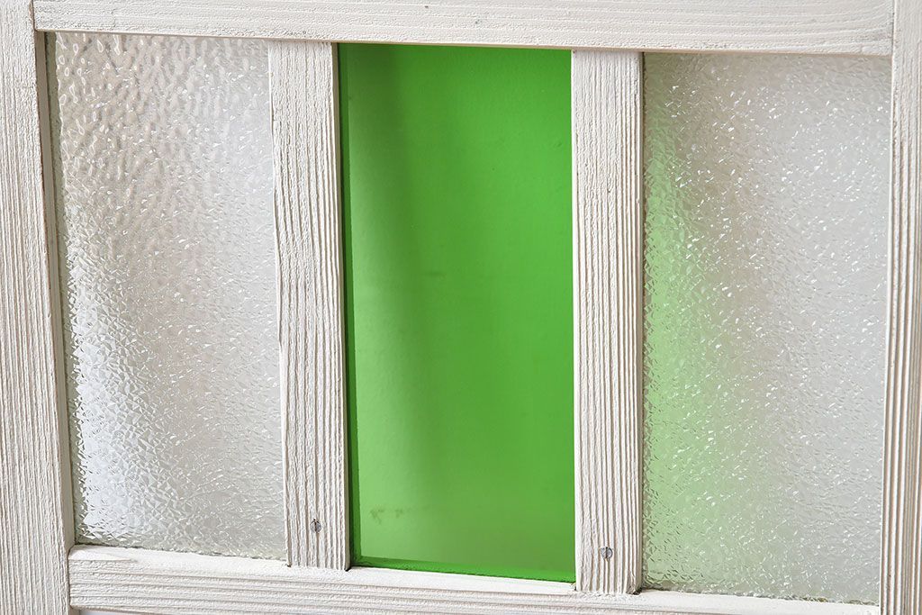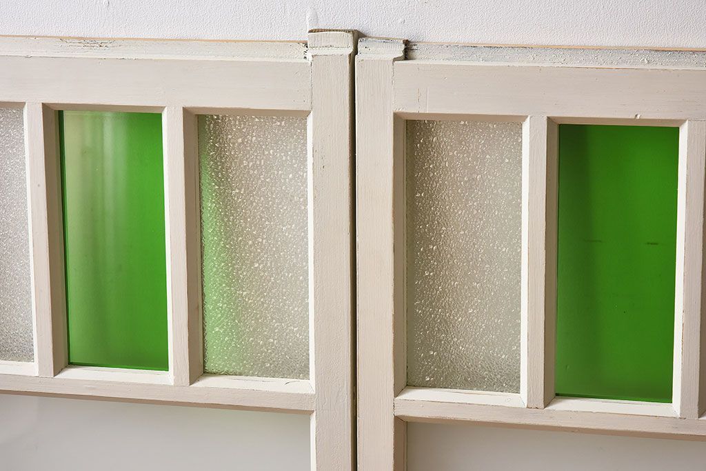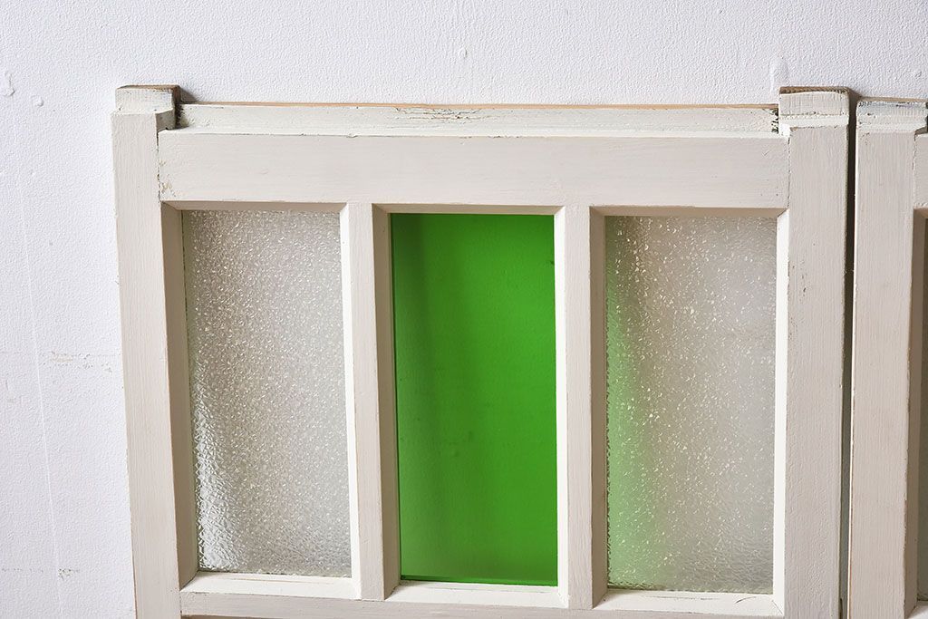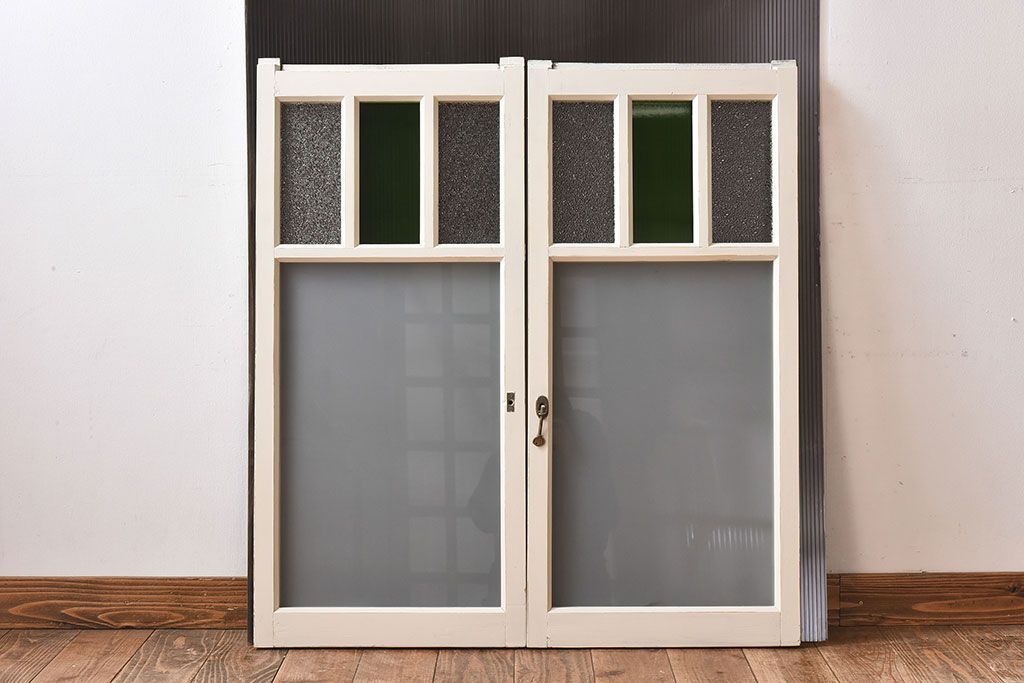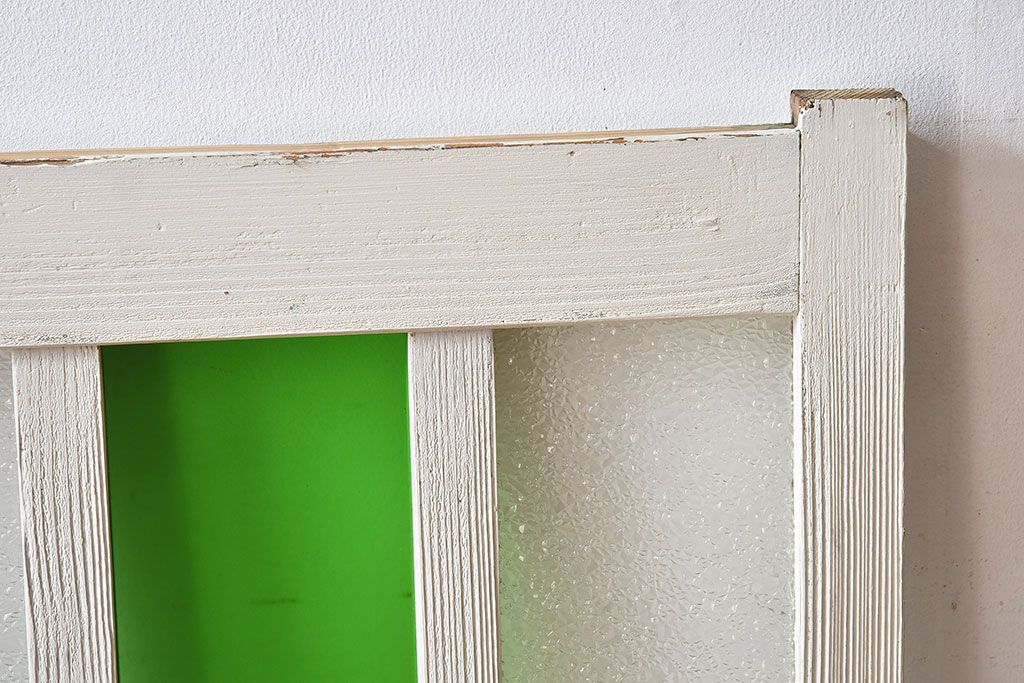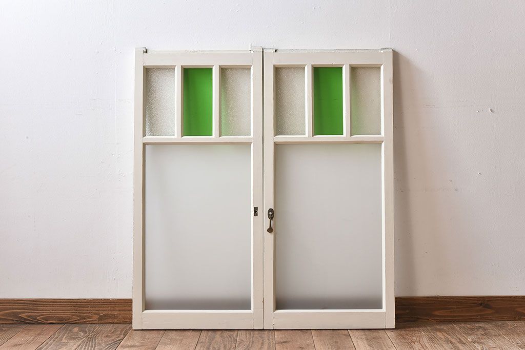 ラフジュ工房> ドア・建具> 窓 > 昭和レトロ ダイヤガラス入り!色ガラスがお洒落なペイントガラス戸2枚セット(窓)
