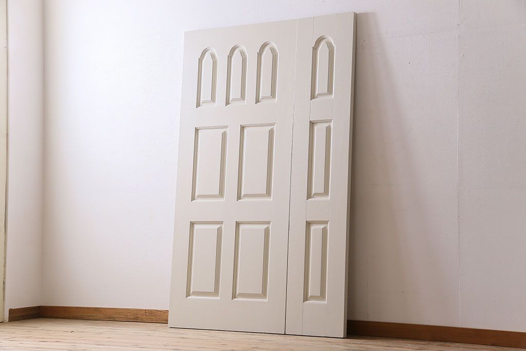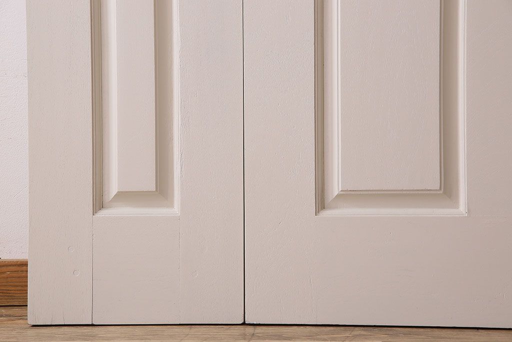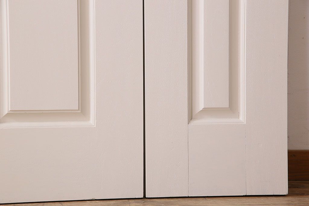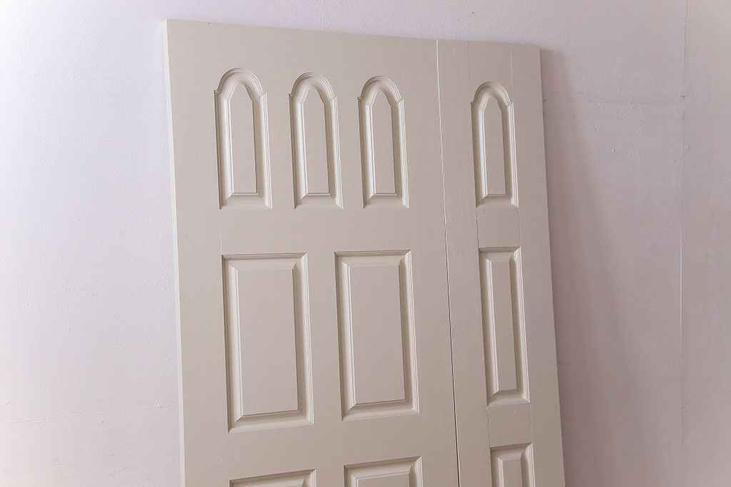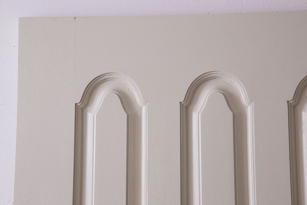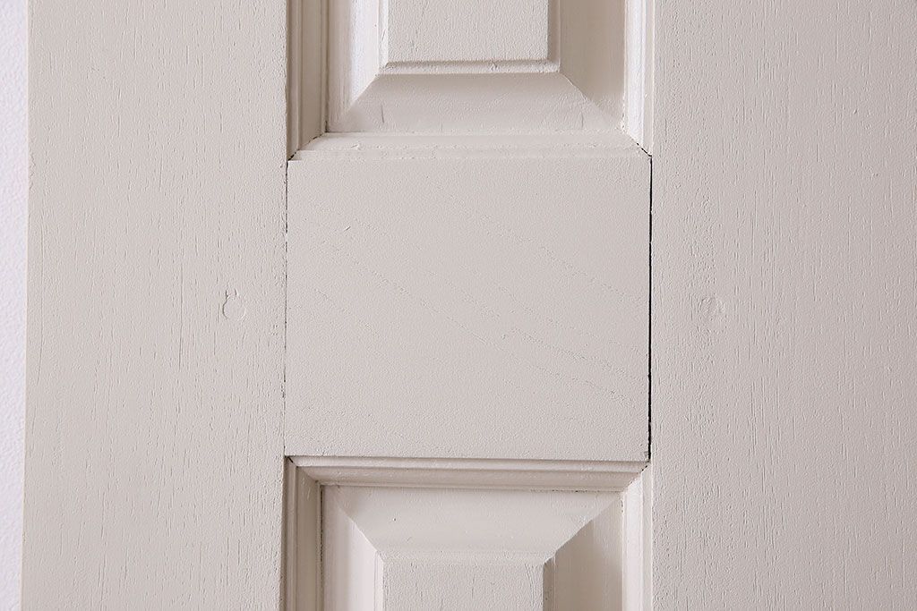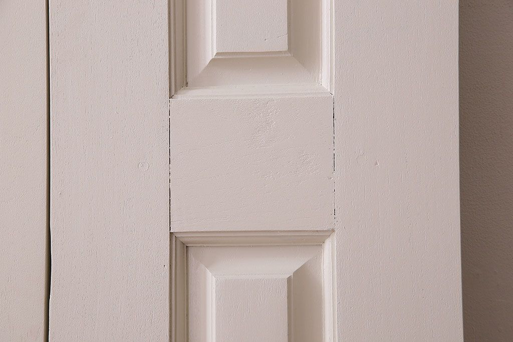 ビンテージ 花梨無垢材 珍しいデザインがお洒落なアンティークホワイトのペイント親子ドア(扉、カリン)