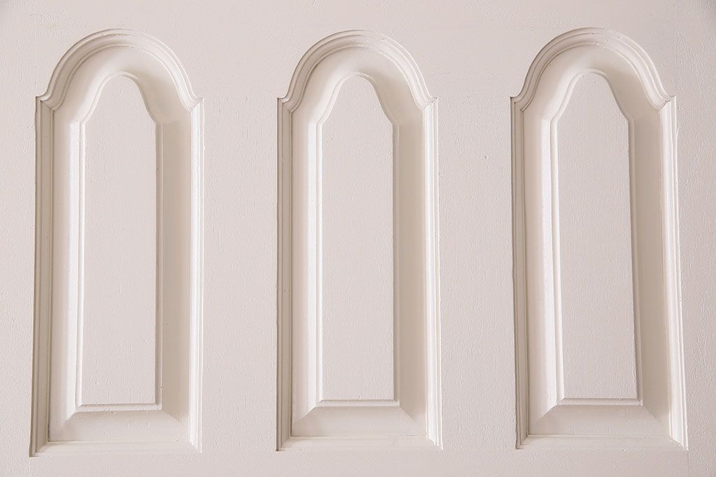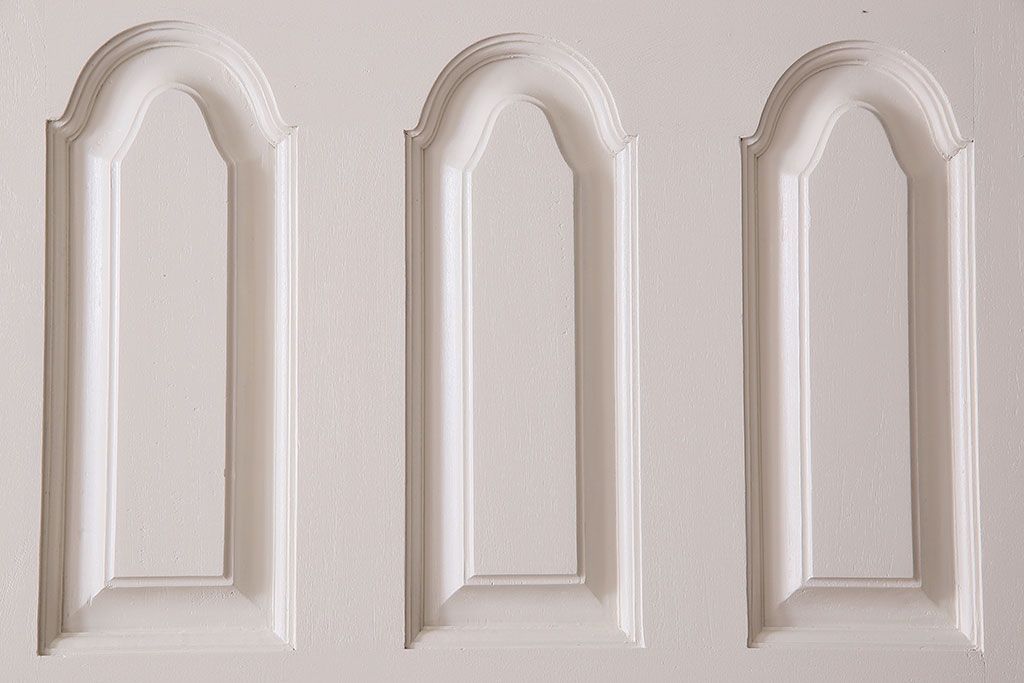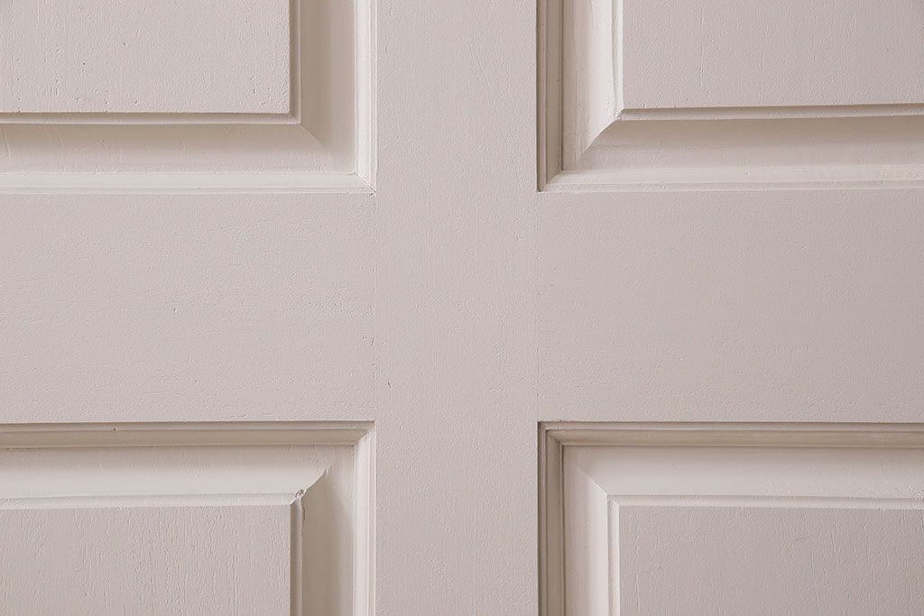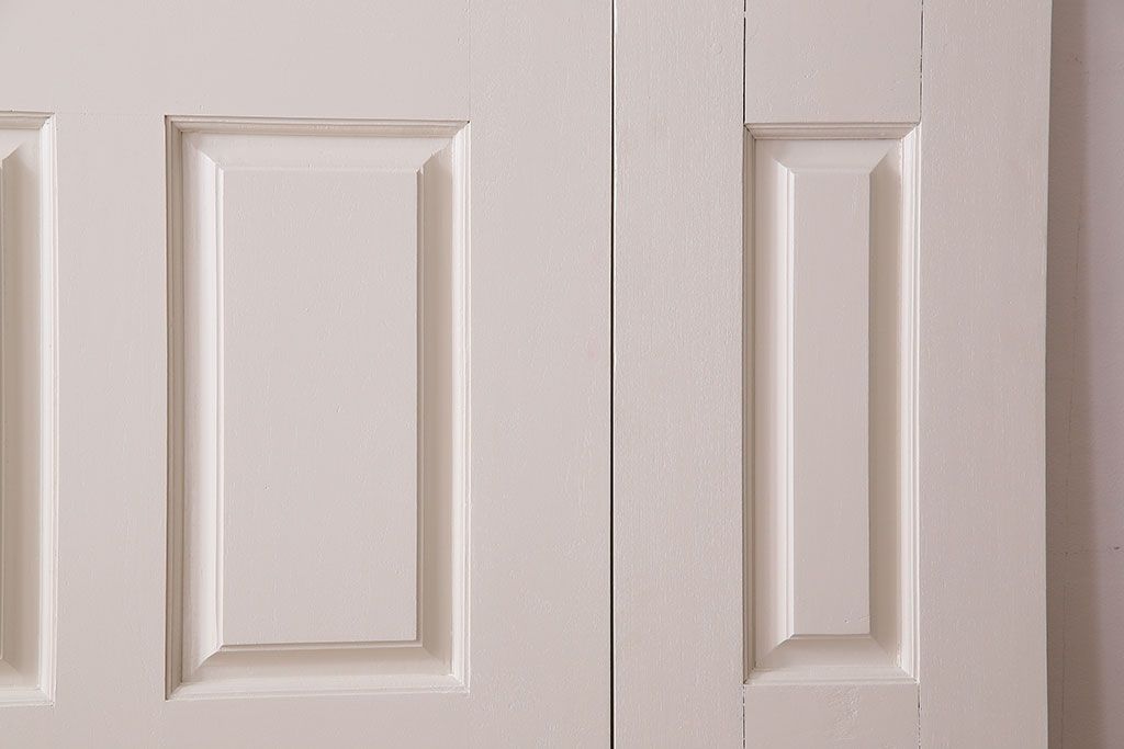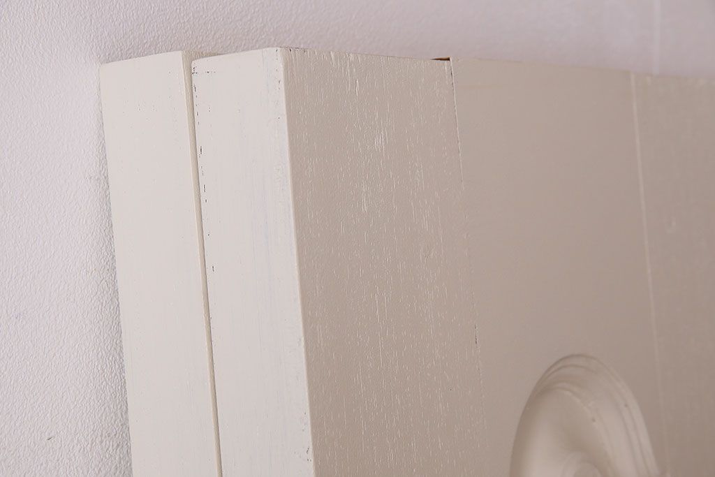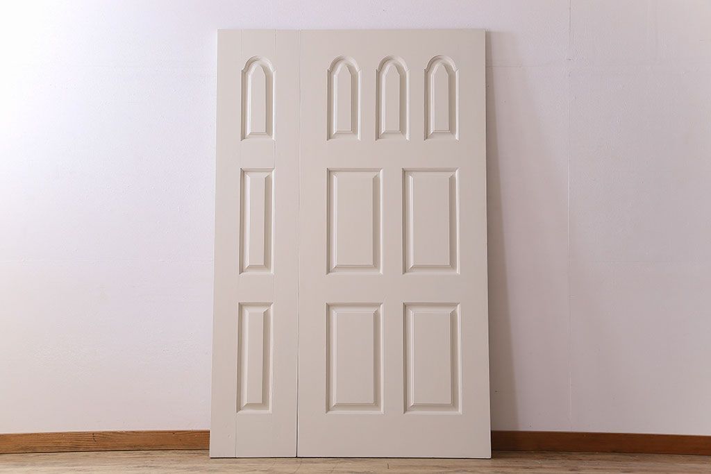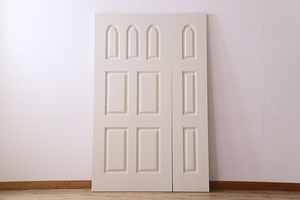 ビンテージ 花梨無垢材 珍しいデザインがお洒落なアンティークホワイトのペイント親子ドア(扉、カリン)
