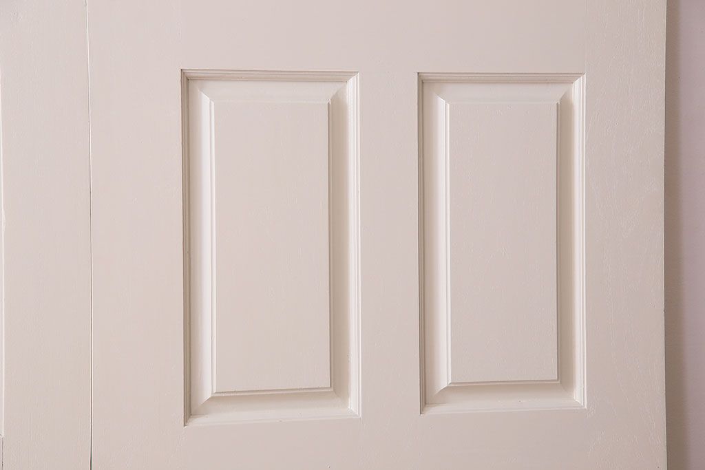 ラフジュ工房> ドア・建具> 引き戸 > ビンテージ 花梨無垢材 珍しいデザインがお洒落なアンティークホワイトのペイント親子ドア(扉、カリン)