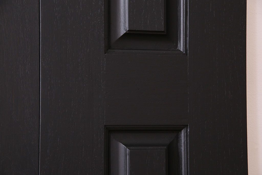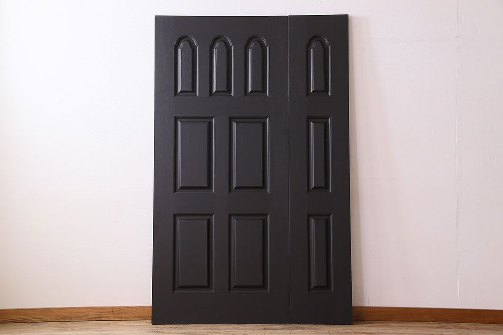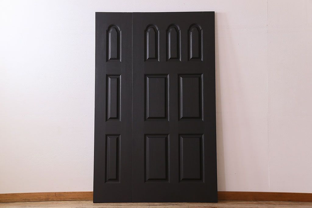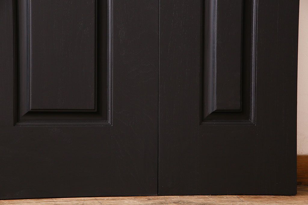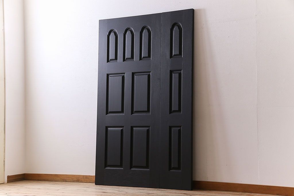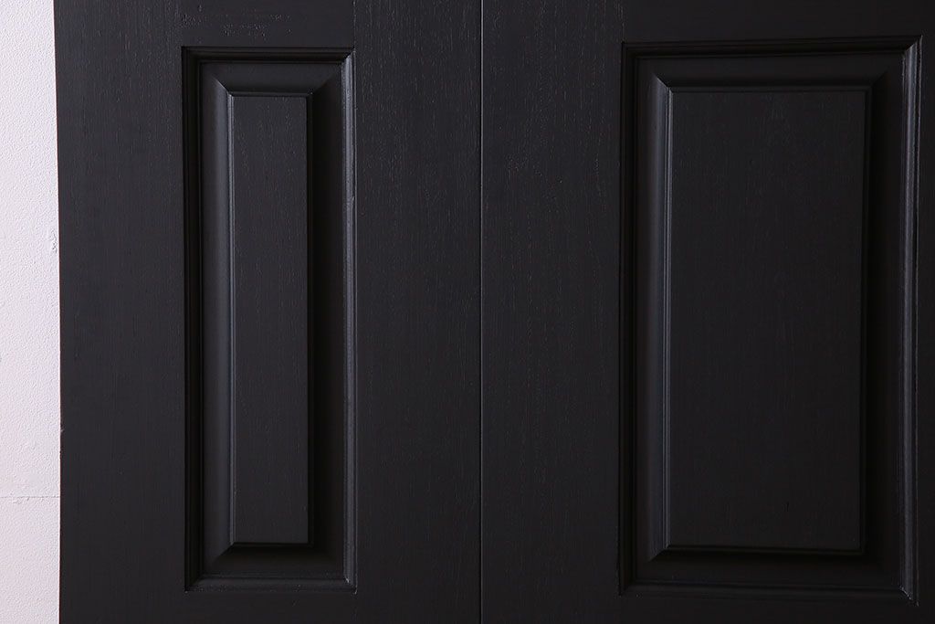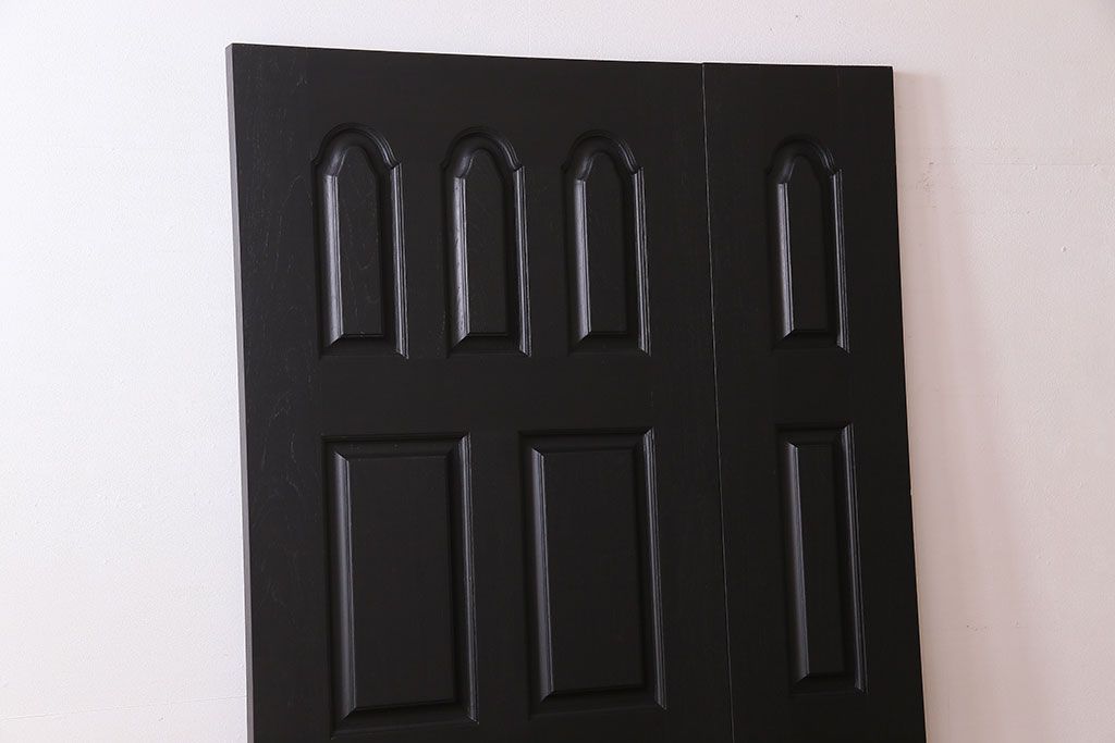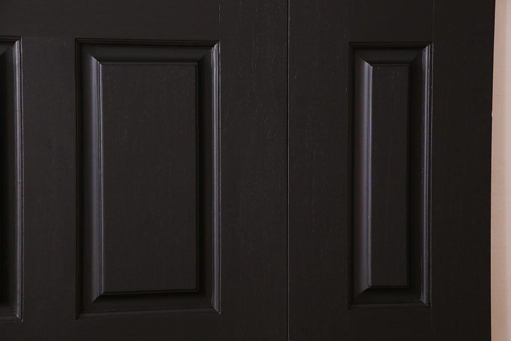ビンテージ 花梨無垢材 珍しいデザインでシックなブラックペイントの親子ドア(扉)(1)です。
