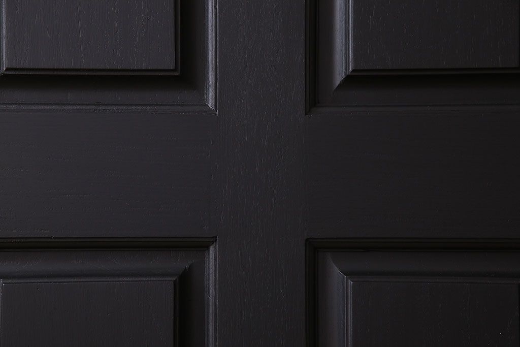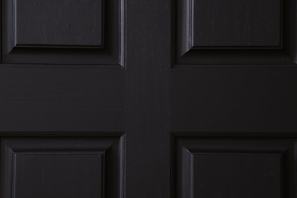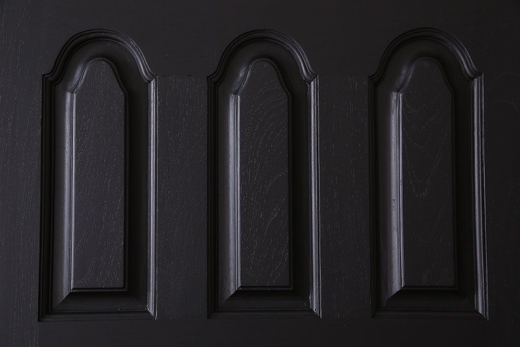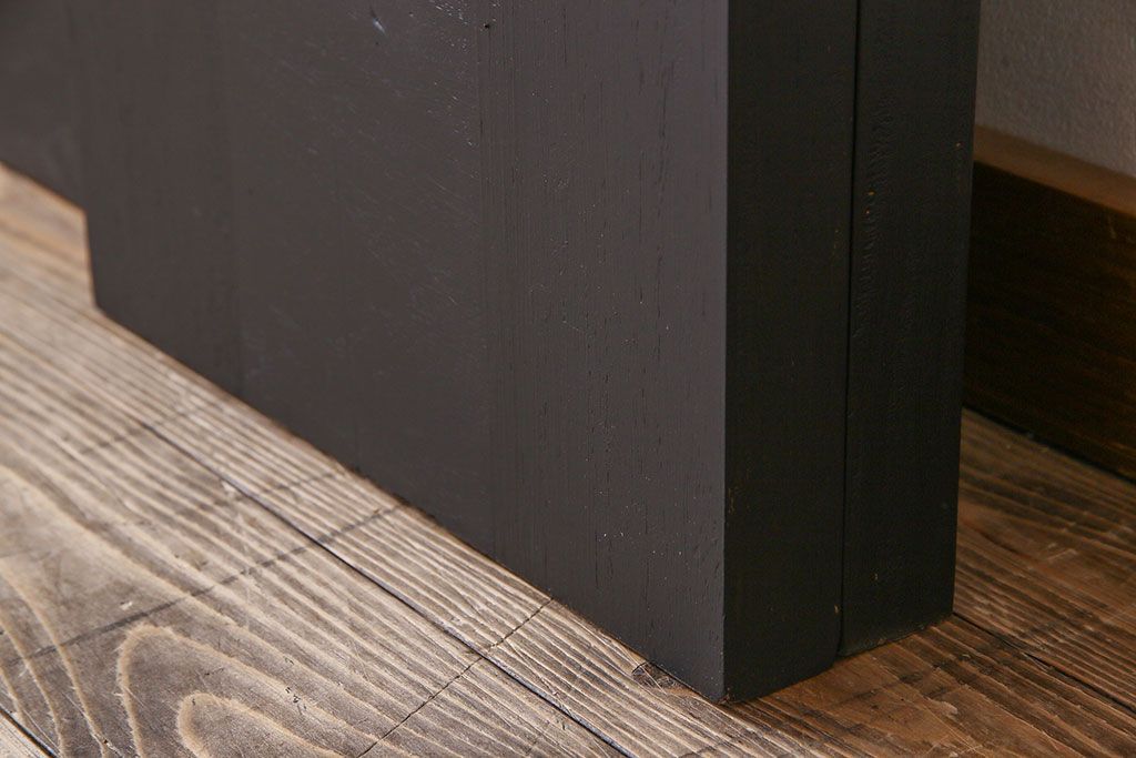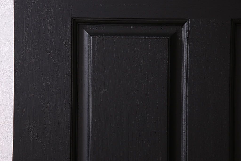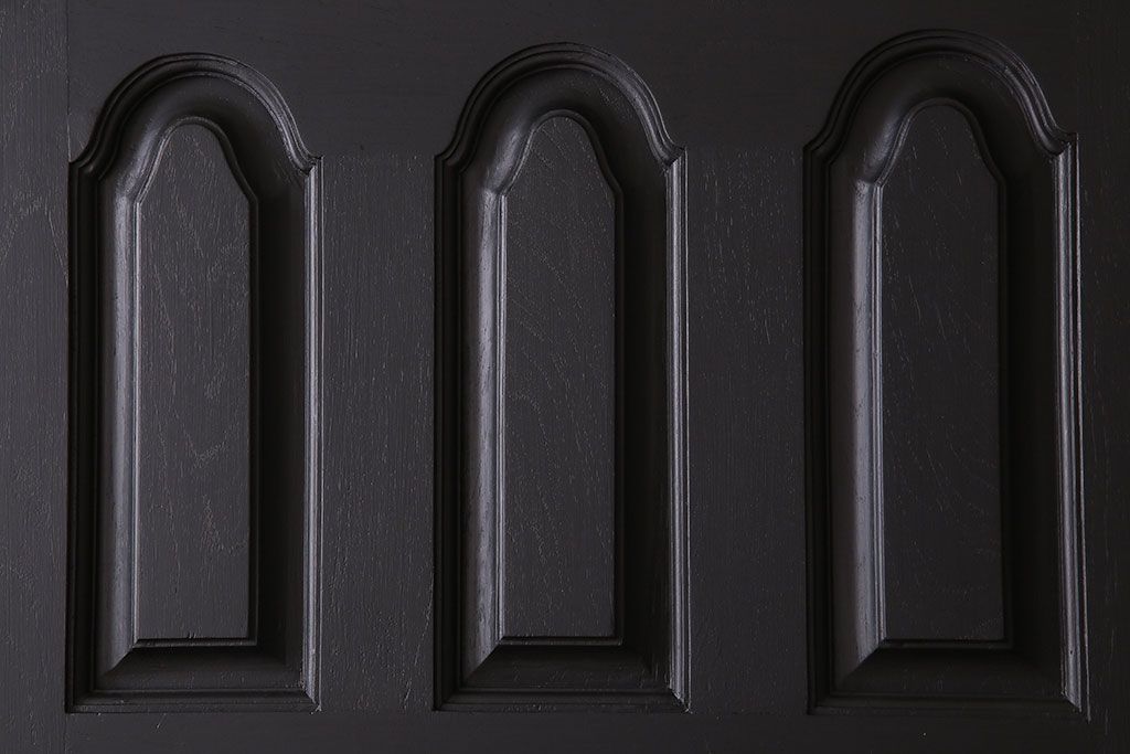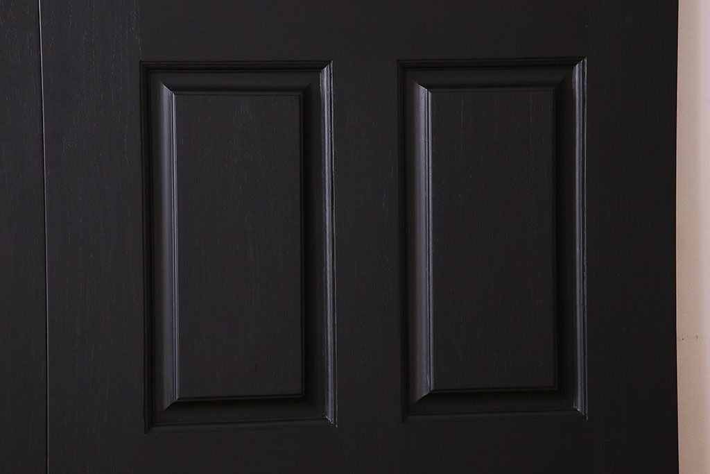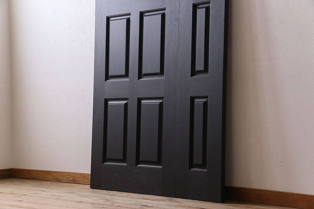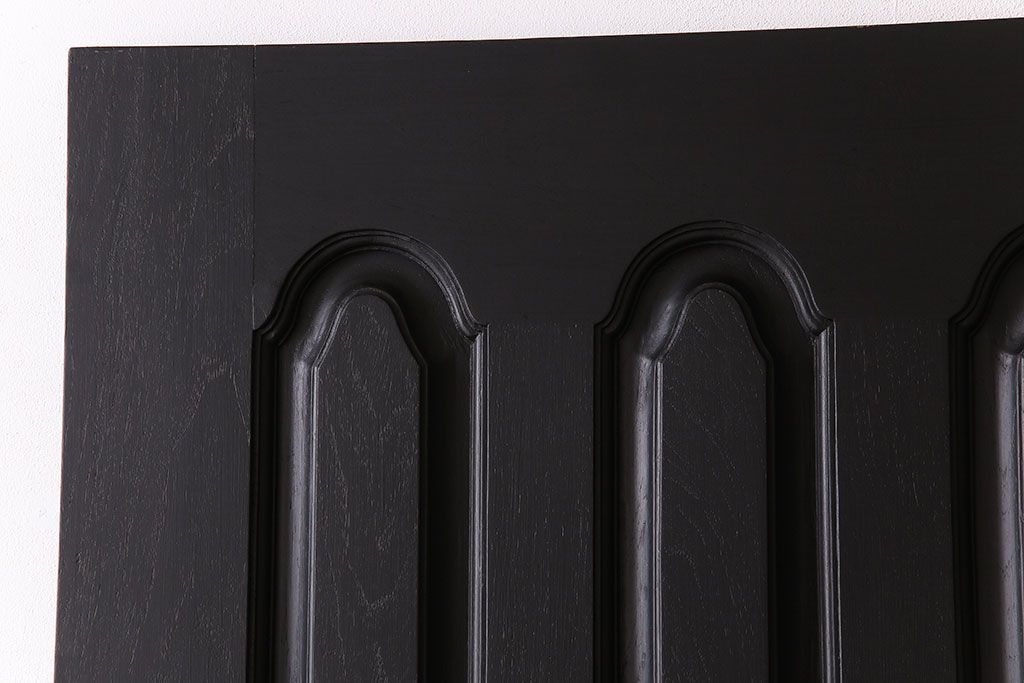 ビンテージ 花梨無垢材 珍しいデザインでシックなブラックペイントの親子ドア(扉)(1)です。