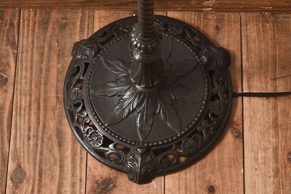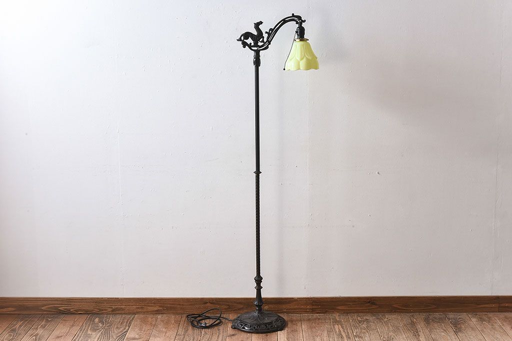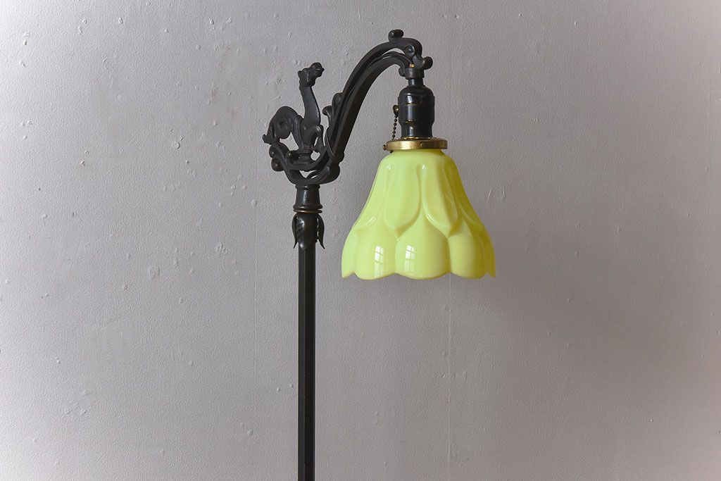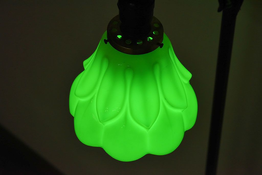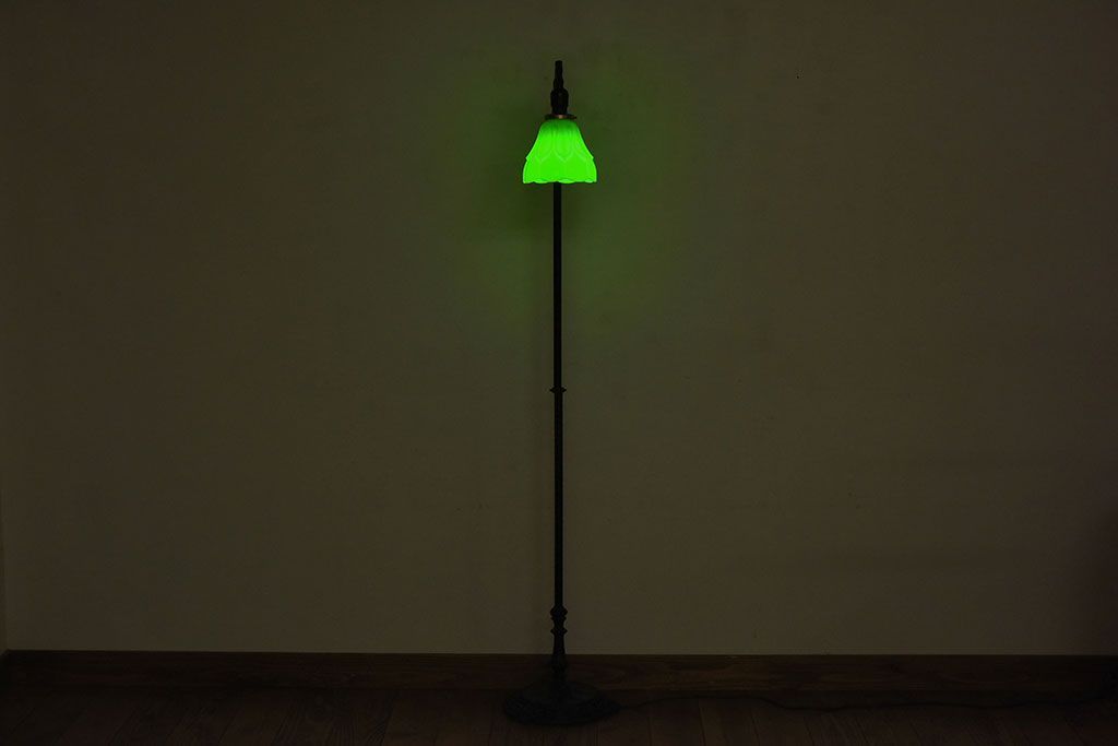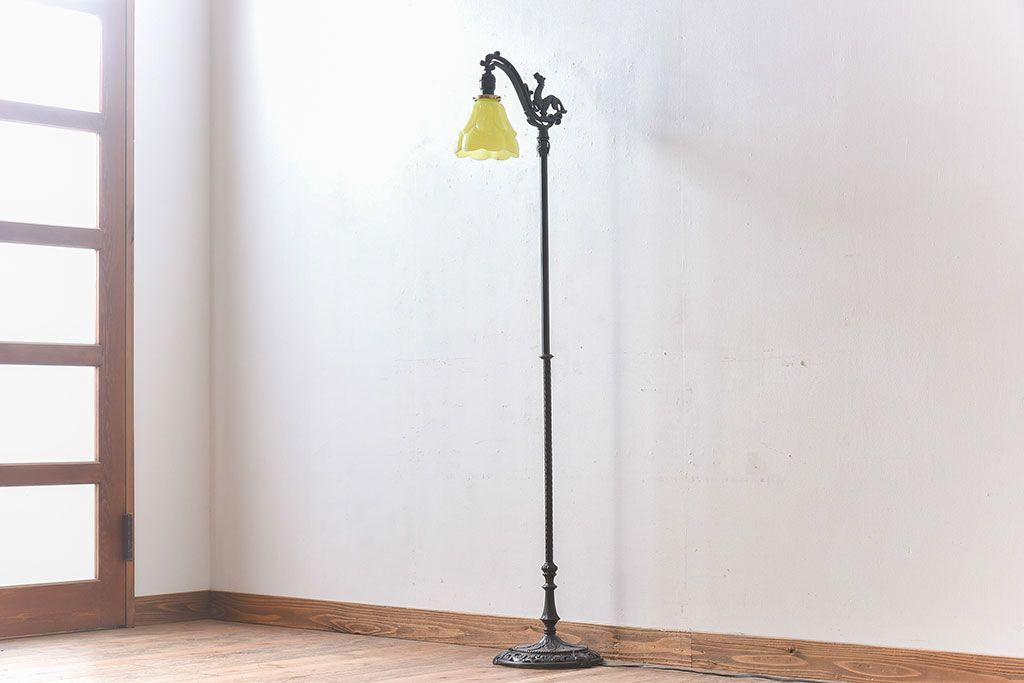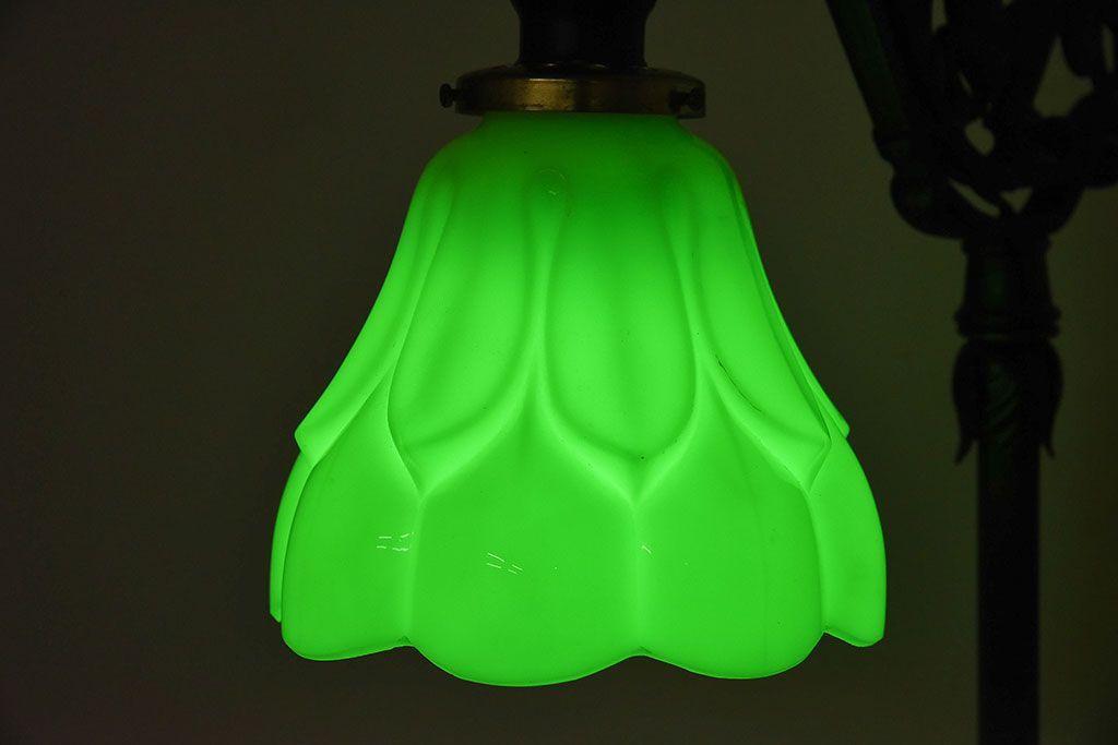 アンティーク アイアン製!お洒落なデザインのウランガラスシェードフロアスタンド