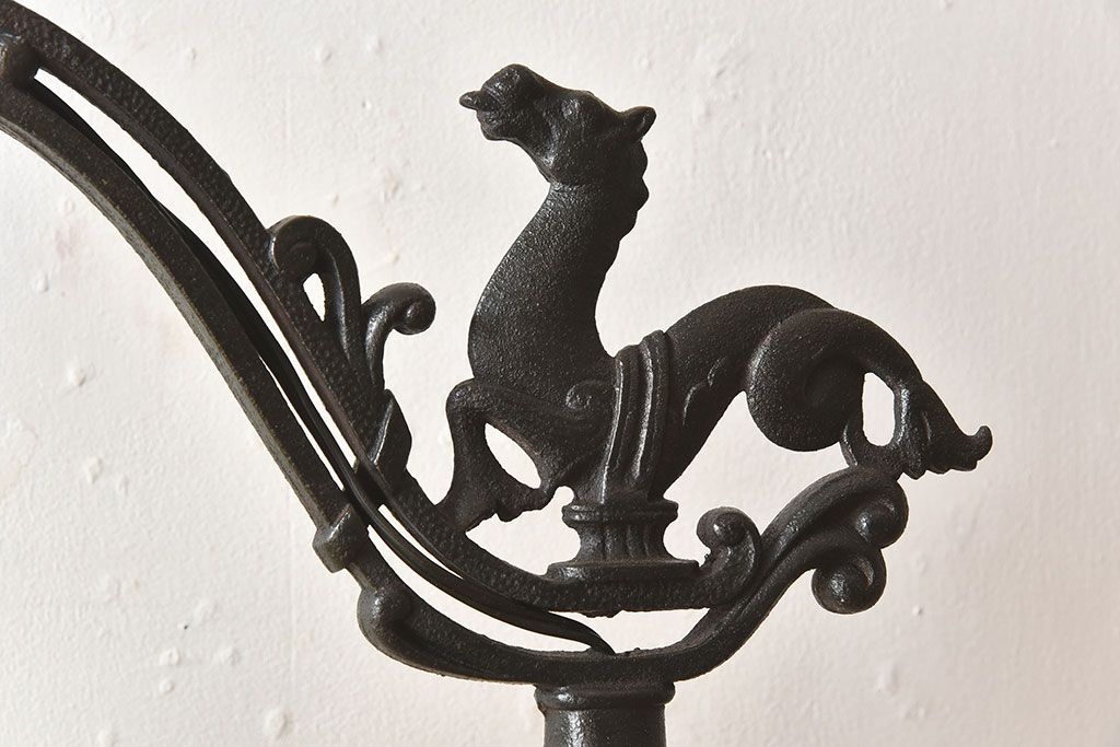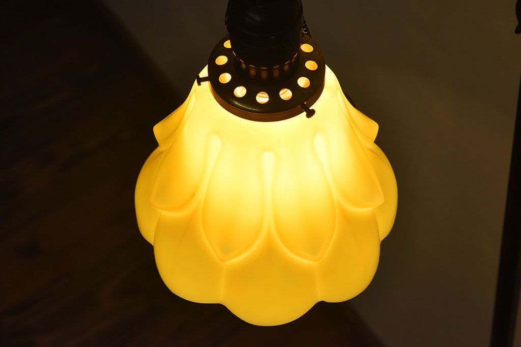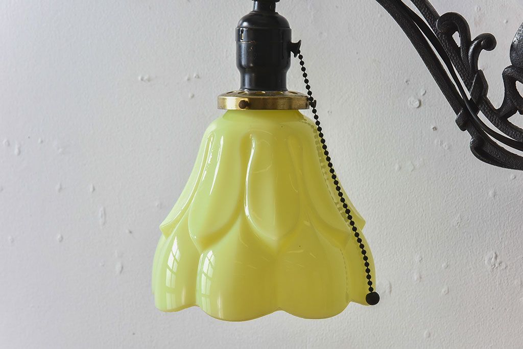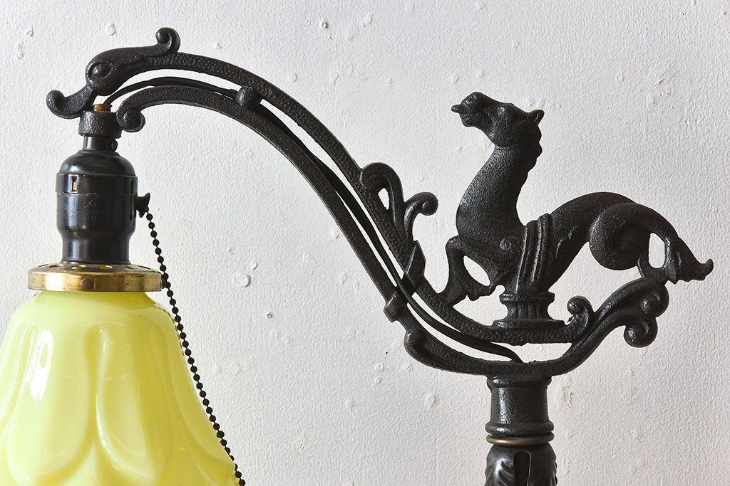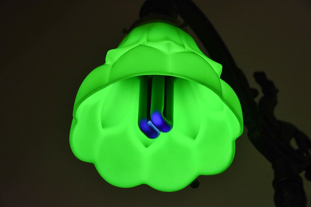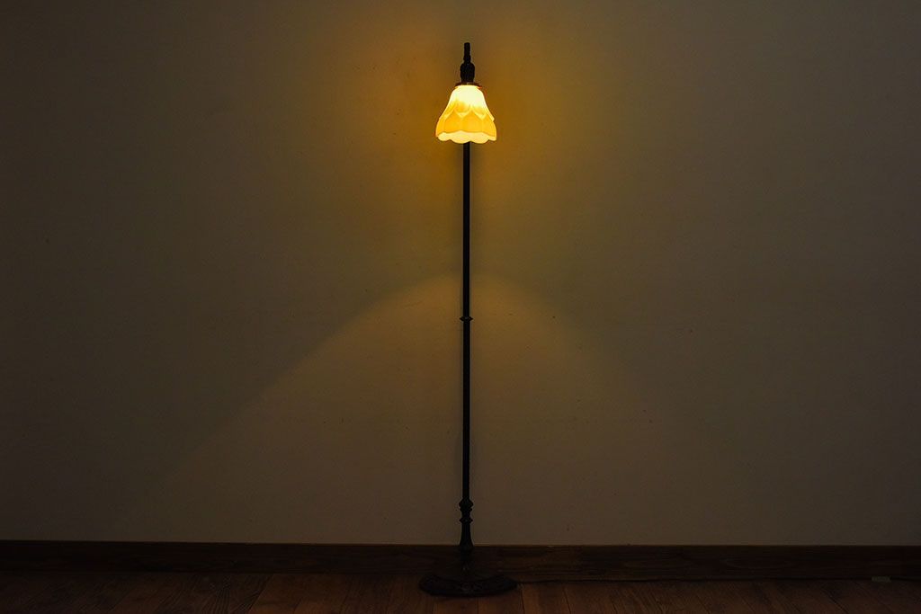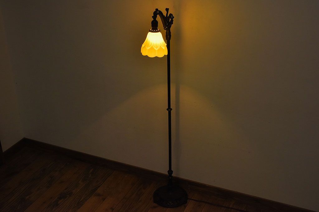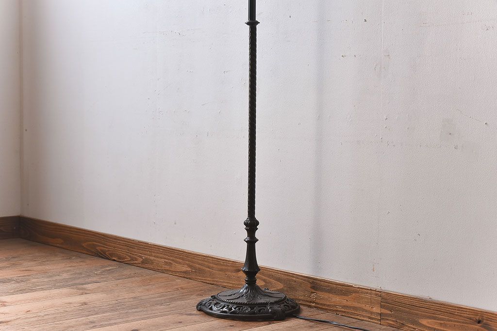 アンティーク アイアン製!お洒落なデザインのウランガラスシェードフロアスタンド