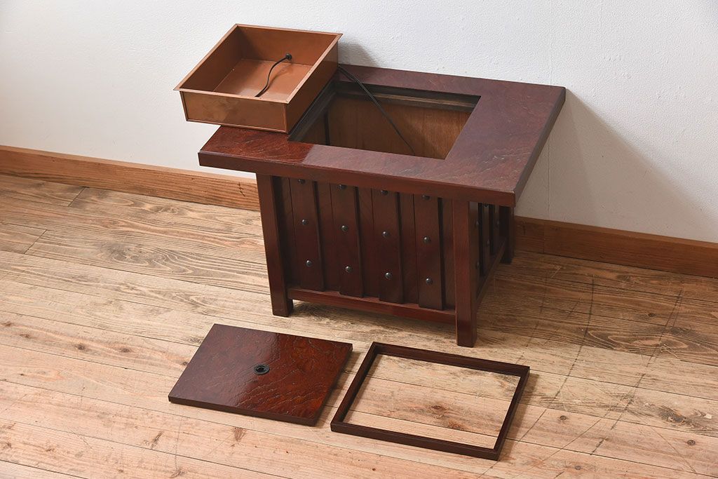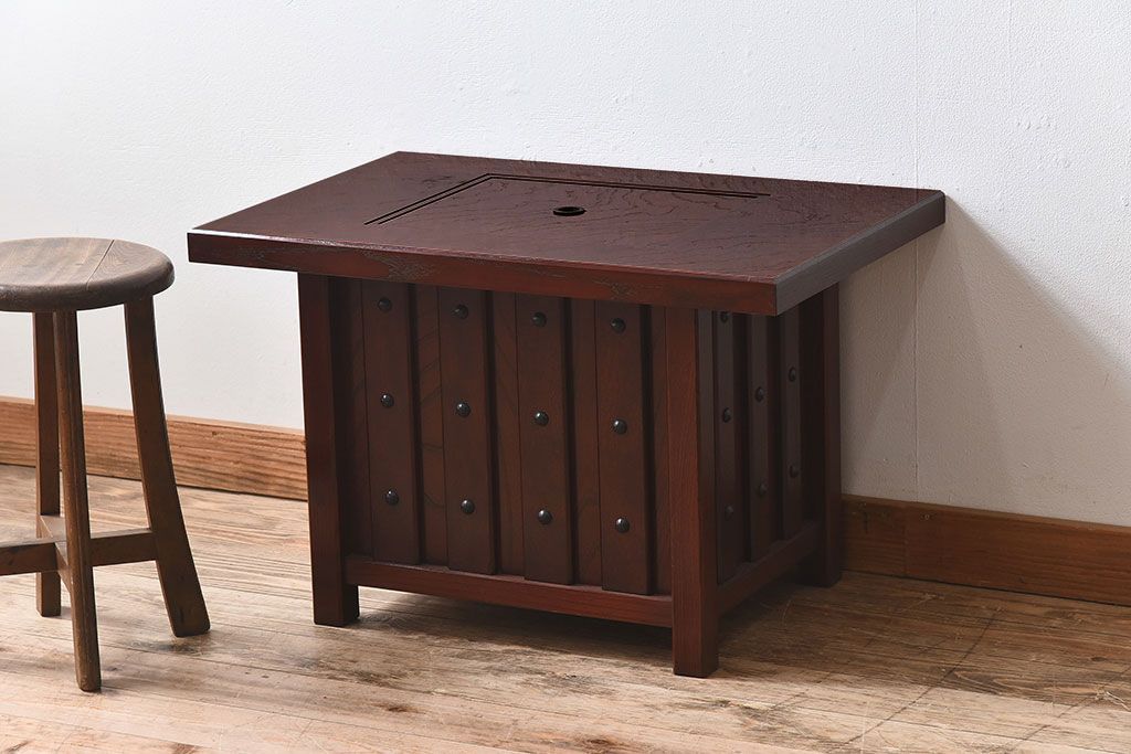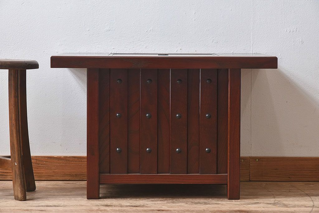 アンティーク雑貨 民芸家具 コンセント付き!欅材製の上質な長火鉢