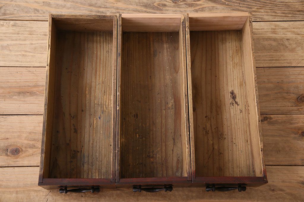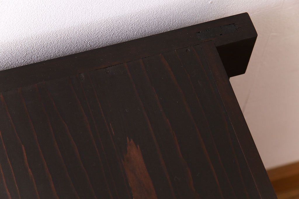 古い木の質感と杢目が味わい深く、
