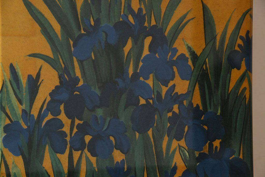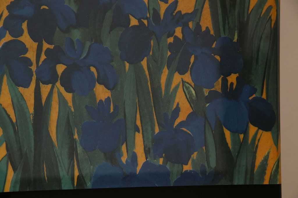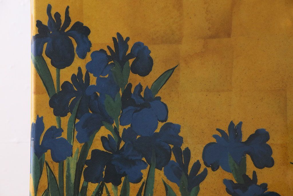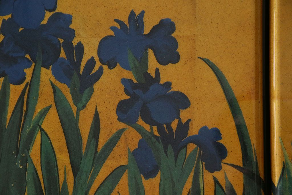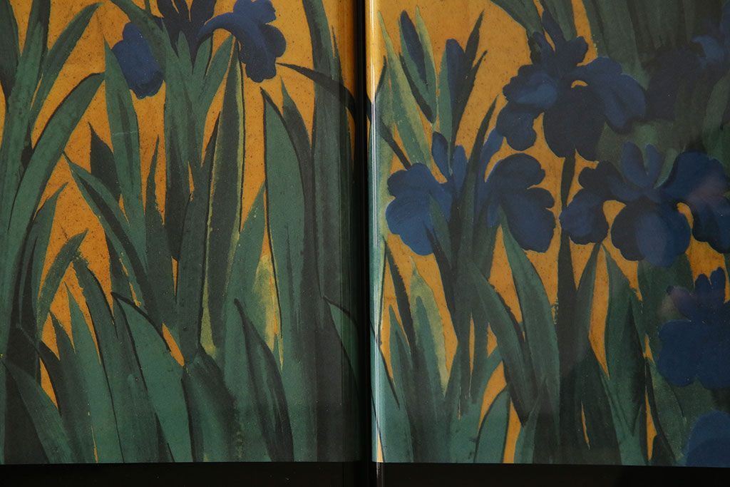 装飾的大画面を得意とする画家、尾形光琳の燕子花図(左隻)を再現しています。