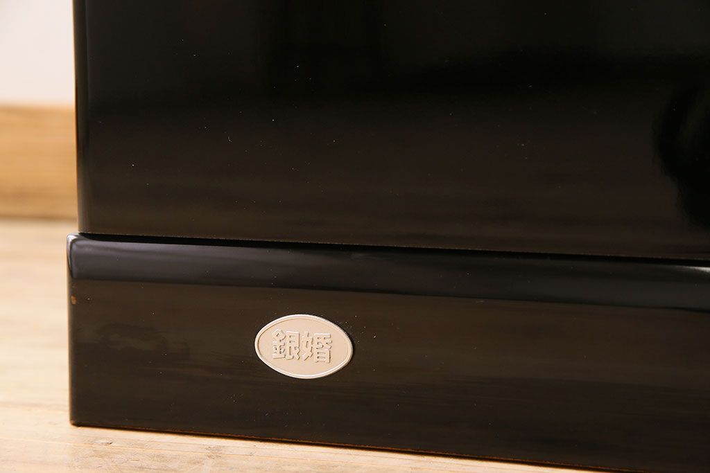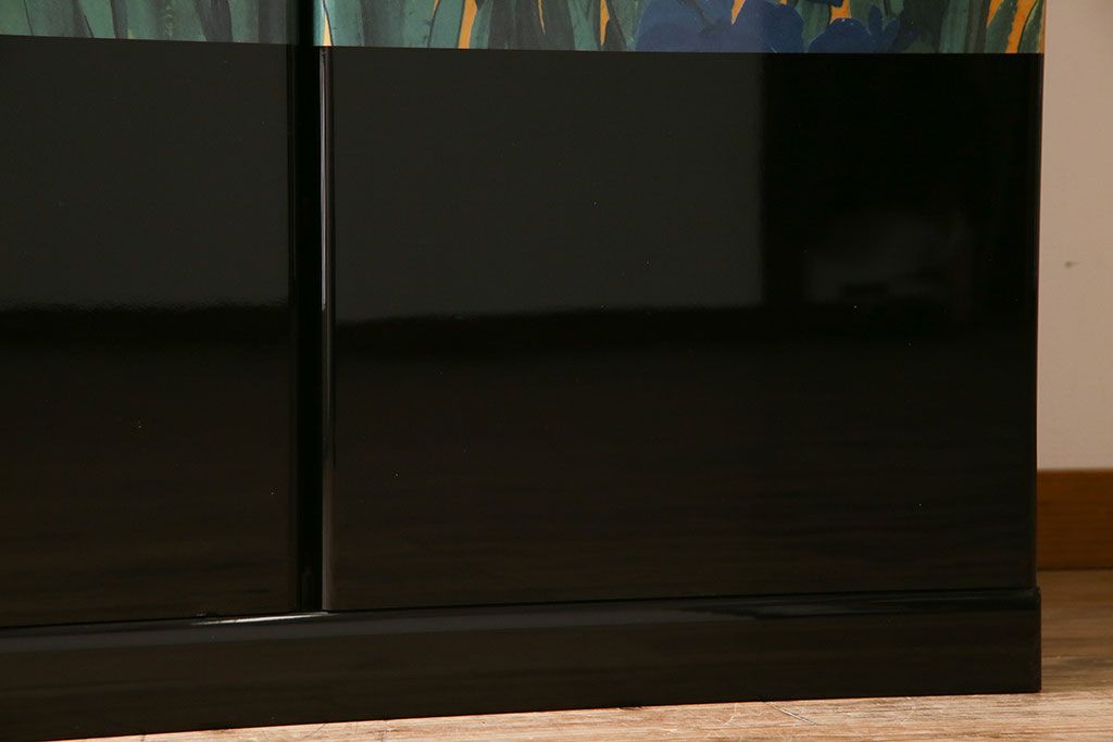 艶やかな黒の下地に鮮やかな花の絵が目を引く衣装箪笥です。